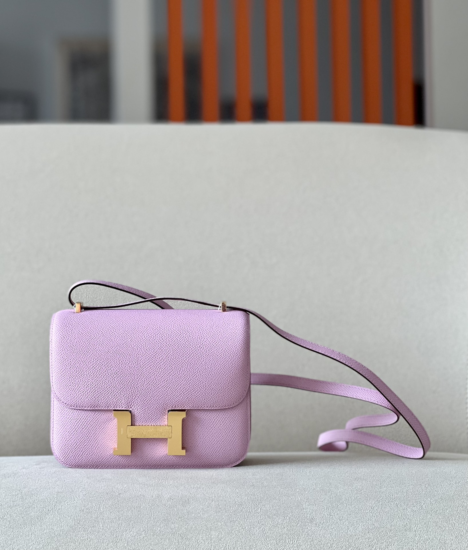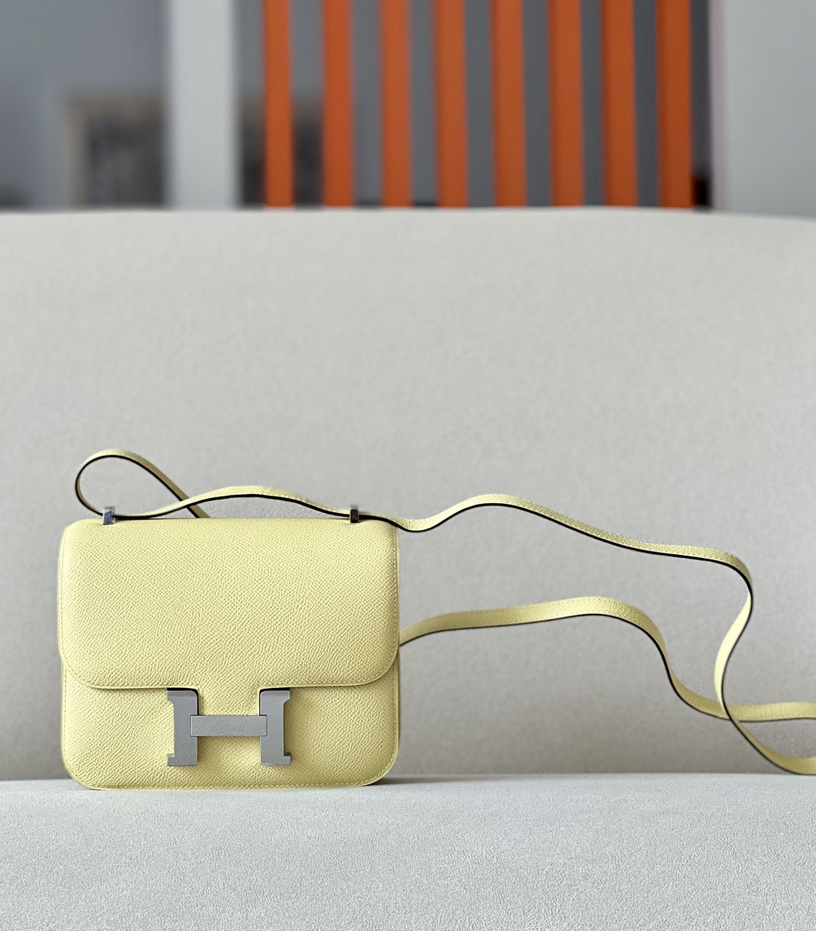 Hermès Lindy in Pewter Grey, crafted with Hermès' exclusive Clemence leather, purely handcrafted, high-end customization edition. Gold/26 cm x 18 cm x 13 cm$ 540.00