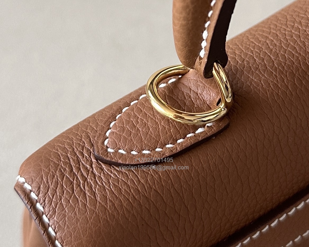 Hermès Lindy Mini 19cm in Gold Brown, crafted with Hermès' exclusive Clemence leather, purely handcrafted, high-end customization edition. Gold/19.5 x 12.5 x 9.5 cm$ 518.00