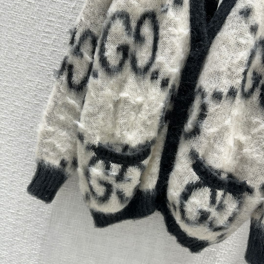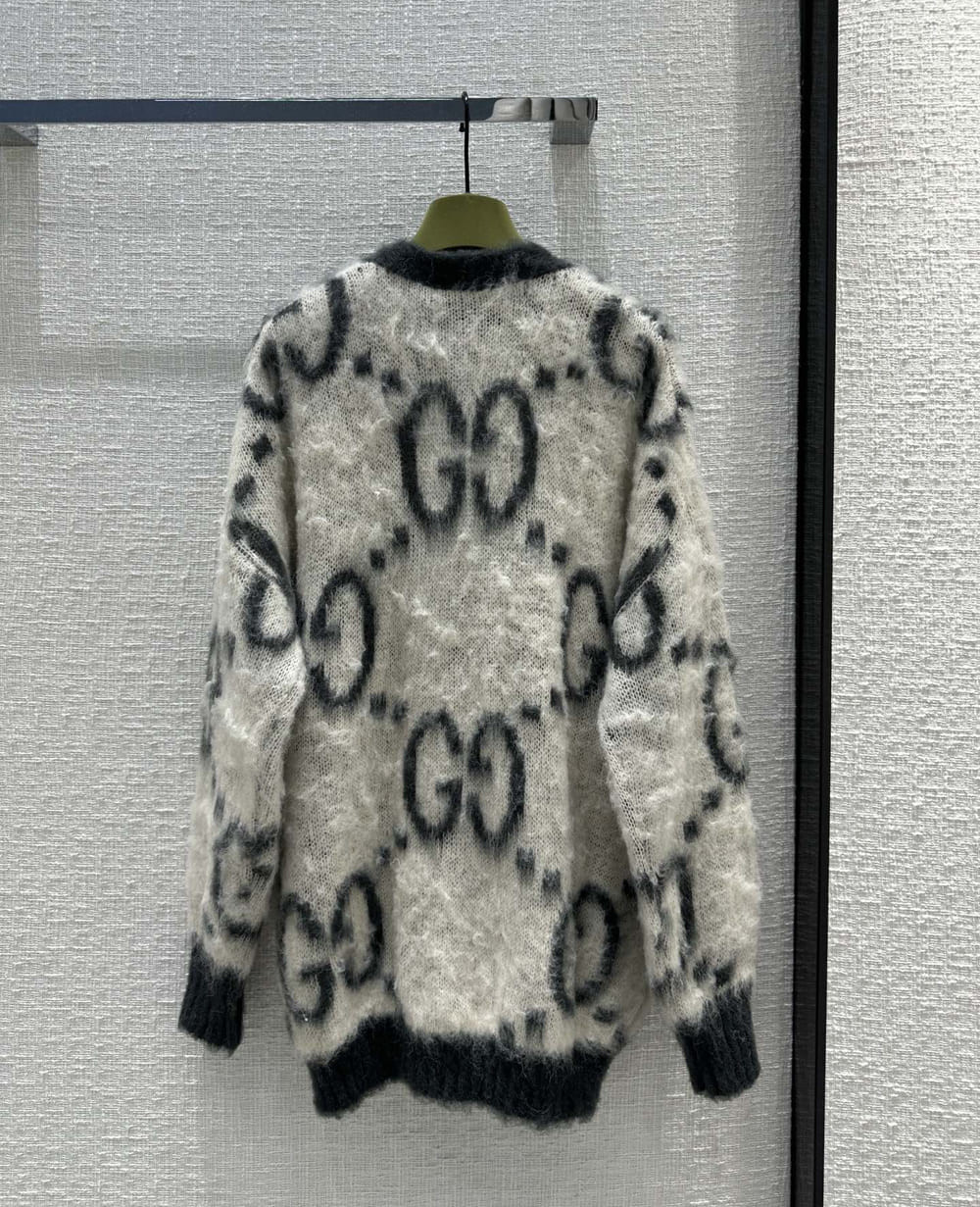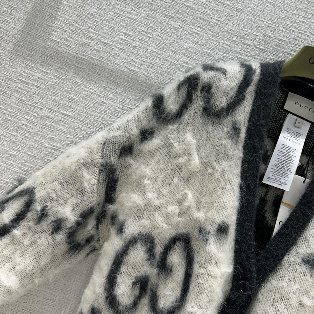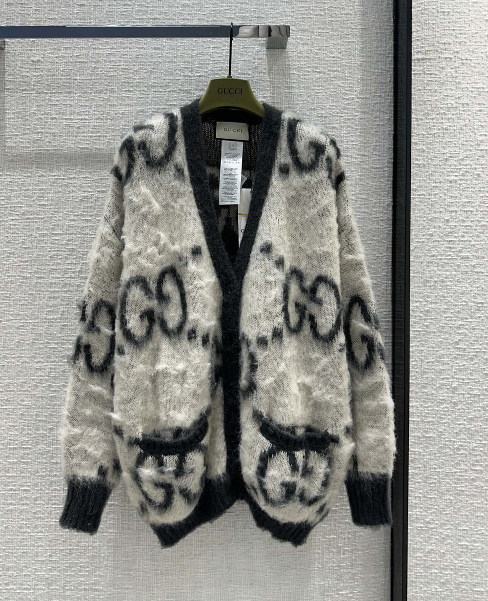 Gucci Reversible GG Mohair Wool Cardigan In Cream & Dark Grey 635160