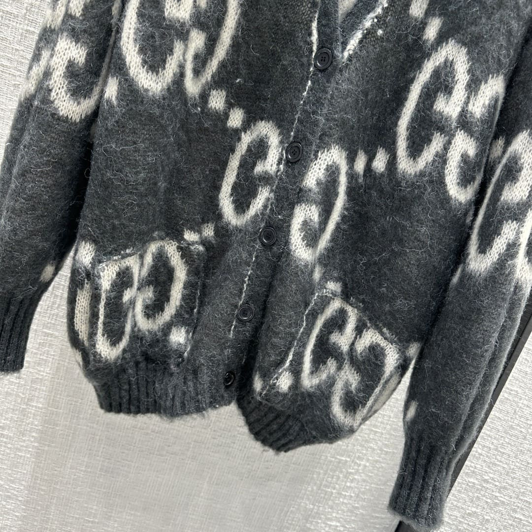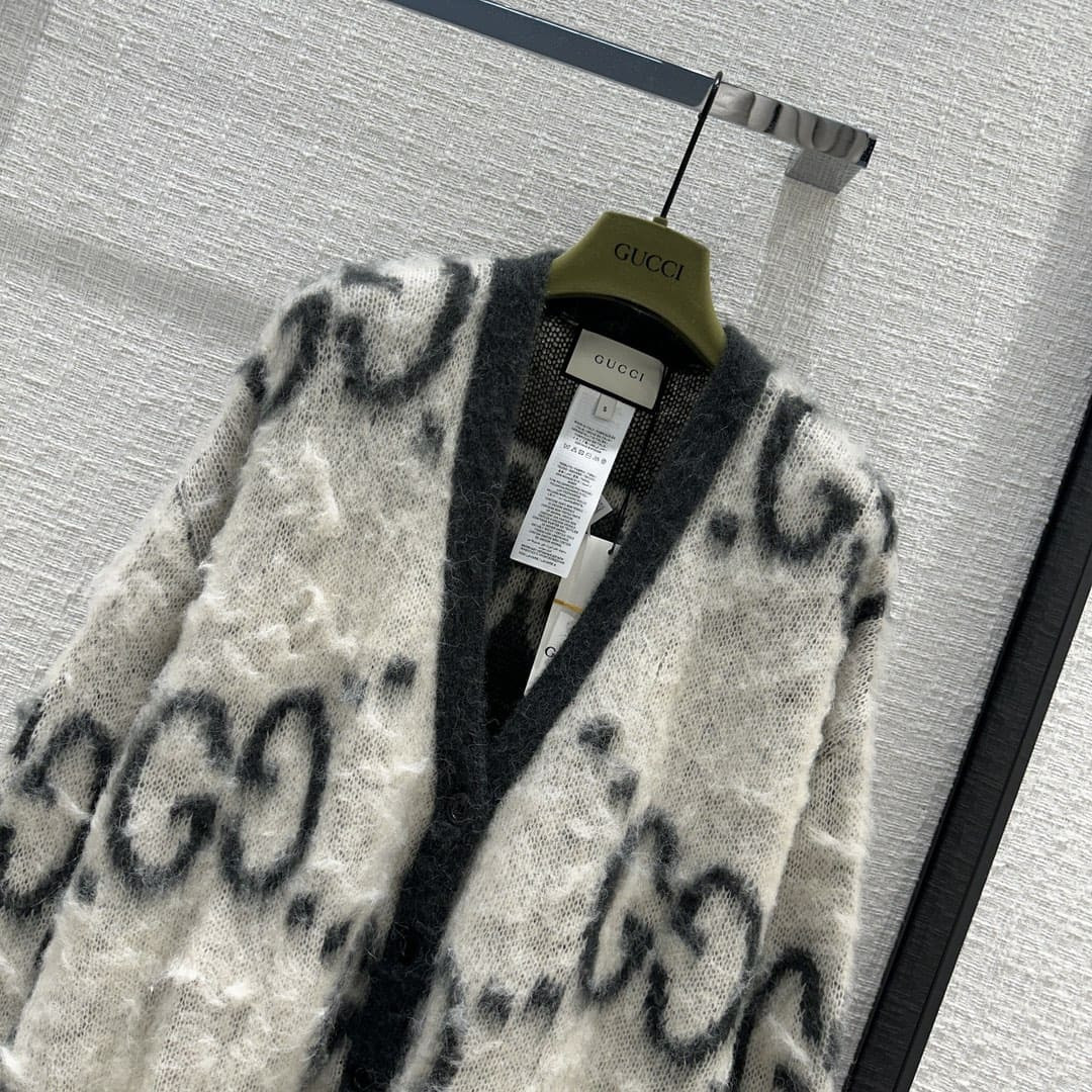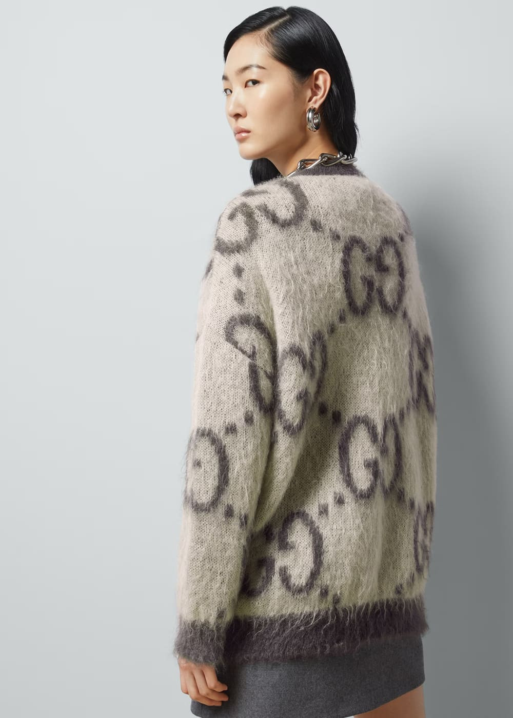 Gucci Reversible GG Mohair Wool Cardigan In Cream & Dark Grey 635160