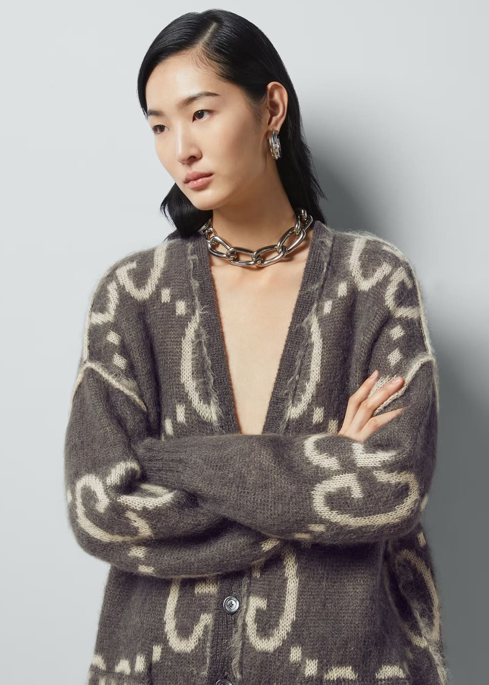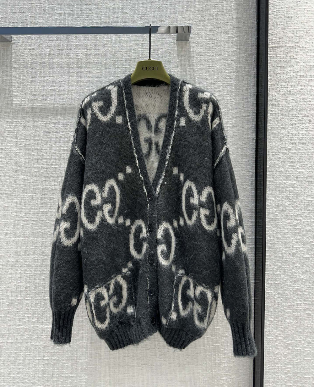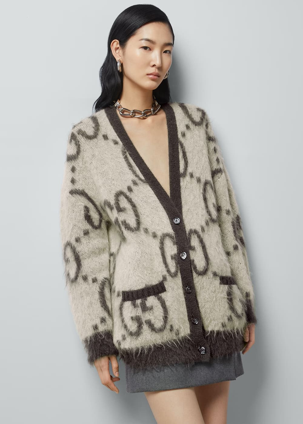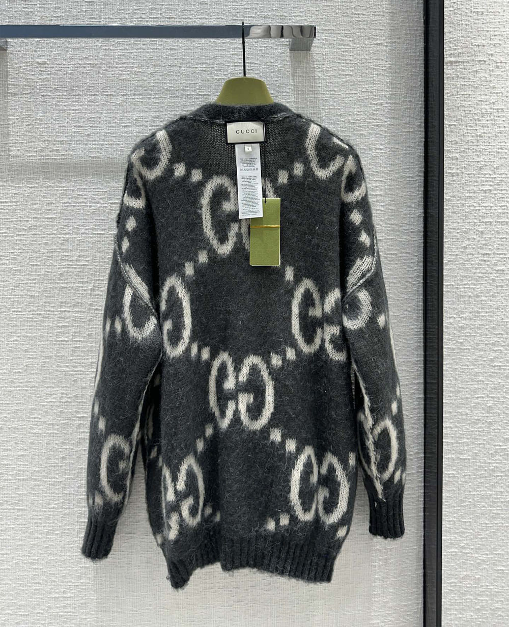 Gucci Reversible GG Mohair Wool Cardigan In Cream & Dark Grey 635160
