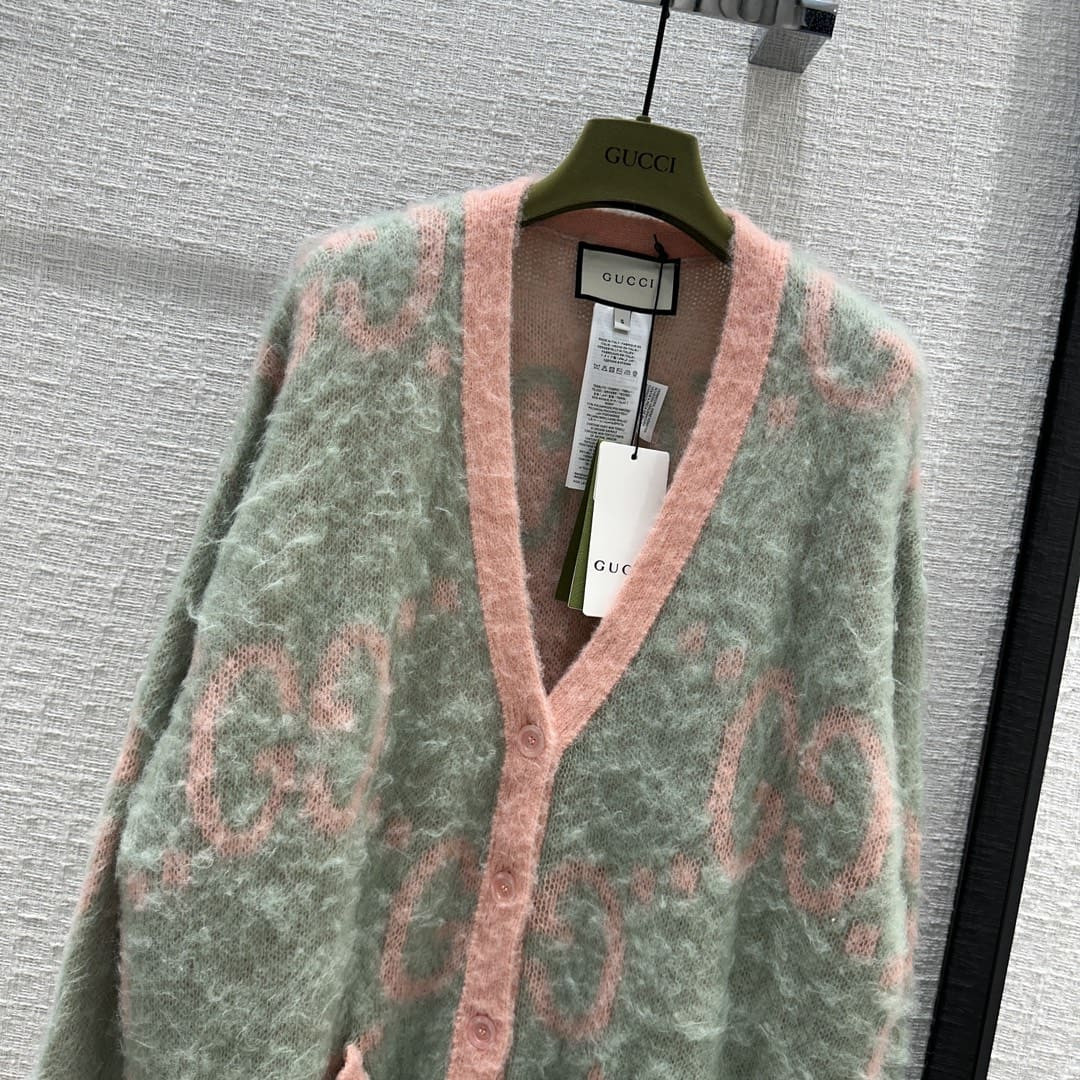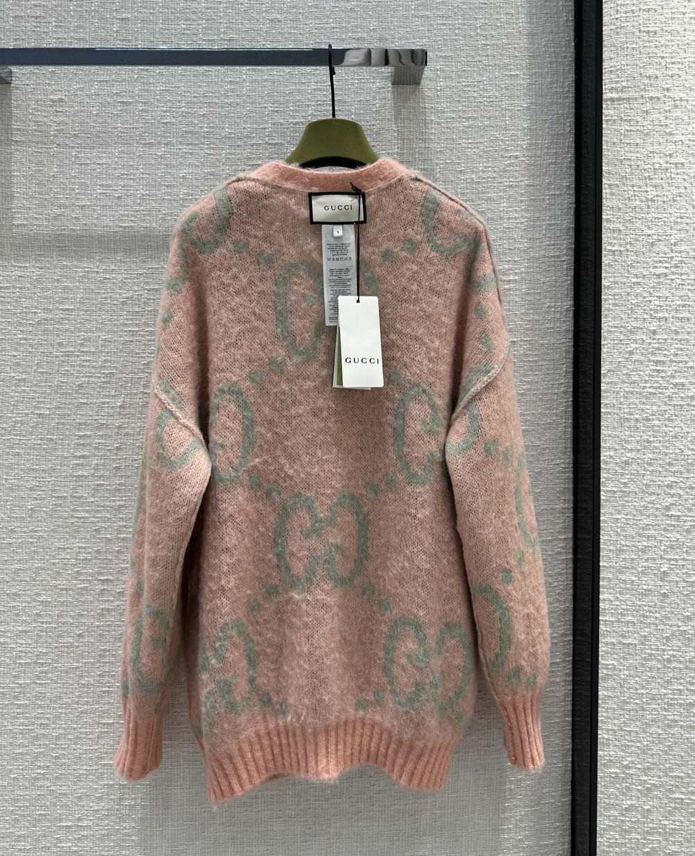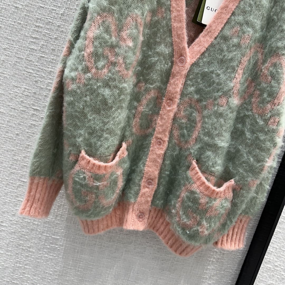 Gucci Reversible GG Mohair Wool Cardigan In Light Green & Pink 635160