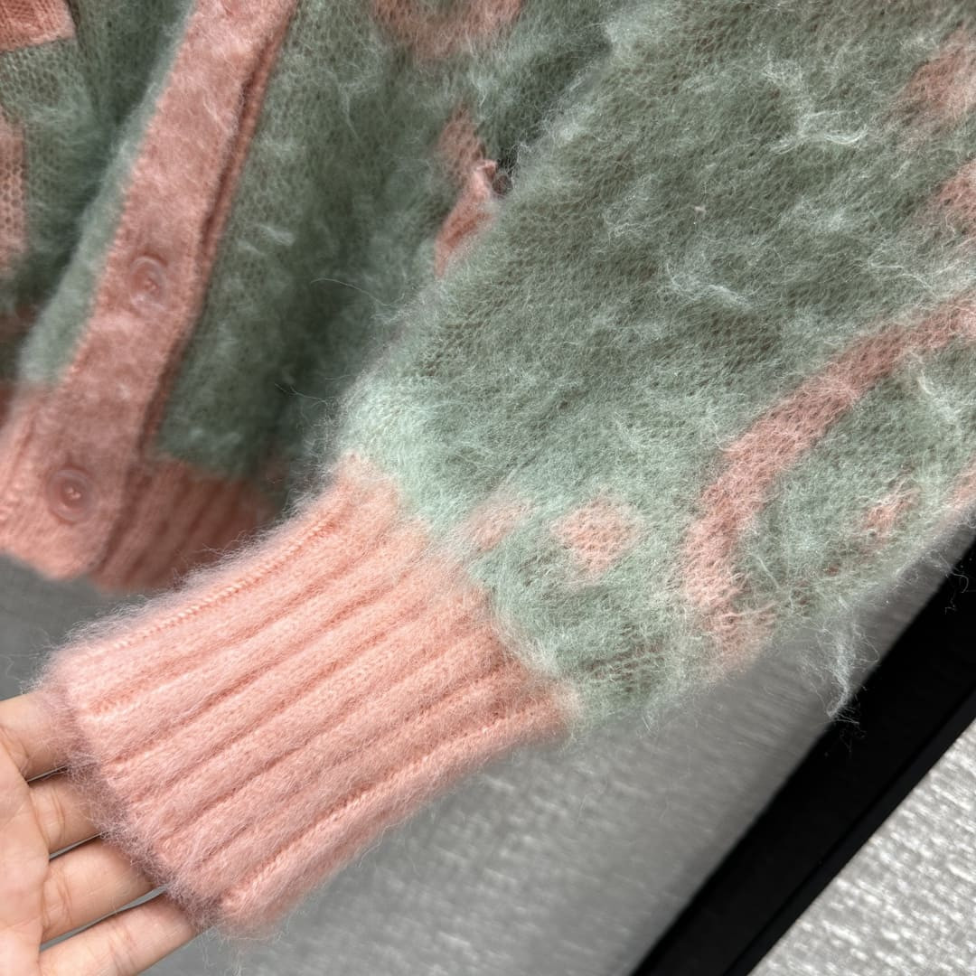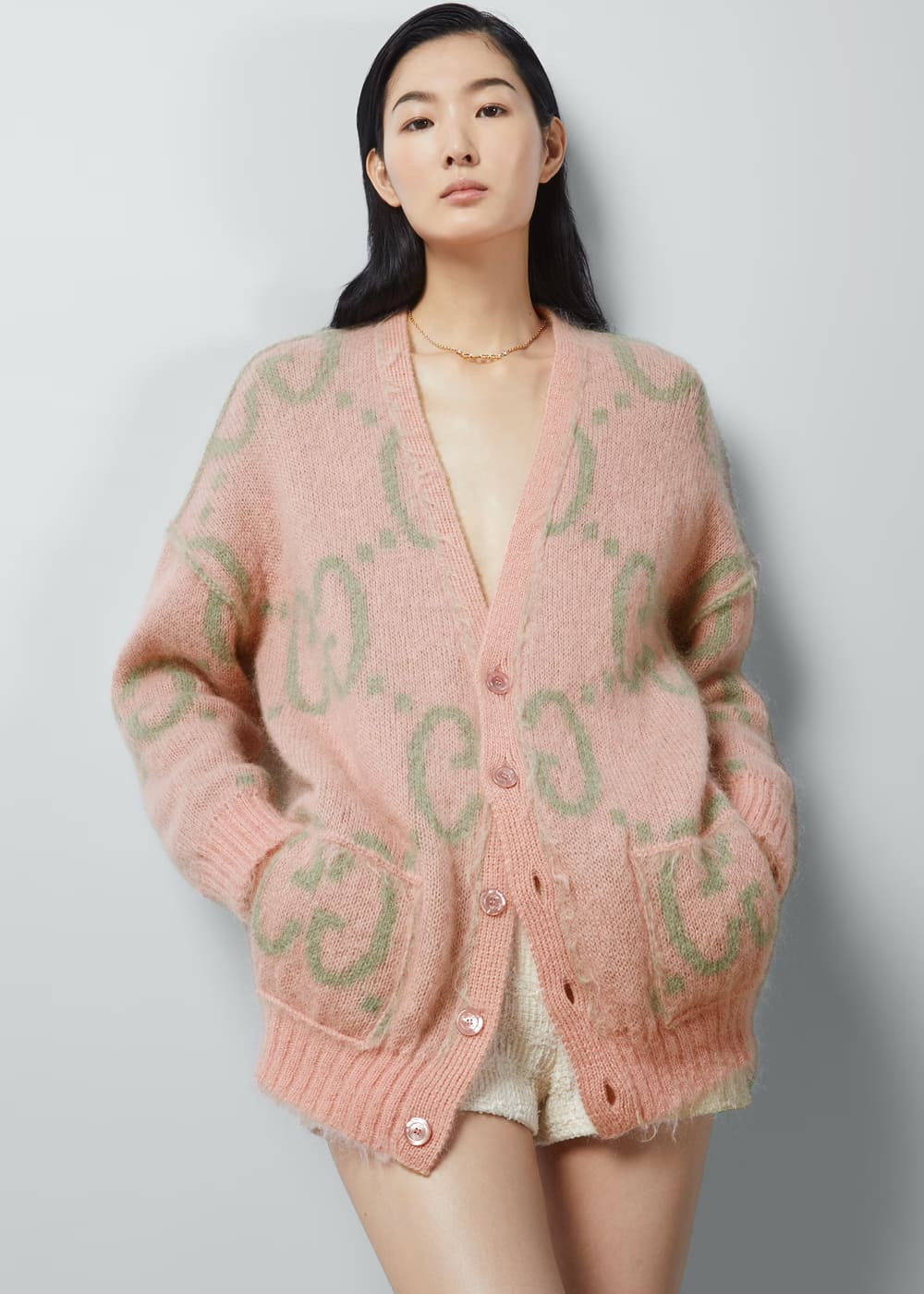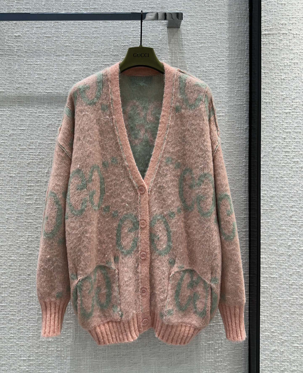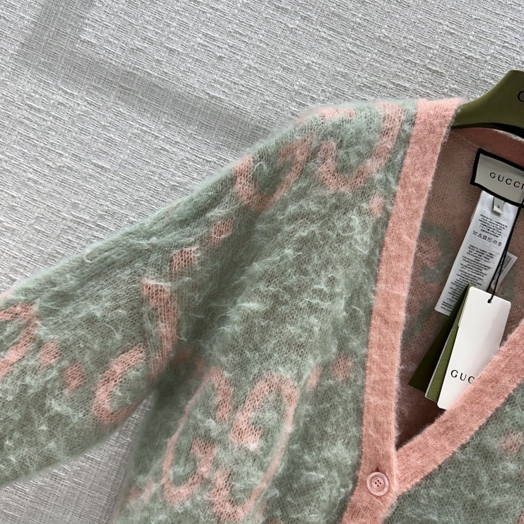 Gucci Reversible GG Mohair Wool Cardigan In Light Green & Pink 635160