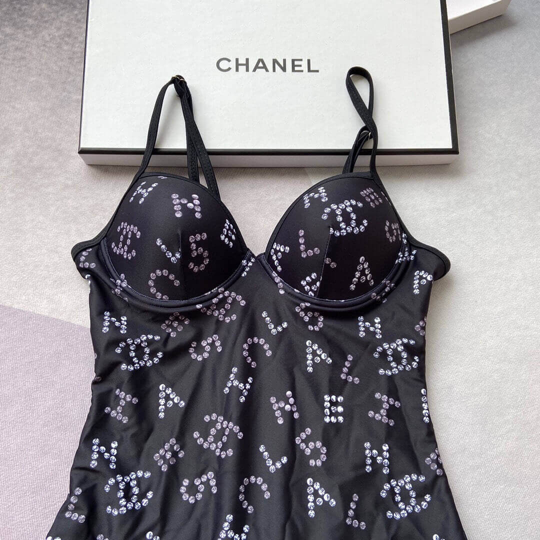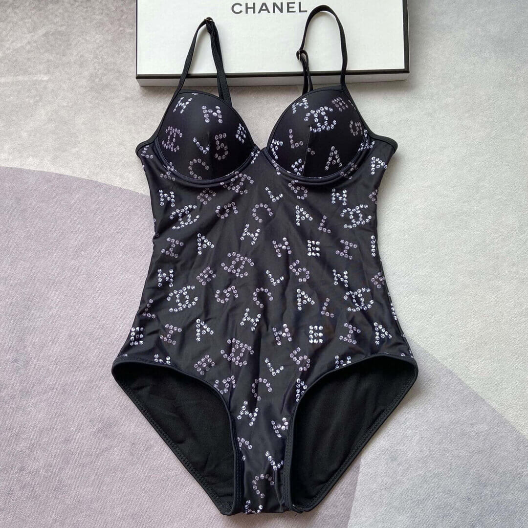 Chanel Glittered CC Logo Print One Piece Swimsuit P62750
