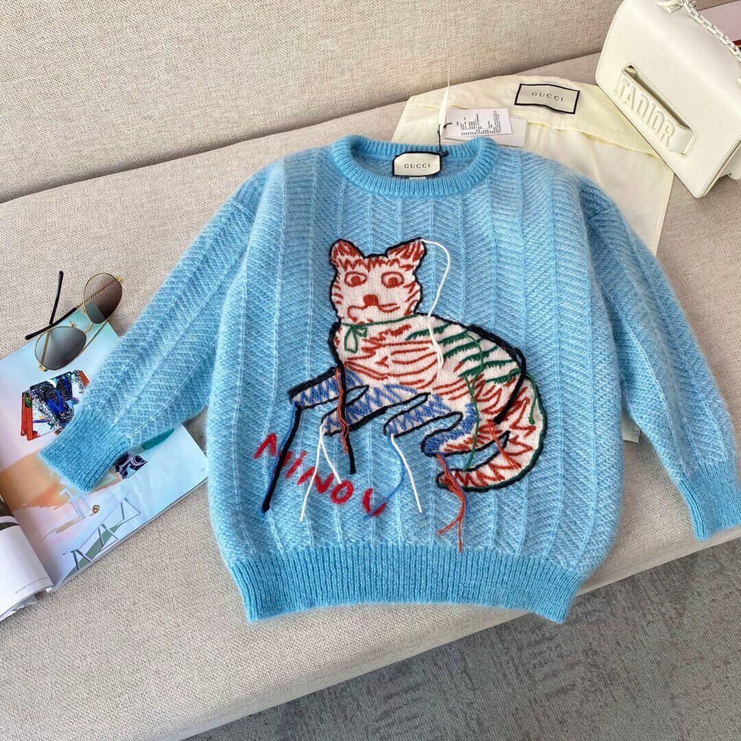 Gucci Mohair Sweater With Cat Intarsia 636104