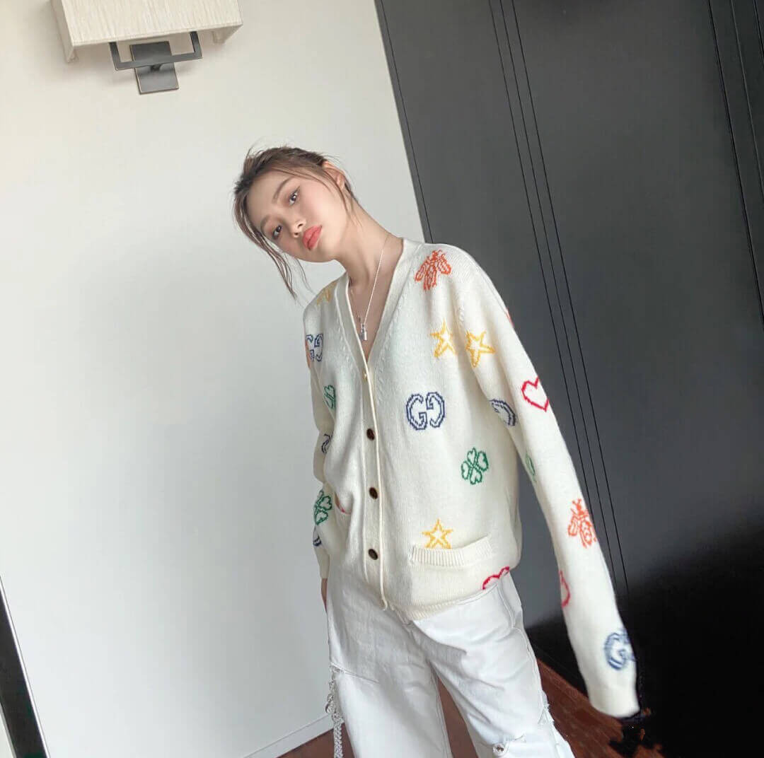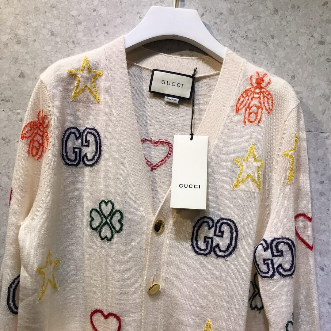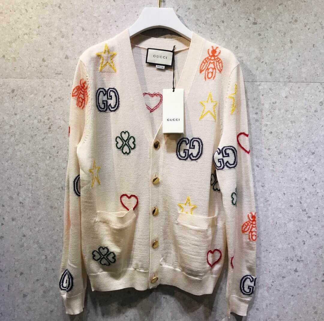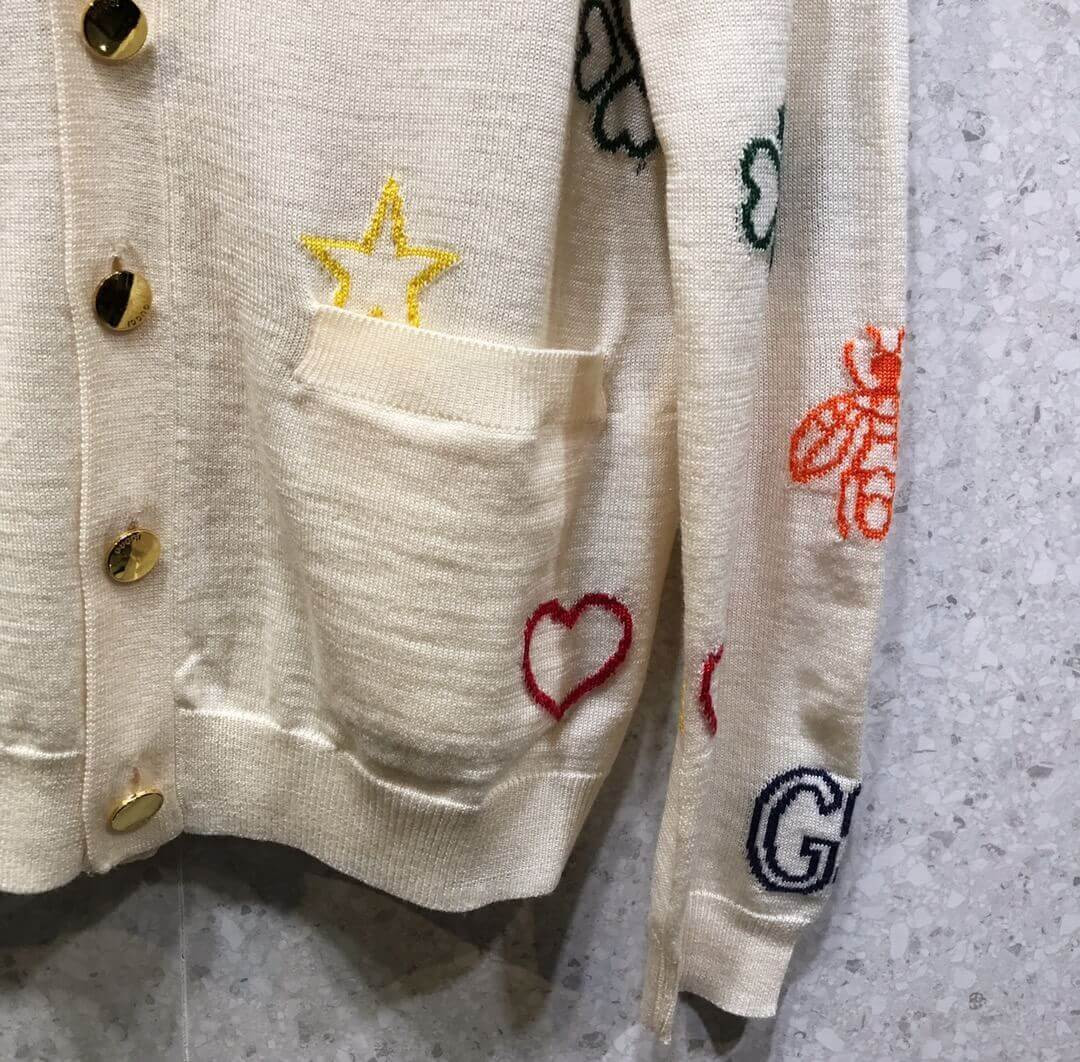 Gucci Symbols Jacquard Cotton Linen Cardigan 626642