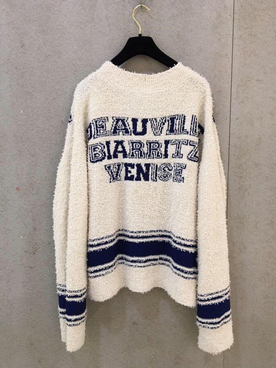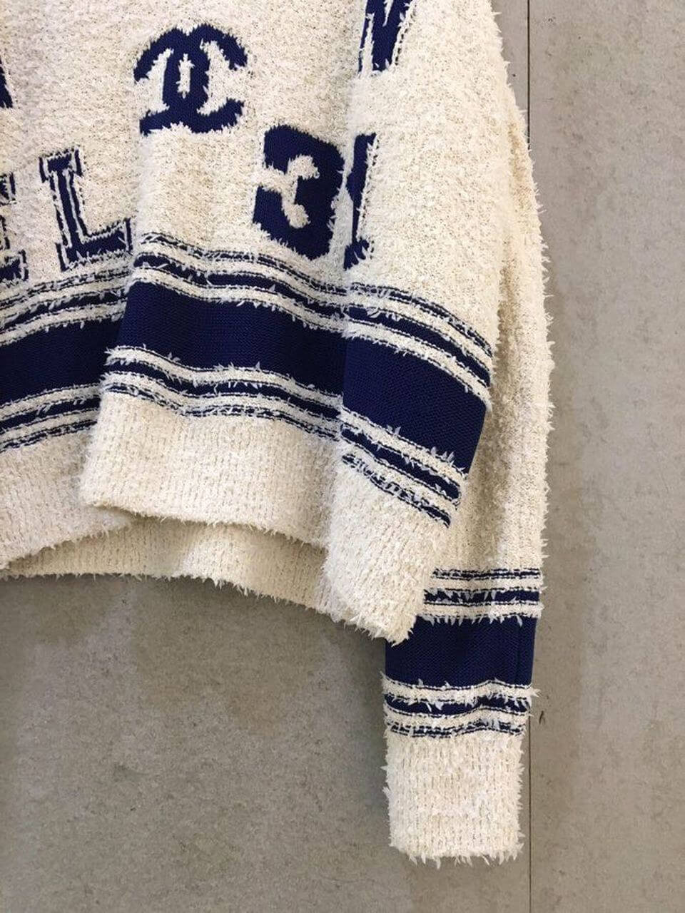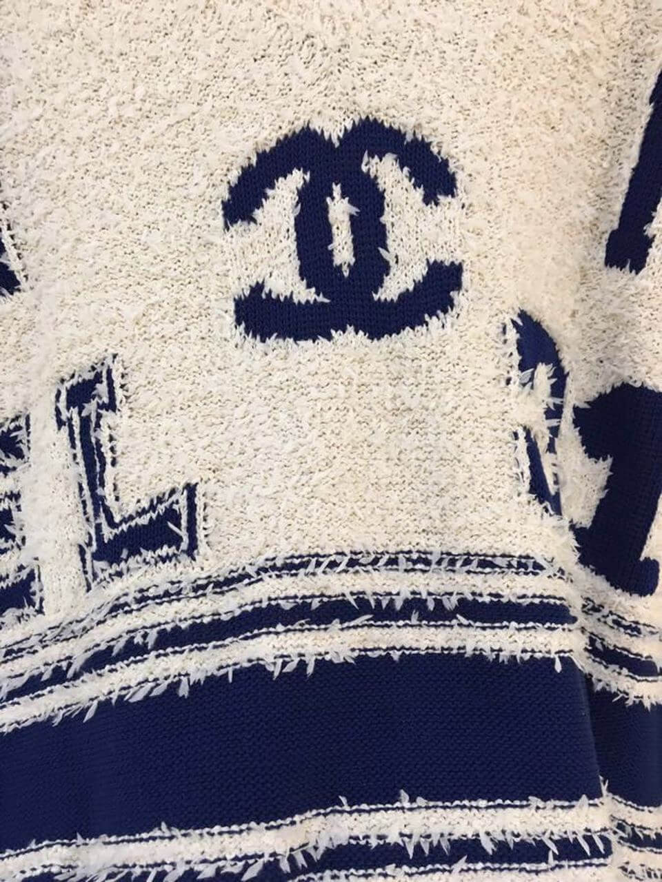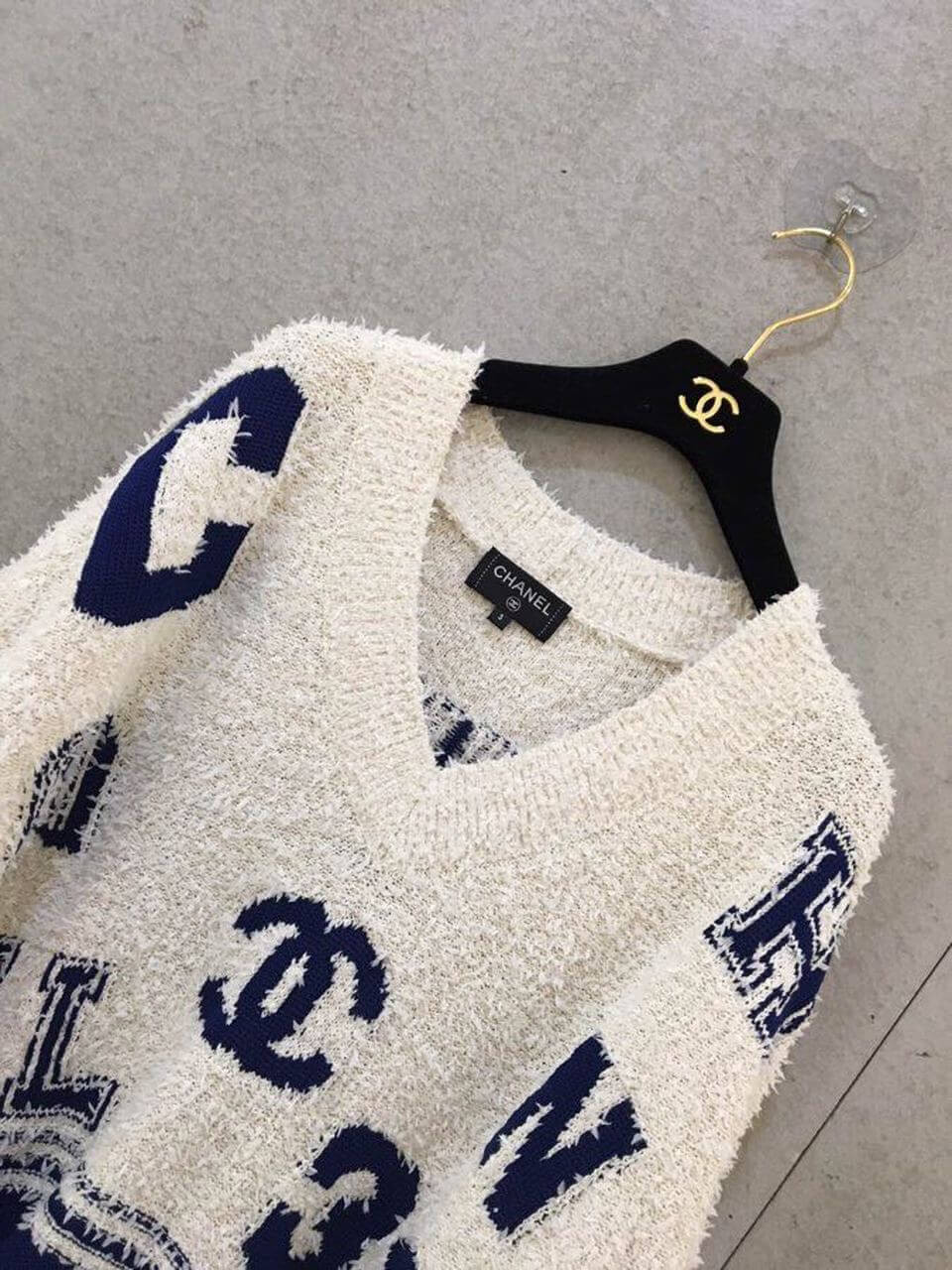 Chanel Varsity Logo iconic Oversized Wool Cashmere V Neck Sweater C1402