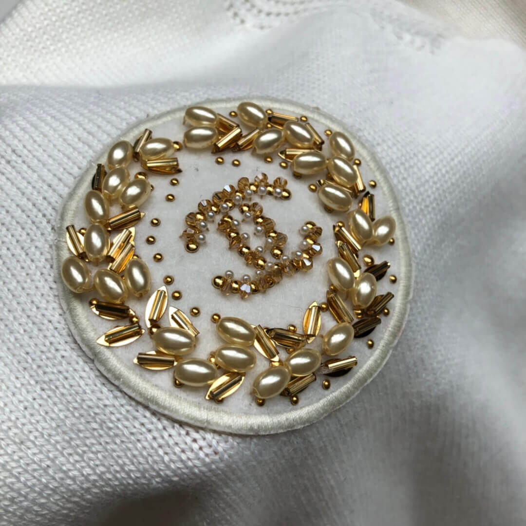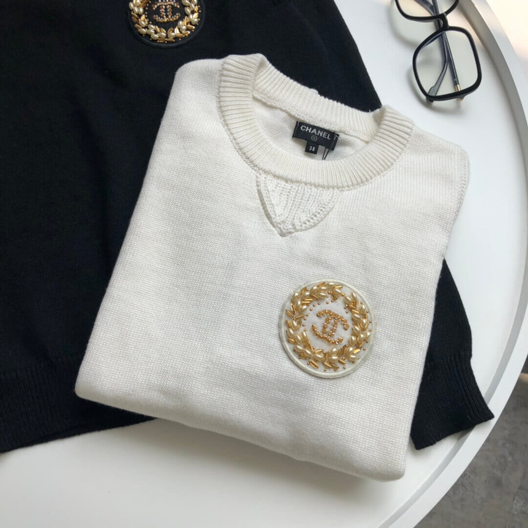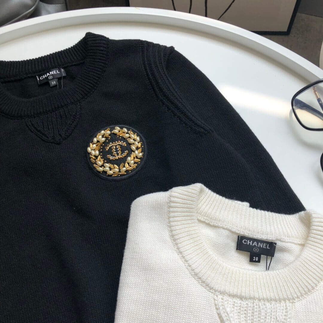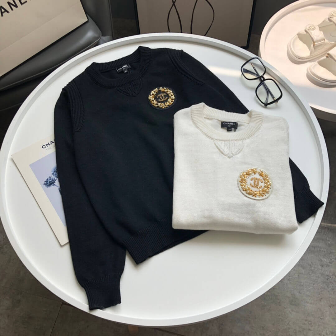 Chanel Varsity Logo iconic Oversized Wool Cashmere V Neck Sweater C1402