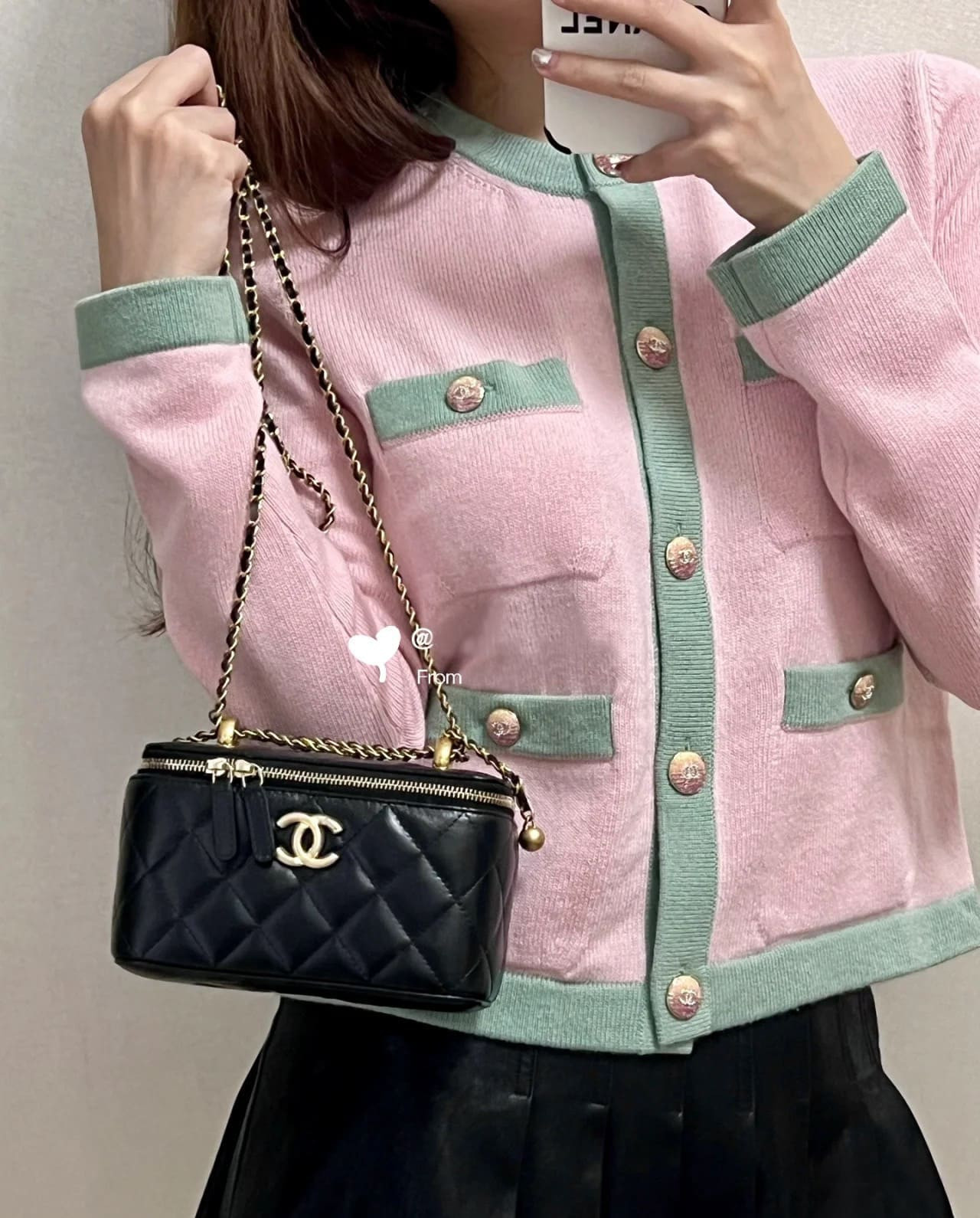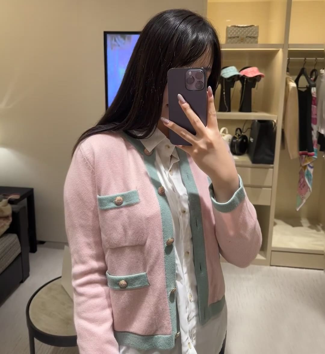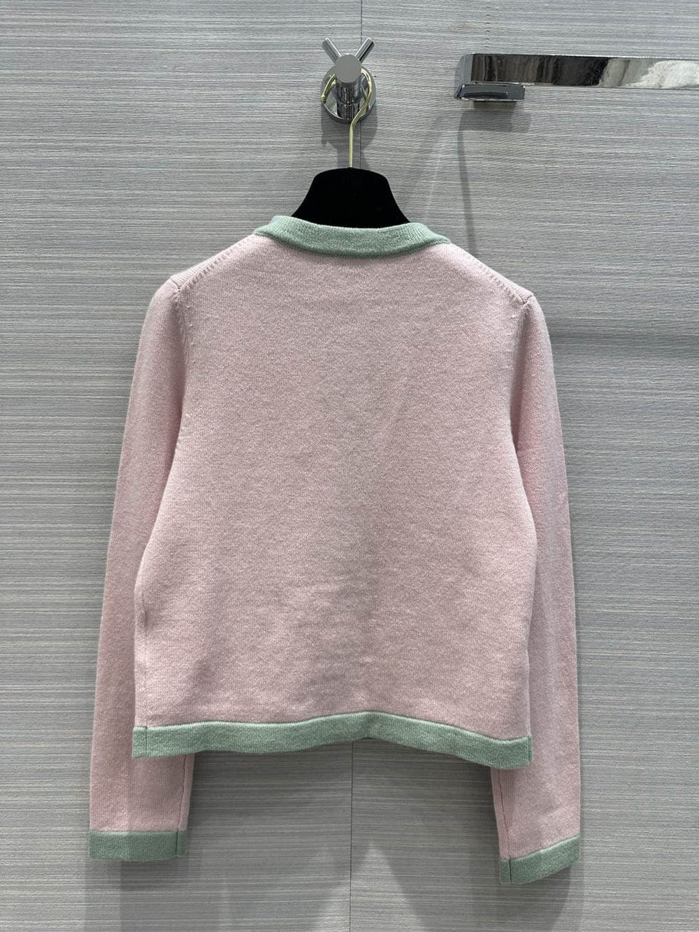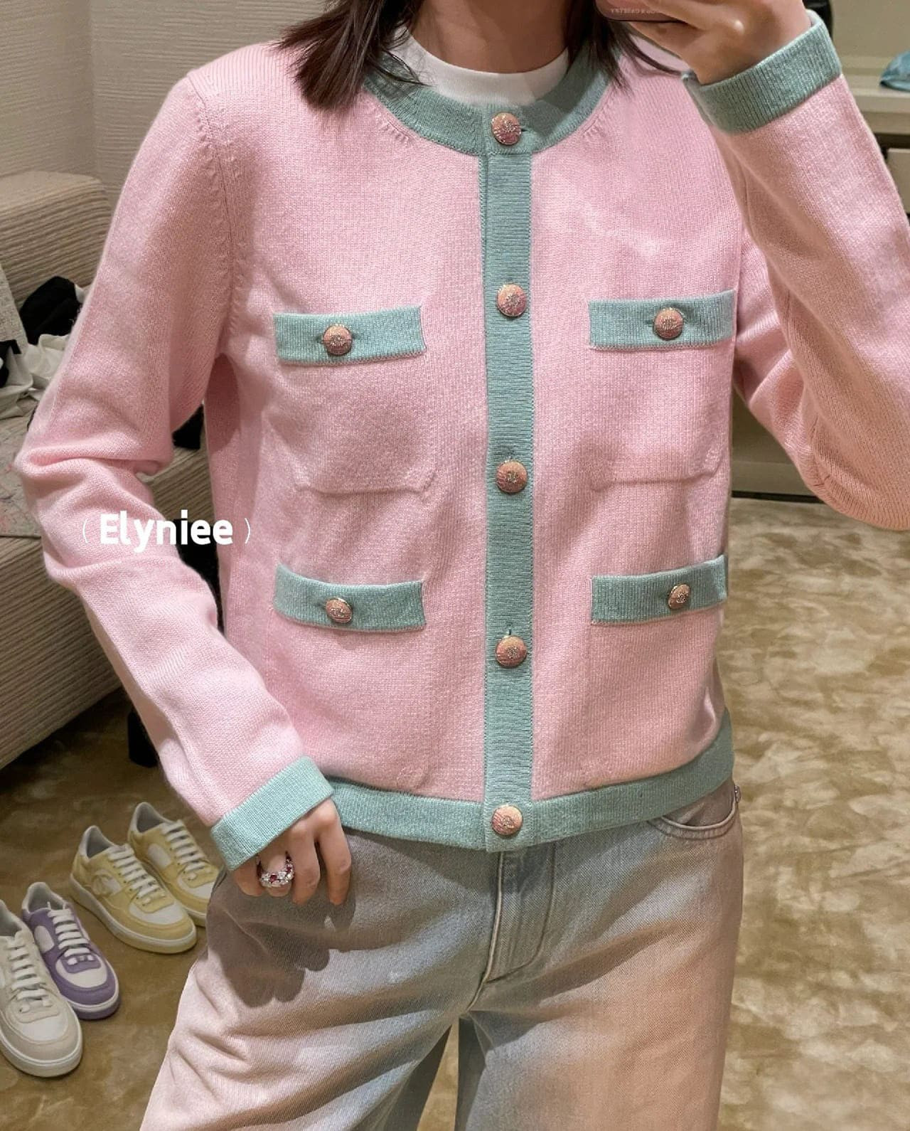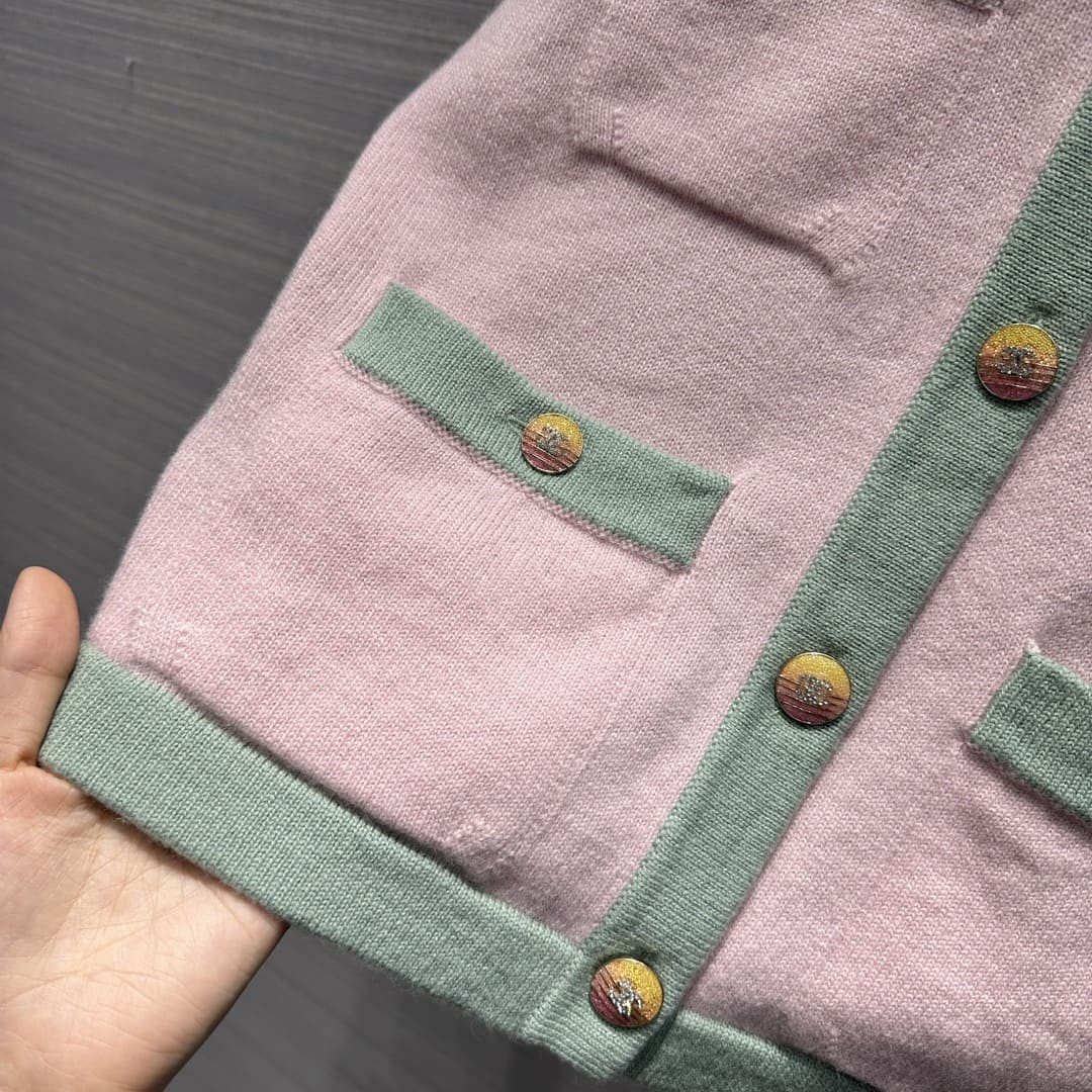 Chanel Light Pink & Light Green Cashmere Two-Tone Cardigan A92648