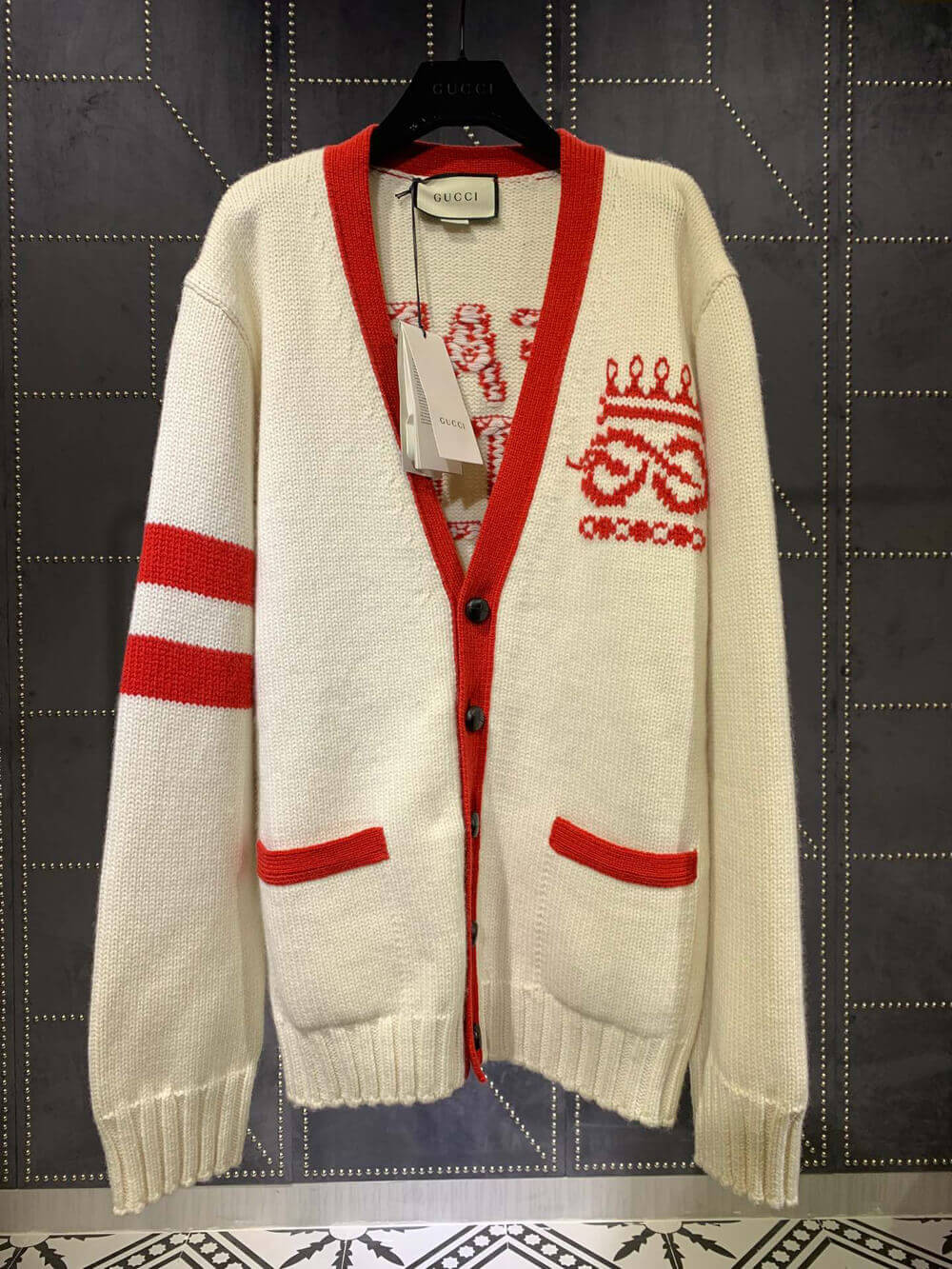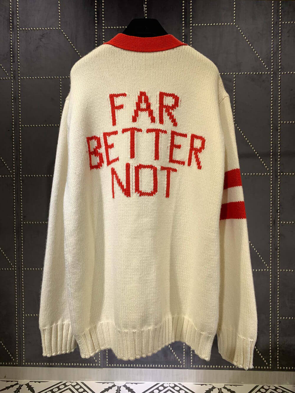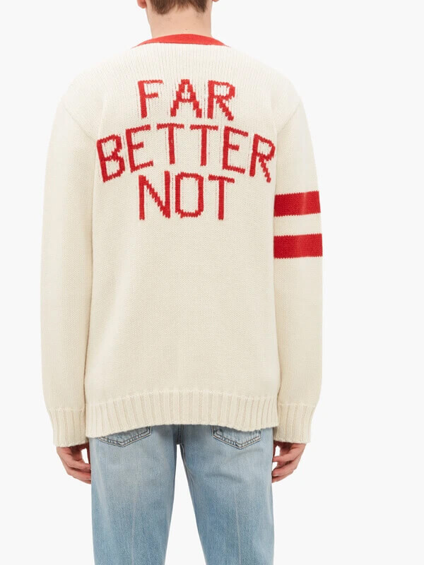 Gucci Far Better Not Slogan-Jacquard Wool Cardigan