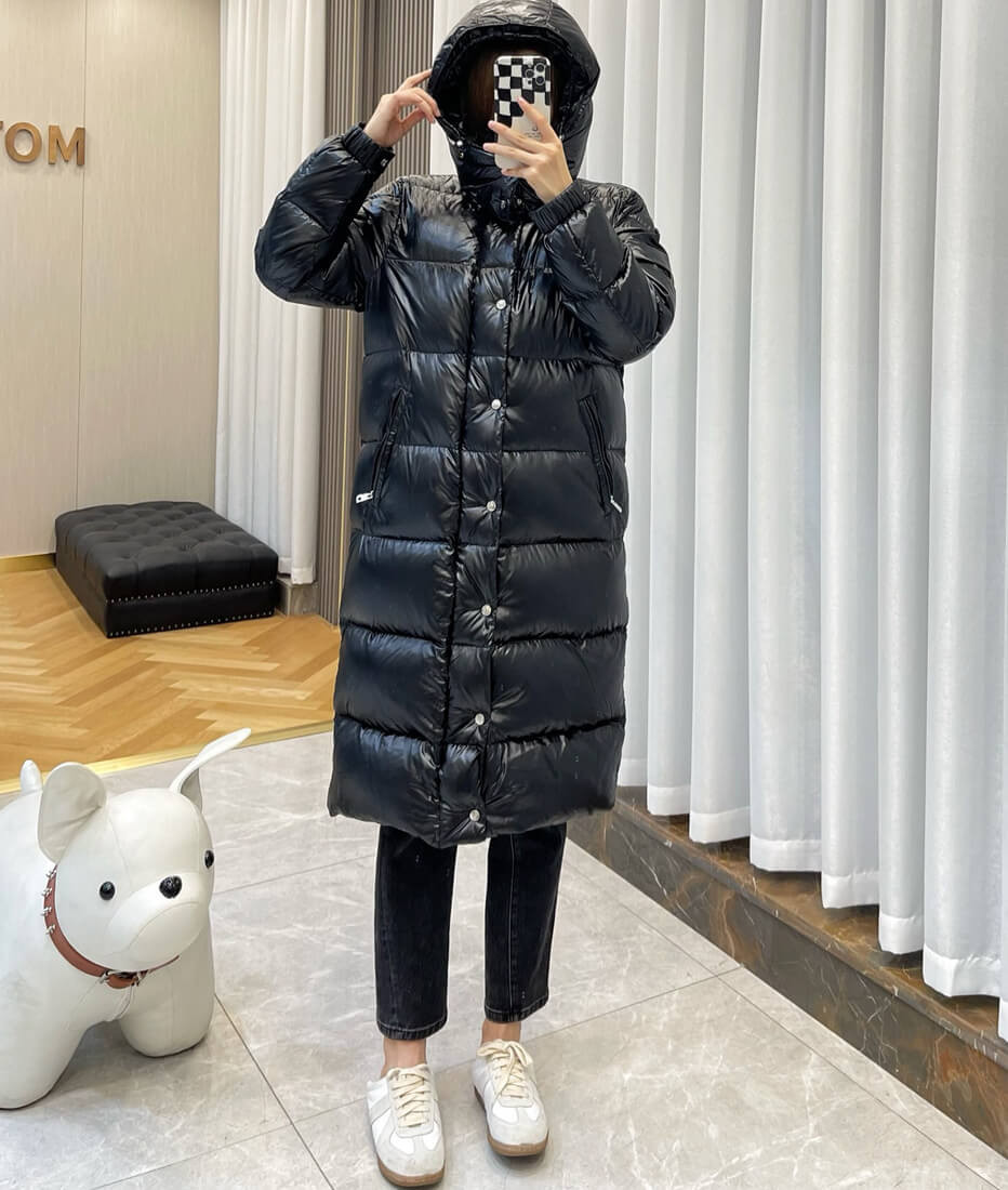 Moncler Daos Long Water Resistant Iridescent Hooded Down Puffer Coat