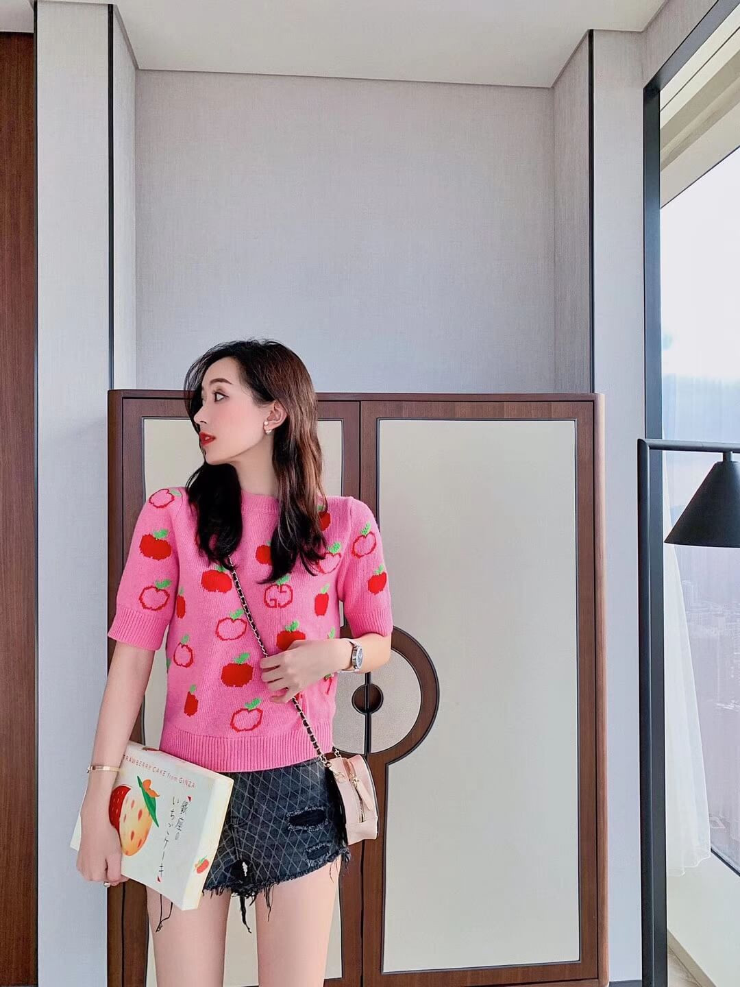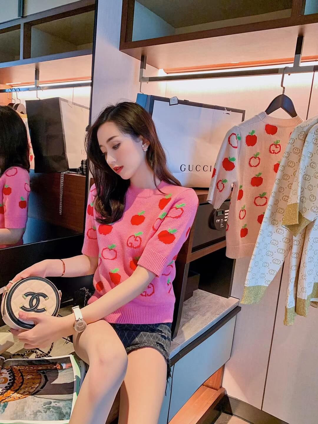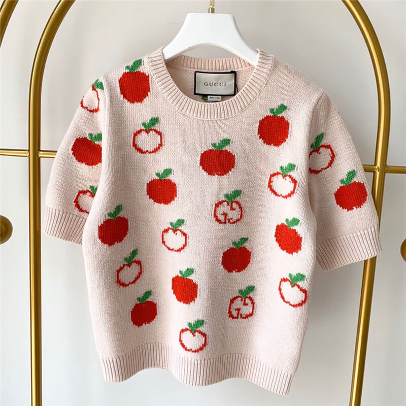 Gucci GG Apple Print Wool Jacquard Top 606117