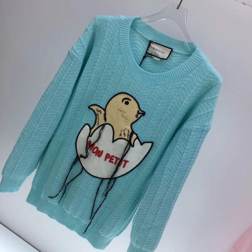Gucci Mohair Crop Sweater With Chick Egg 636009