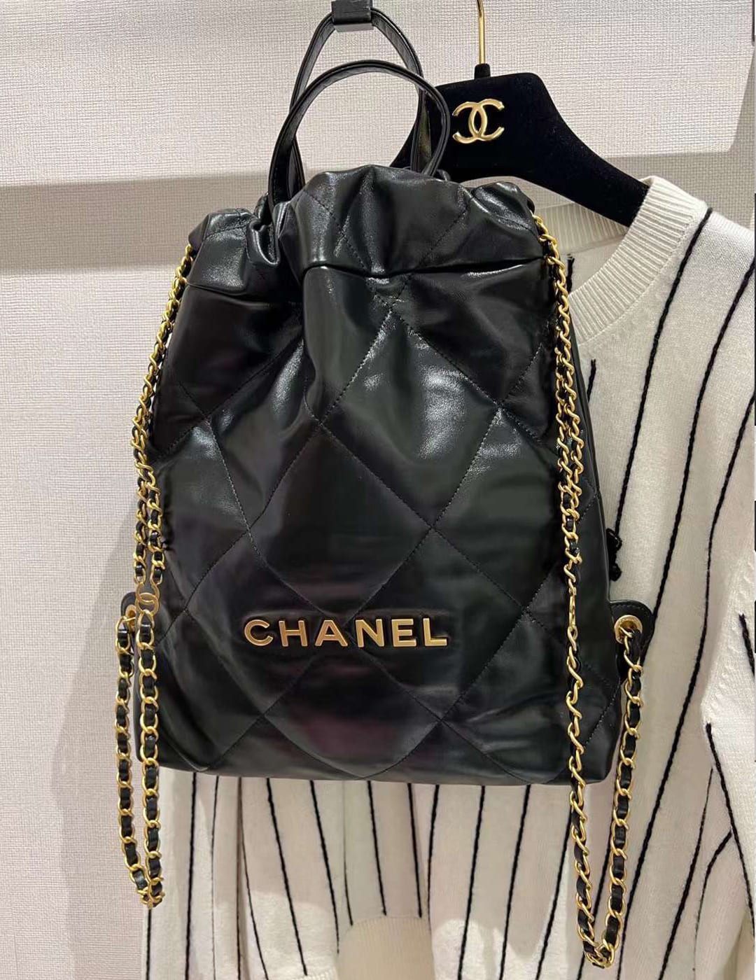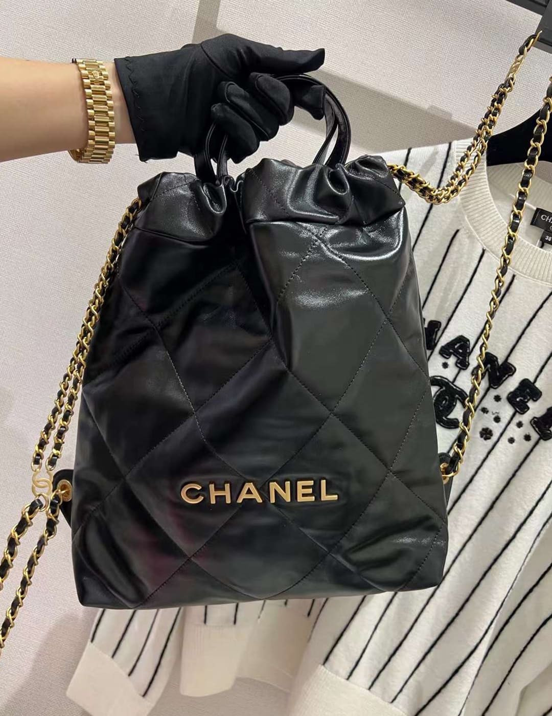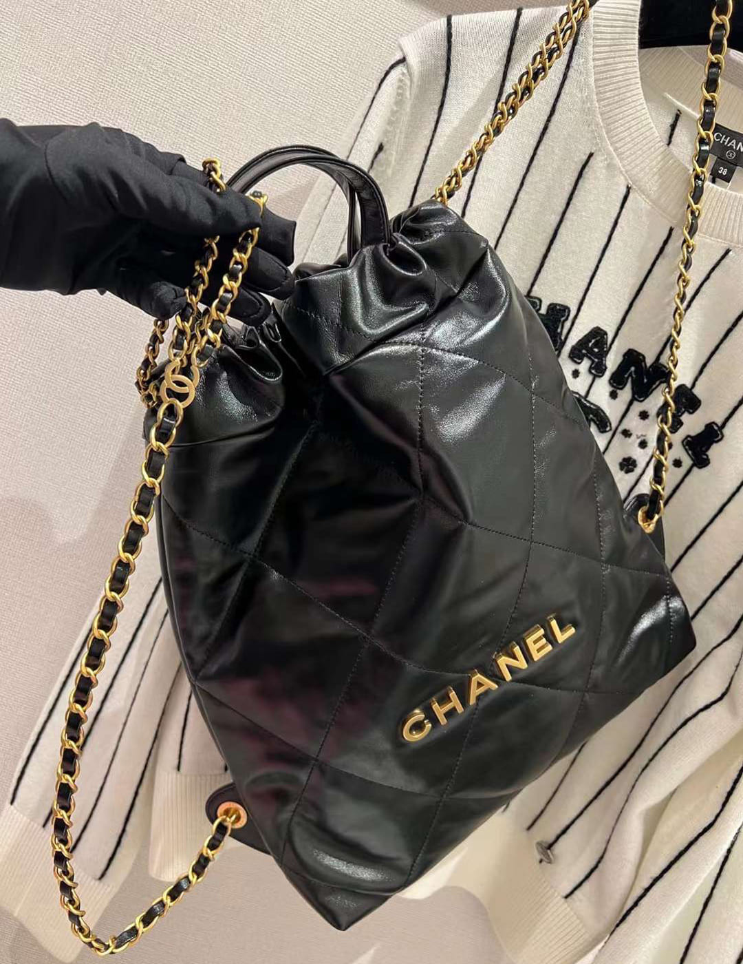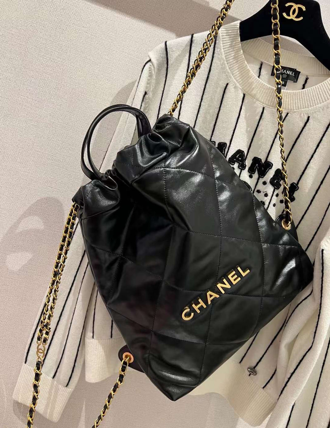 Chanel 22 Backpack in Black Shiny Calfskin AS3859
