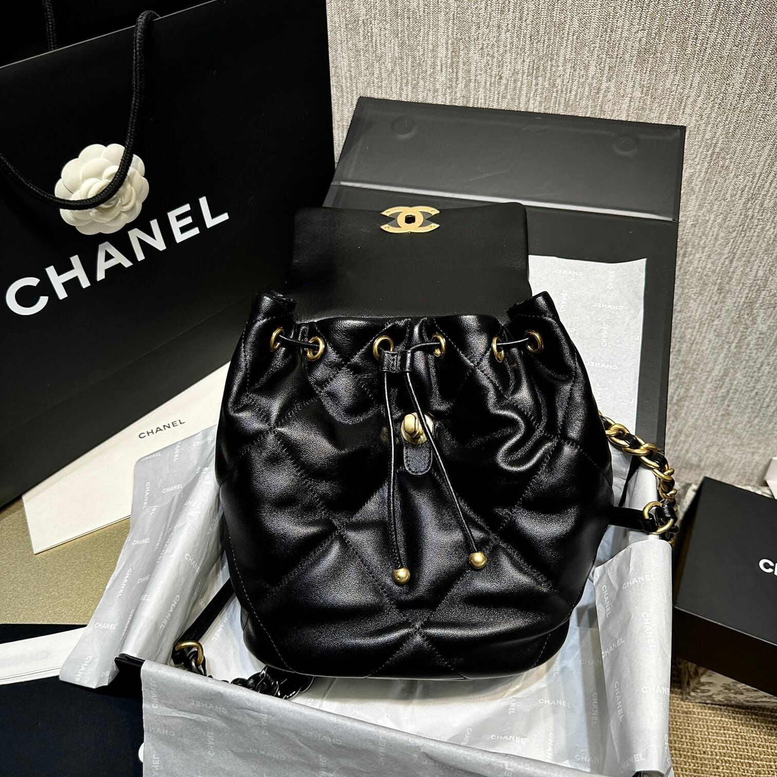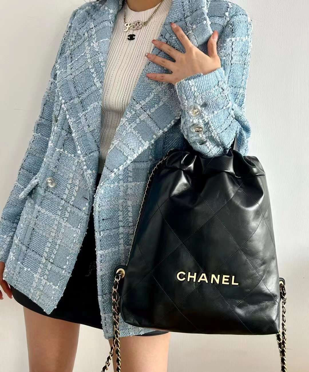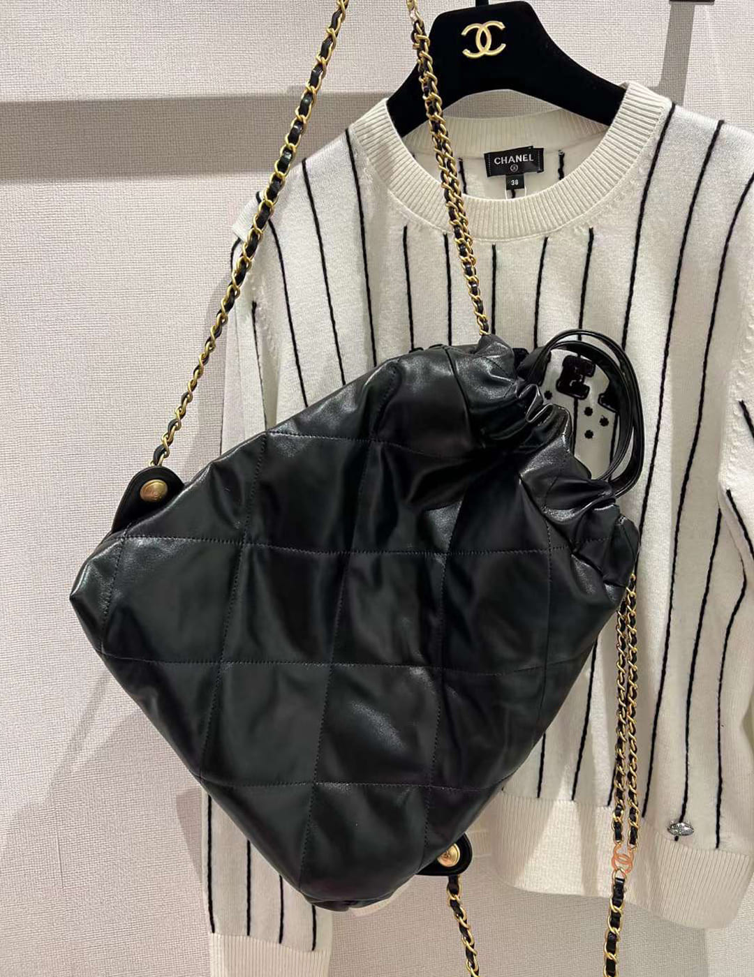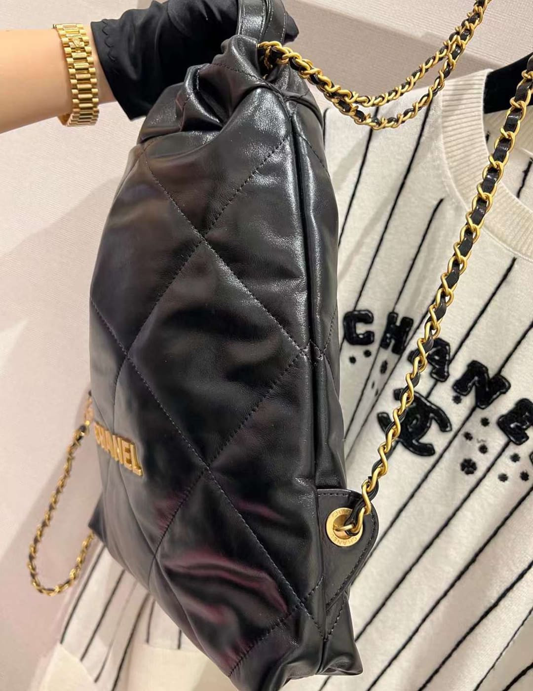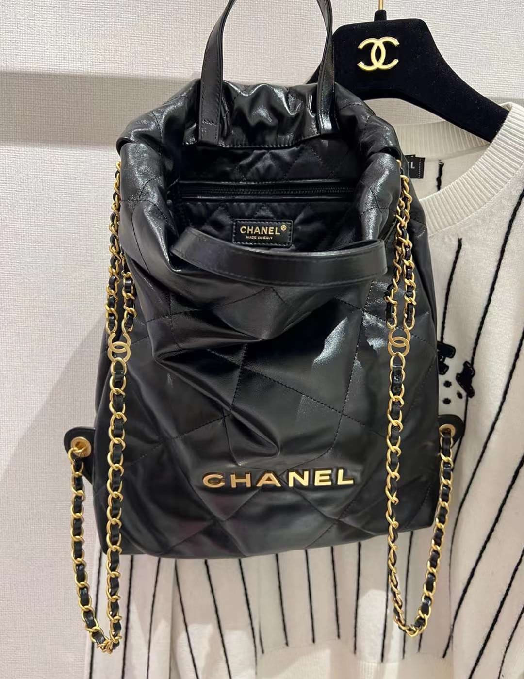 Chanel 22 Backpack in Black Shiny Calfskin AS3859