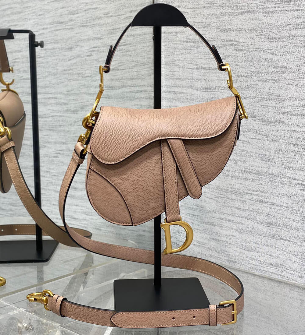 Dior Mini Saddle Bag with Strap Grained Calfskin M0456