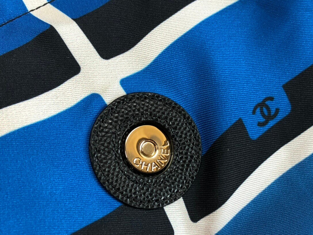 Chanel Printed Fabric Foldable Tote Bag With Chain AP2095 Blue