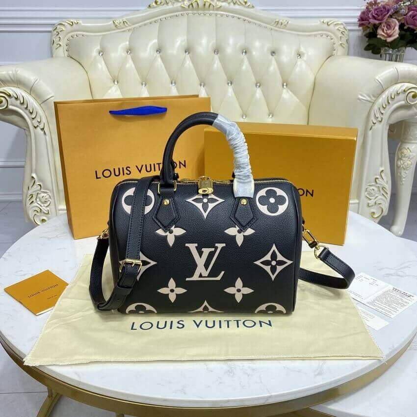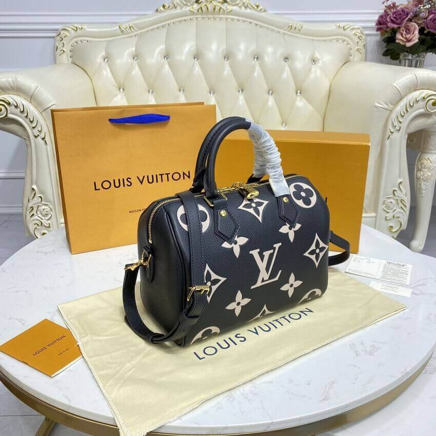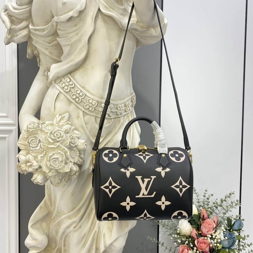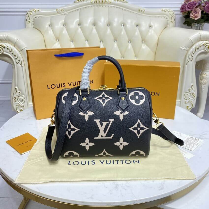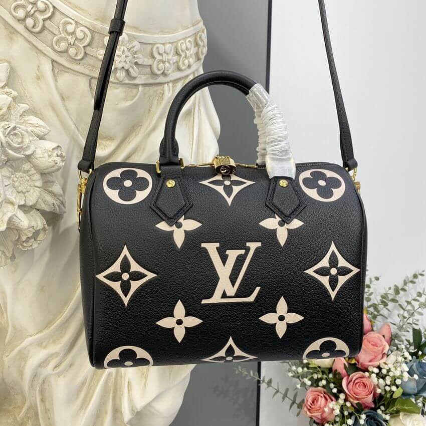 Louis Vuitton Bicolor Monogram Empreinte Speedy Bandouliere 25 M58947 Black/Beige