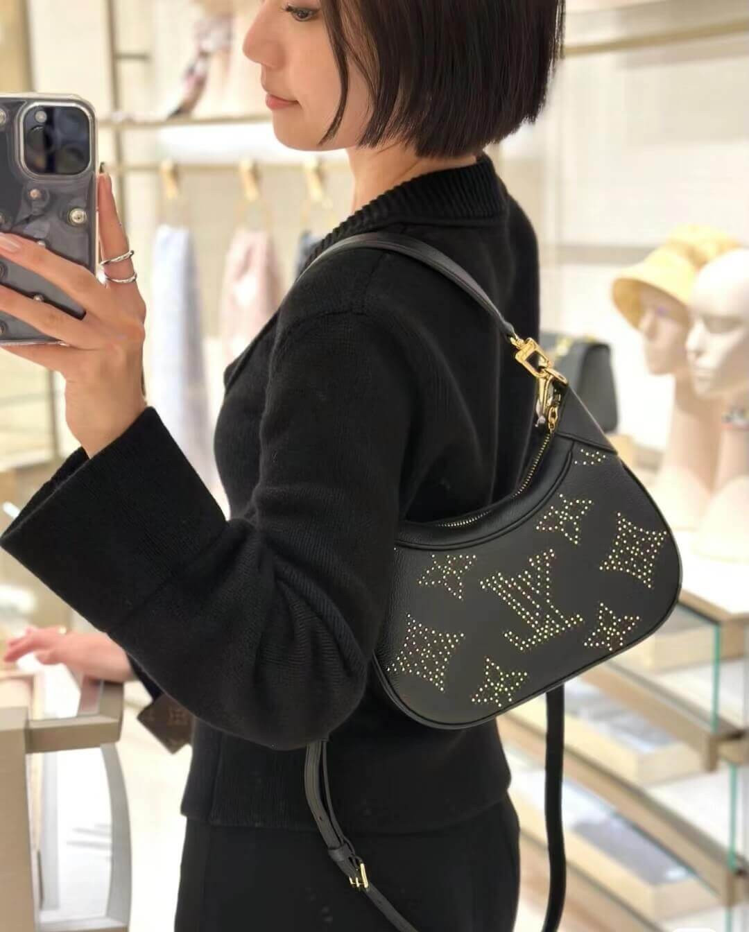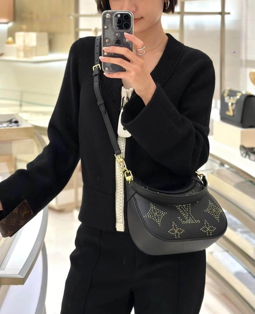 Louis Vuitton Bagatelle Bag M46735 Black Monogram Empreinte With Studs