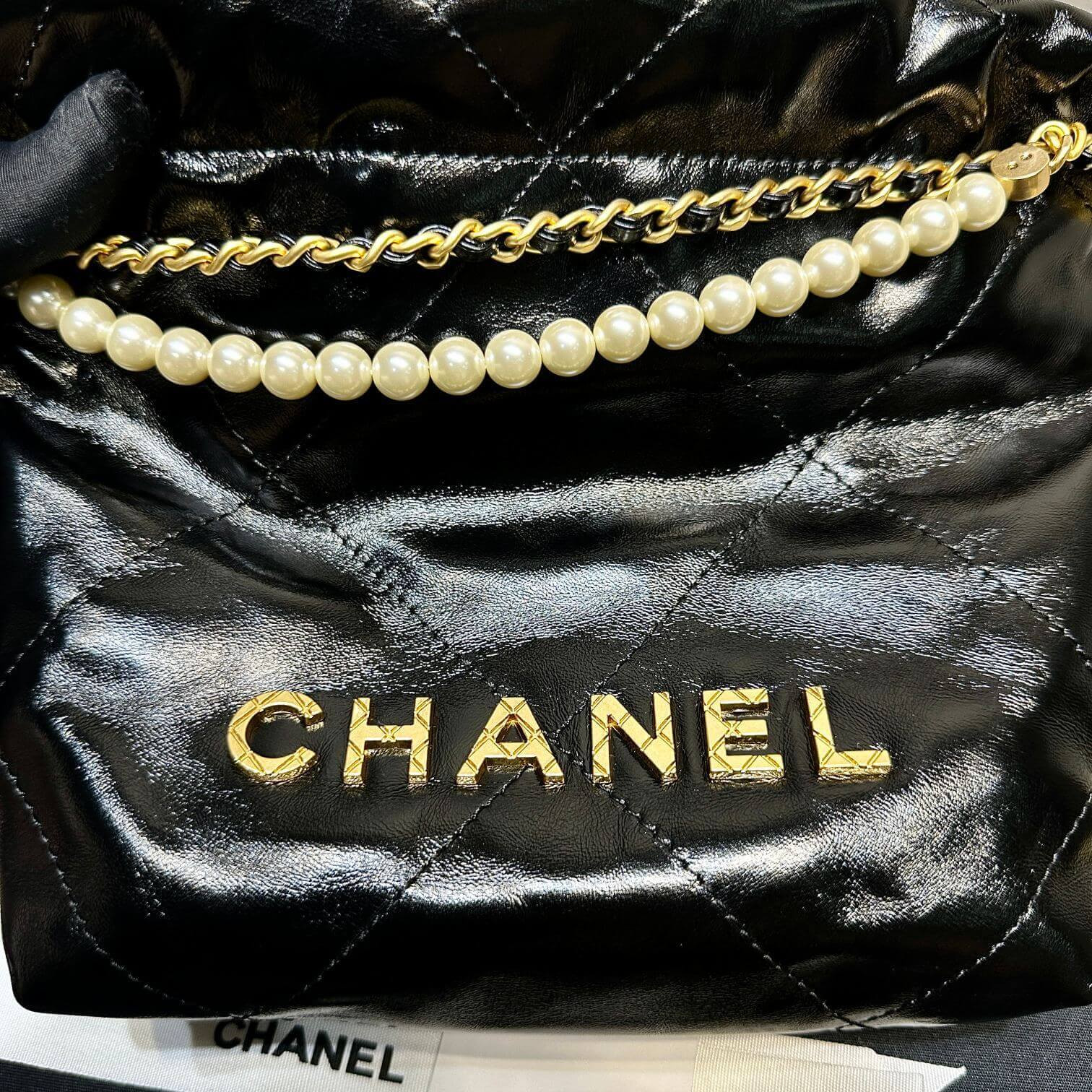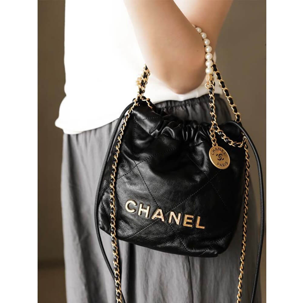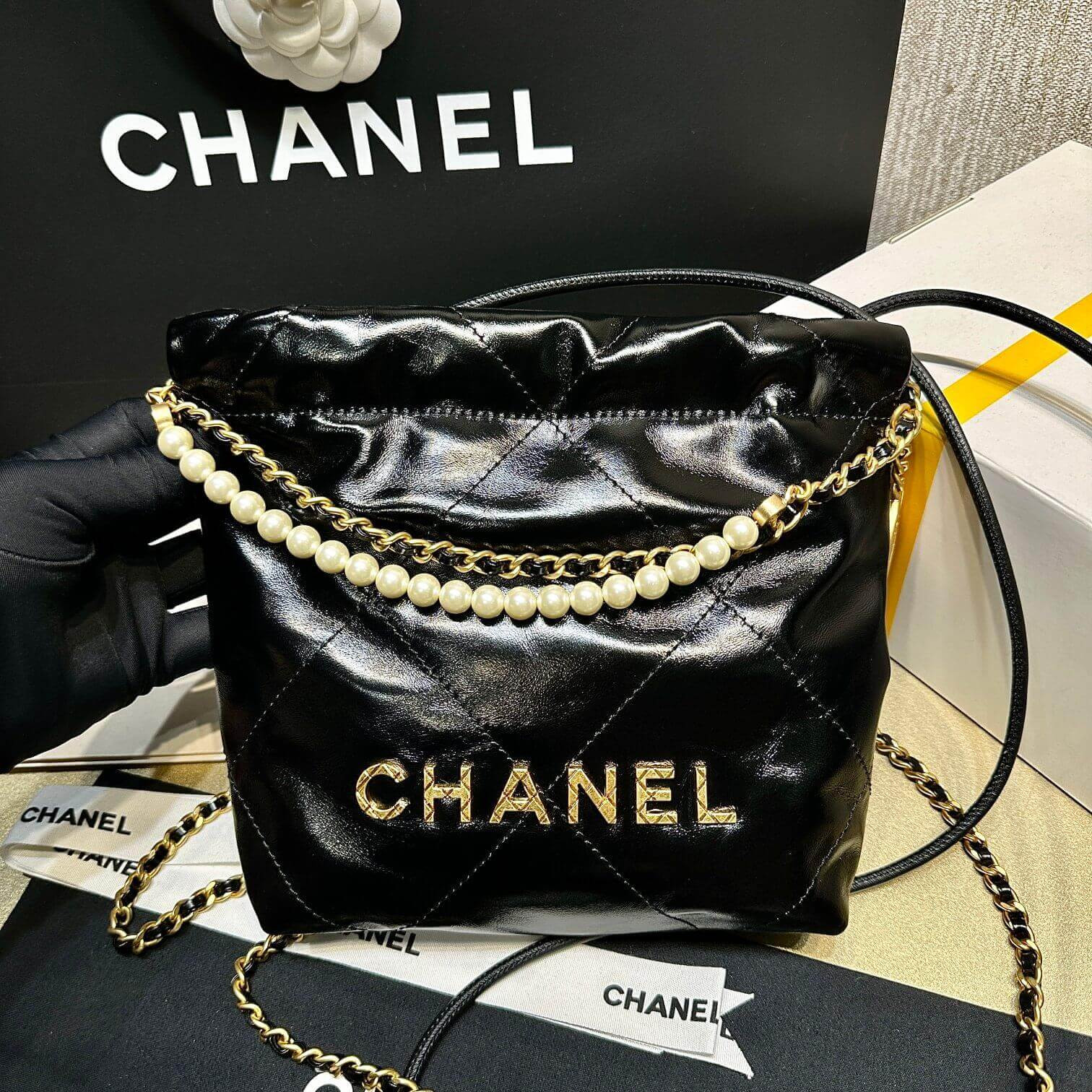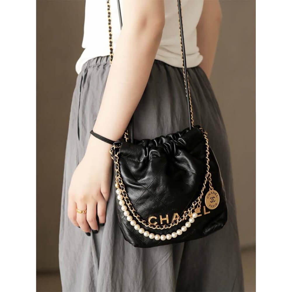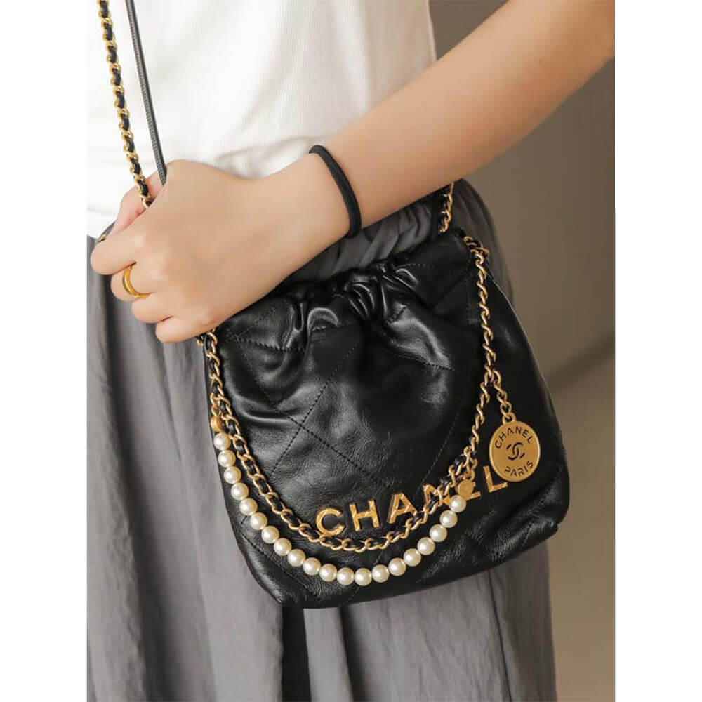 Chanel 22 Mini Bag Shiny Crumpled Calfskin with Pearl Chain AS3980