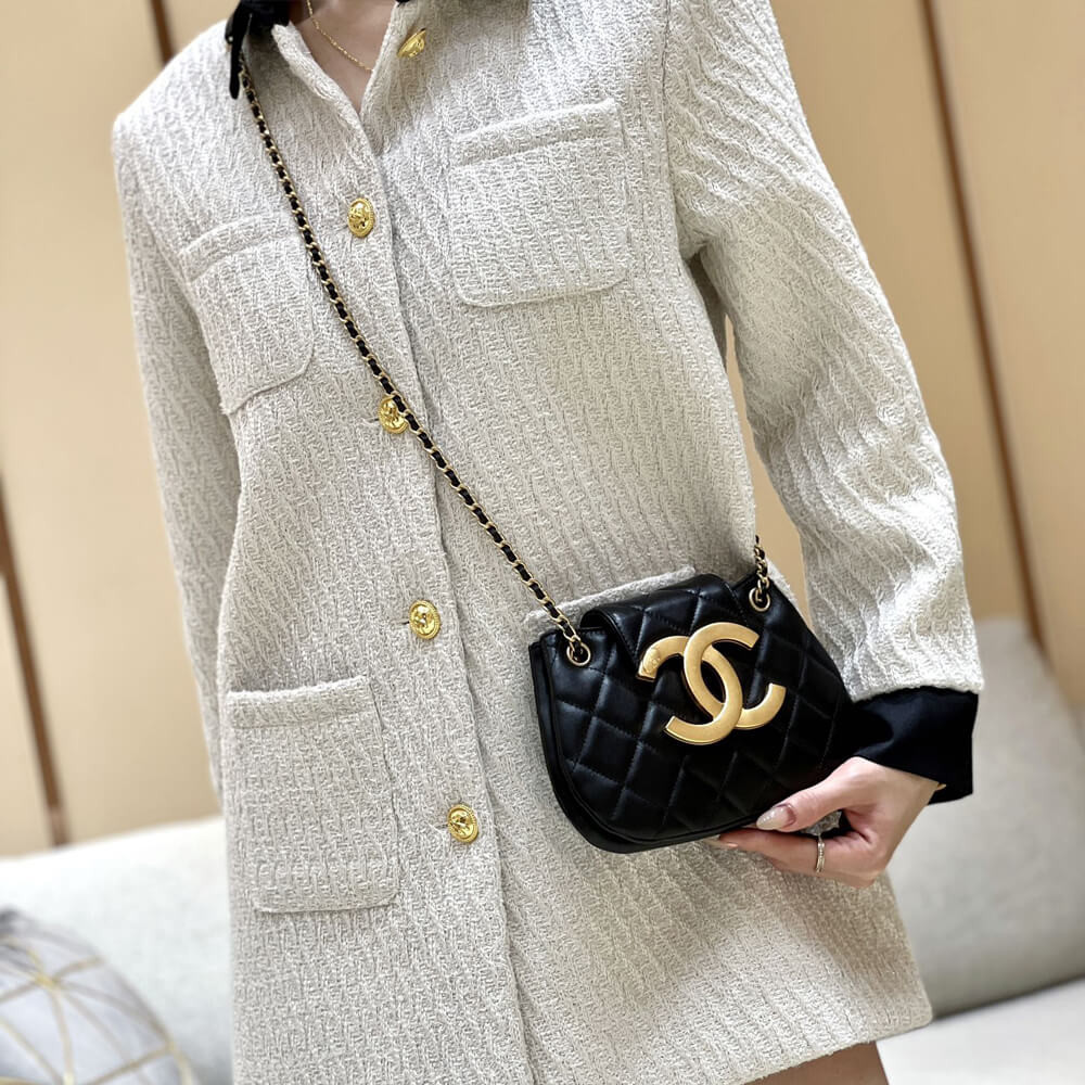 Chanel Lambskin Mini Flap Bag With Top Handle Black AS2431 with Lion Charm
