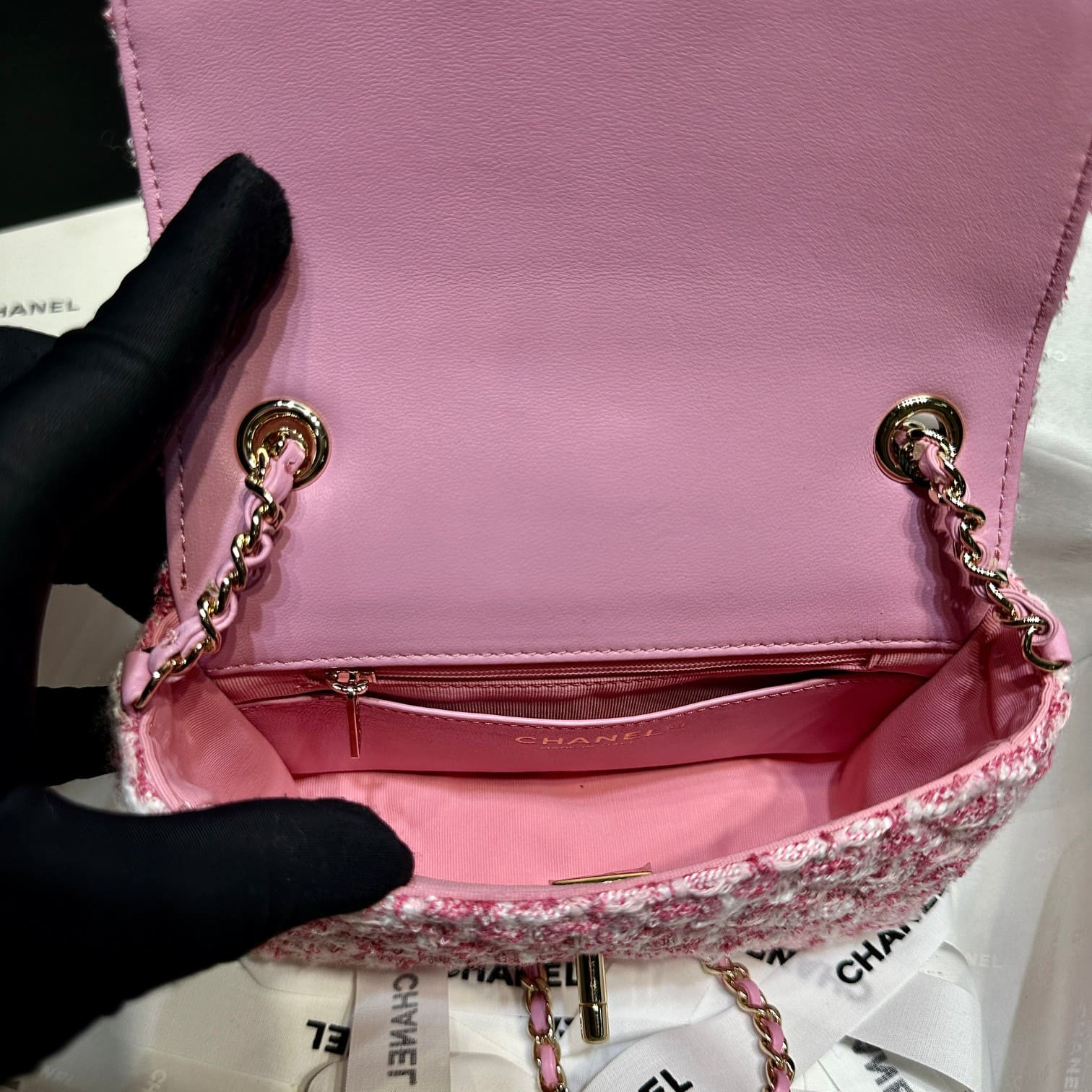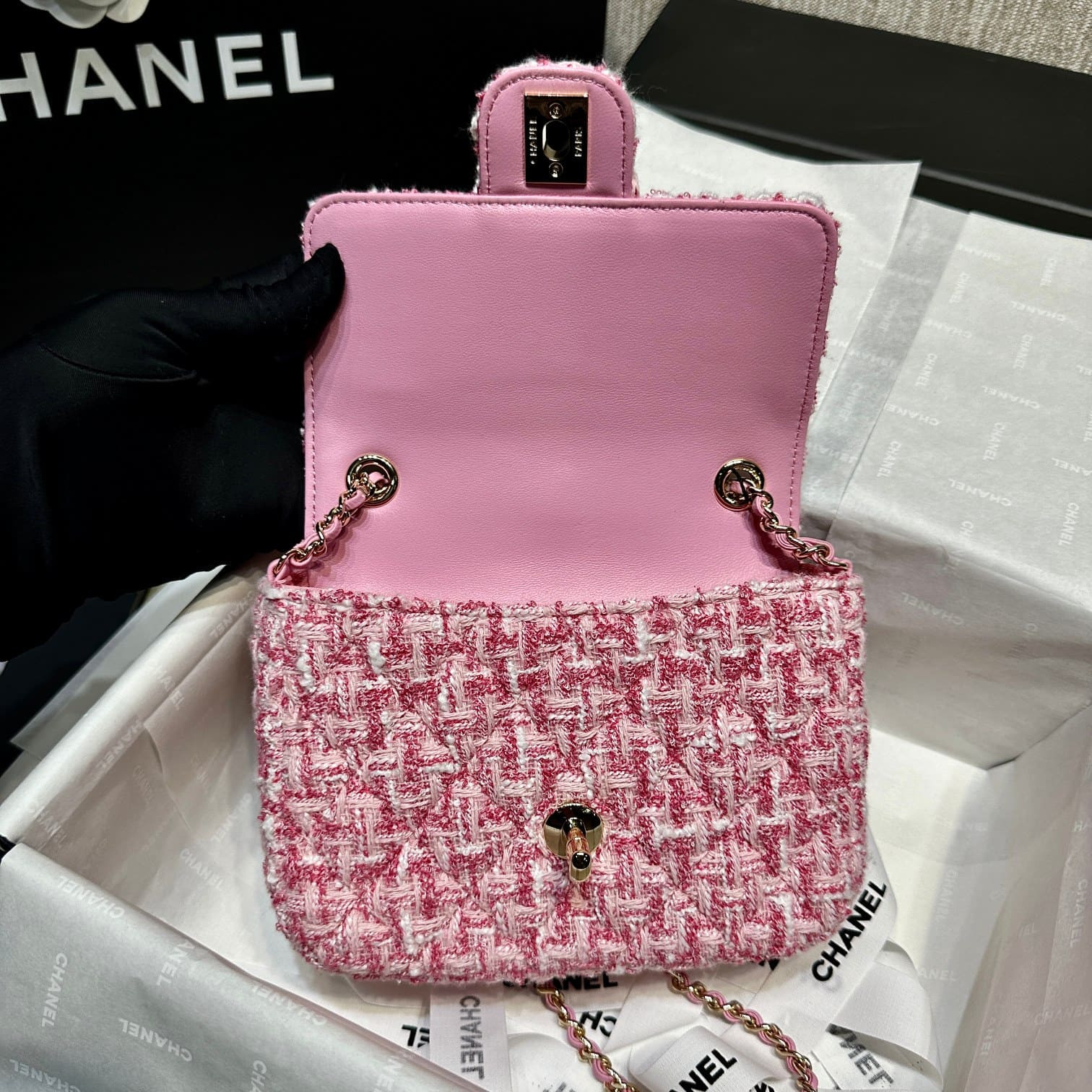 Chanel Mini Flap Bag in Pink Tweed AS3782