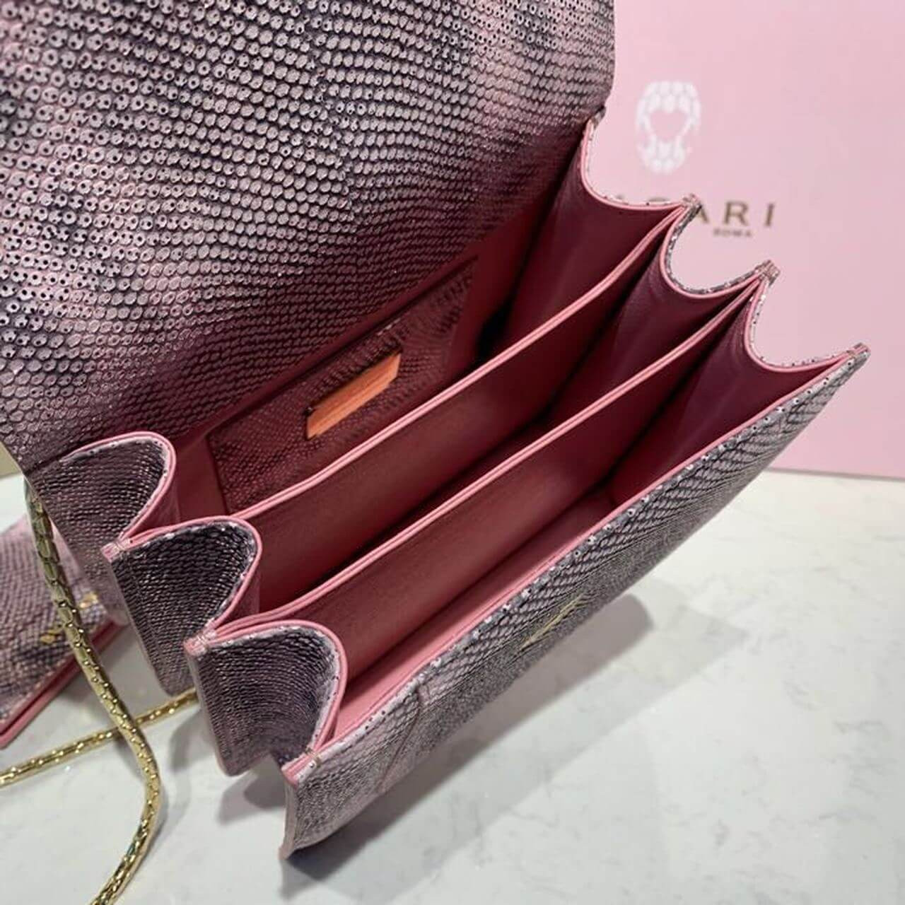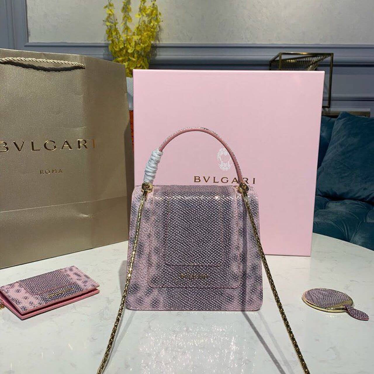 Bvlgari Serpenti Forever Crossbody Top Handle Bag 18cm in Karung Skin 284537 Pink