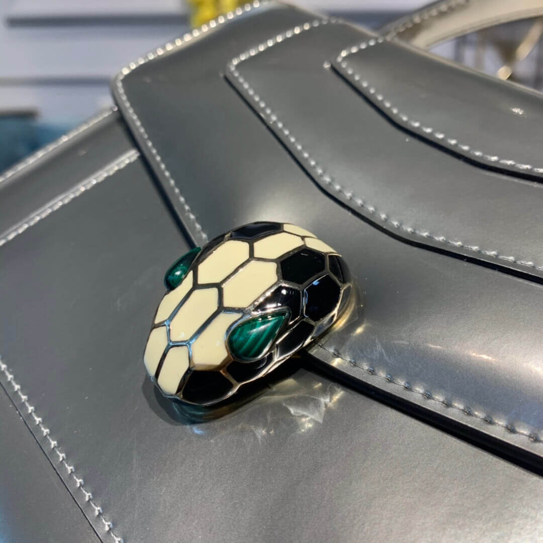 Bvlgari Serpenti Forever Crossbody Top Handle Bag 18cm in Silver Brushed Metallic 35106 284537