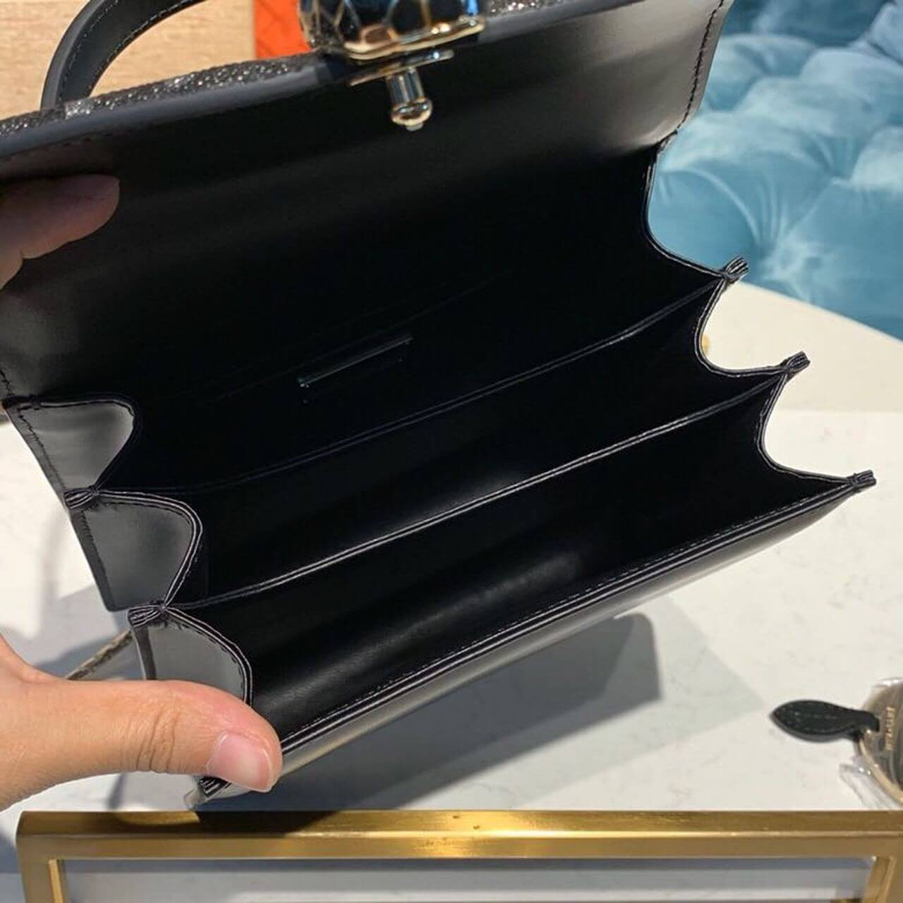 Bvlgari Serpenti Forever Crossbody Top Handle Bag 18cm in Charcoal Diamond Crystal Galuchat Skin 284537
