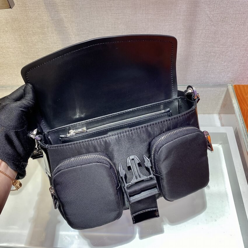 Prada Pocket Nylon And Brushed Leather Bag 1BD295