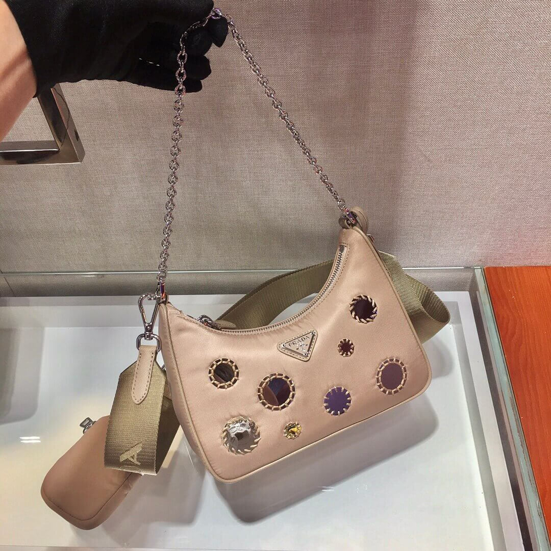 Prada Hobo Re Edition Embroidery Sequins Cross Body Bag 1BH204