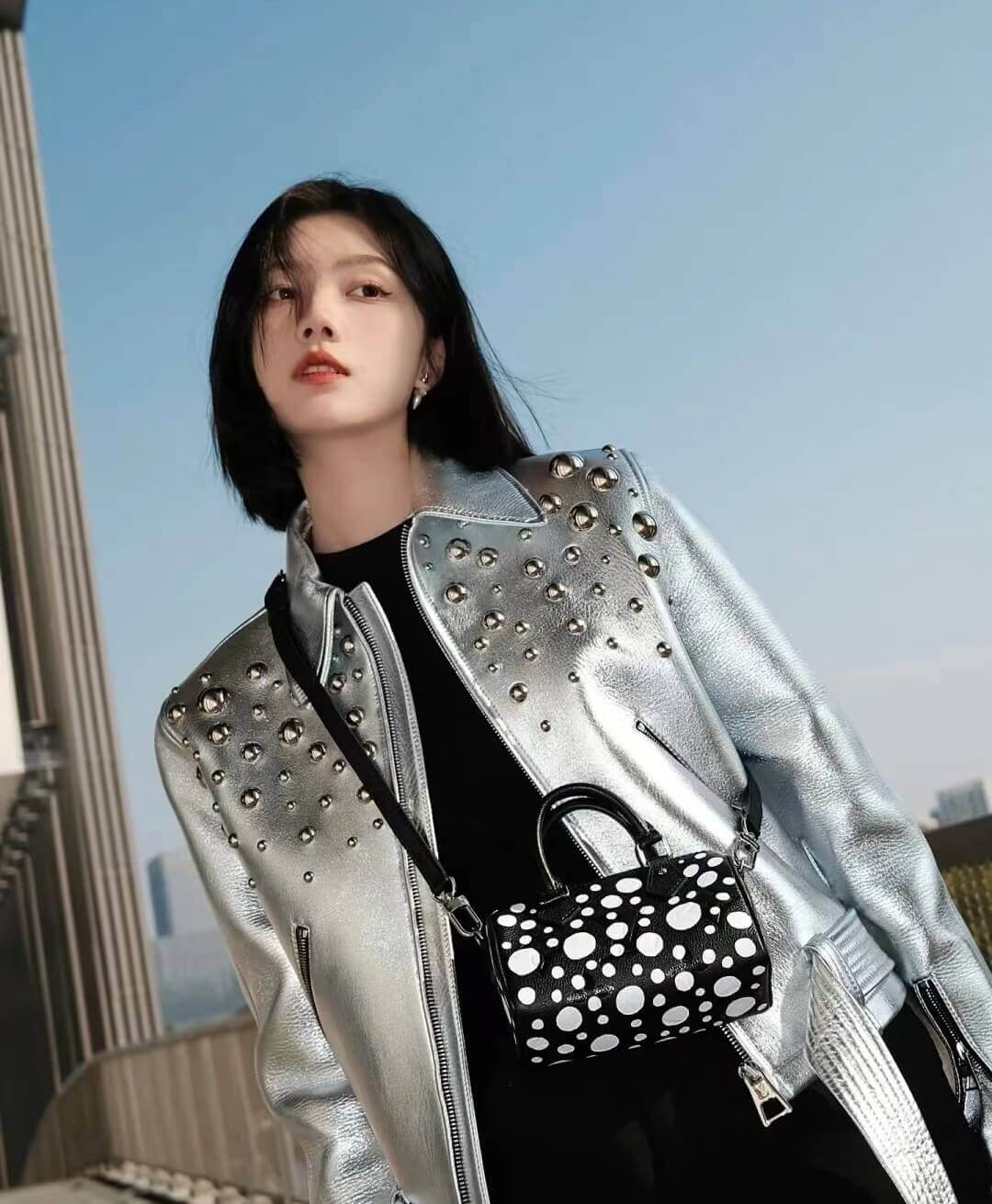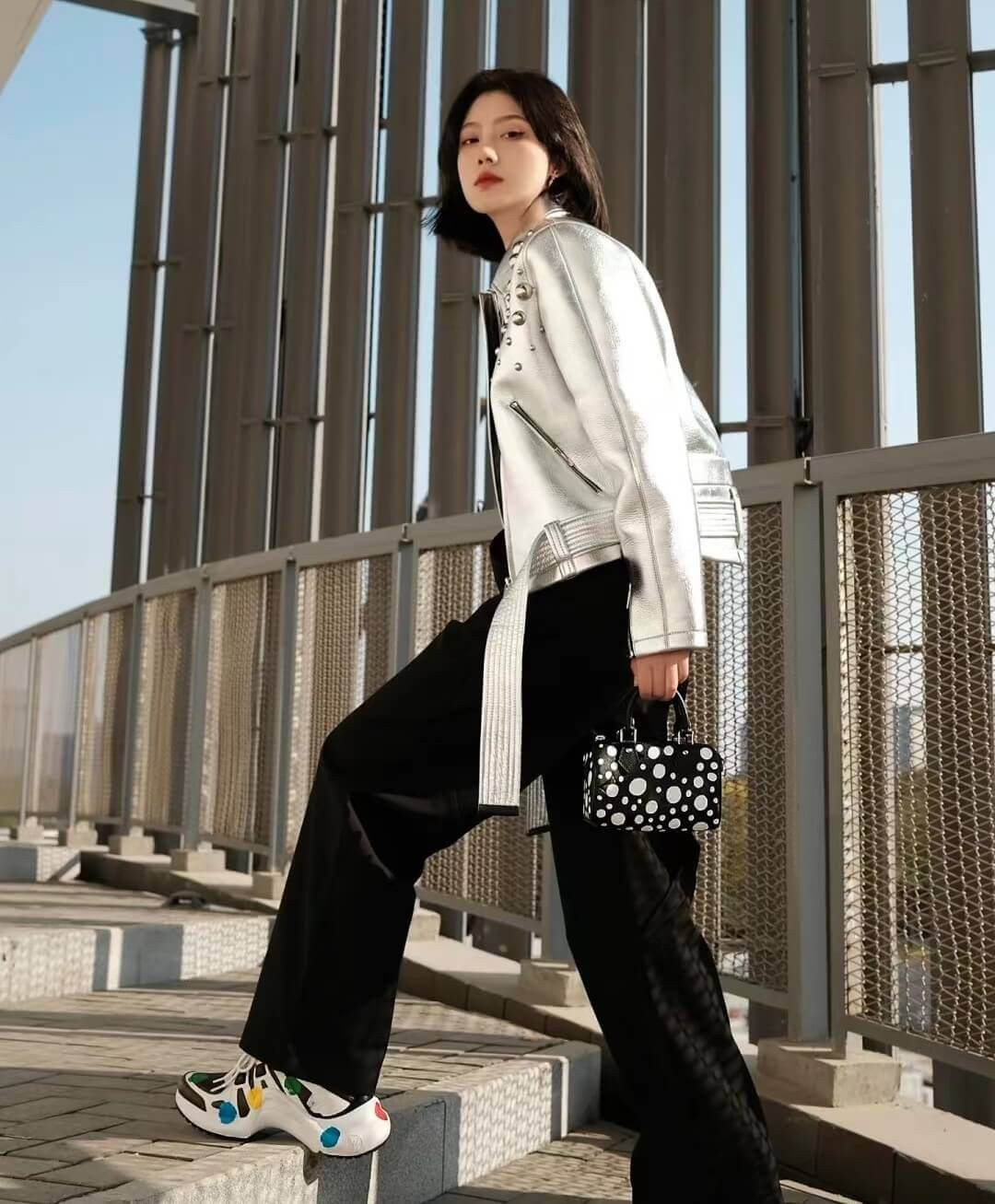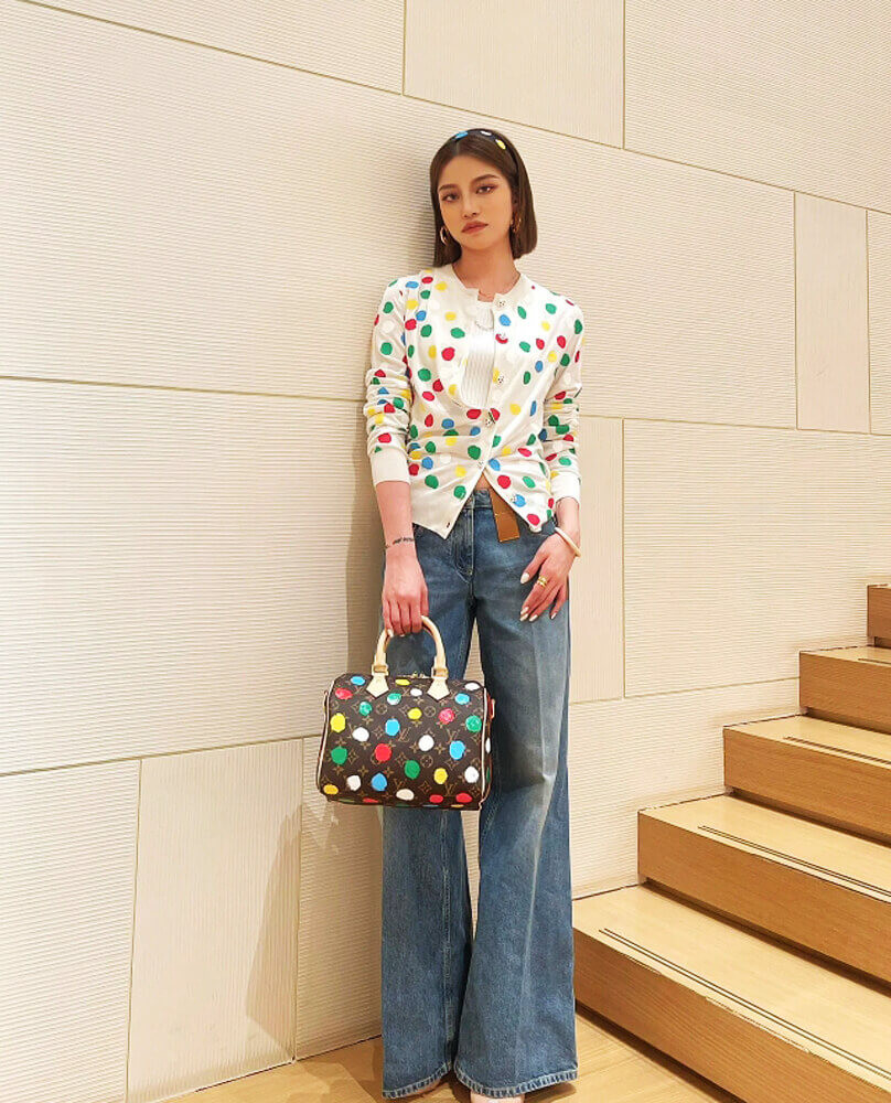 LV x YK Speedy Bandouliere 25 with 3D Painted Dots Print M46433
