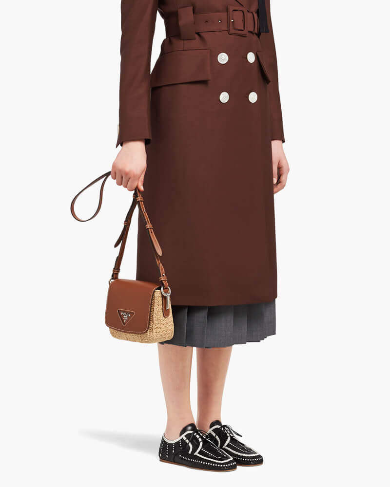 Prada Raffia and Leather Shoulder Bag 1BD243