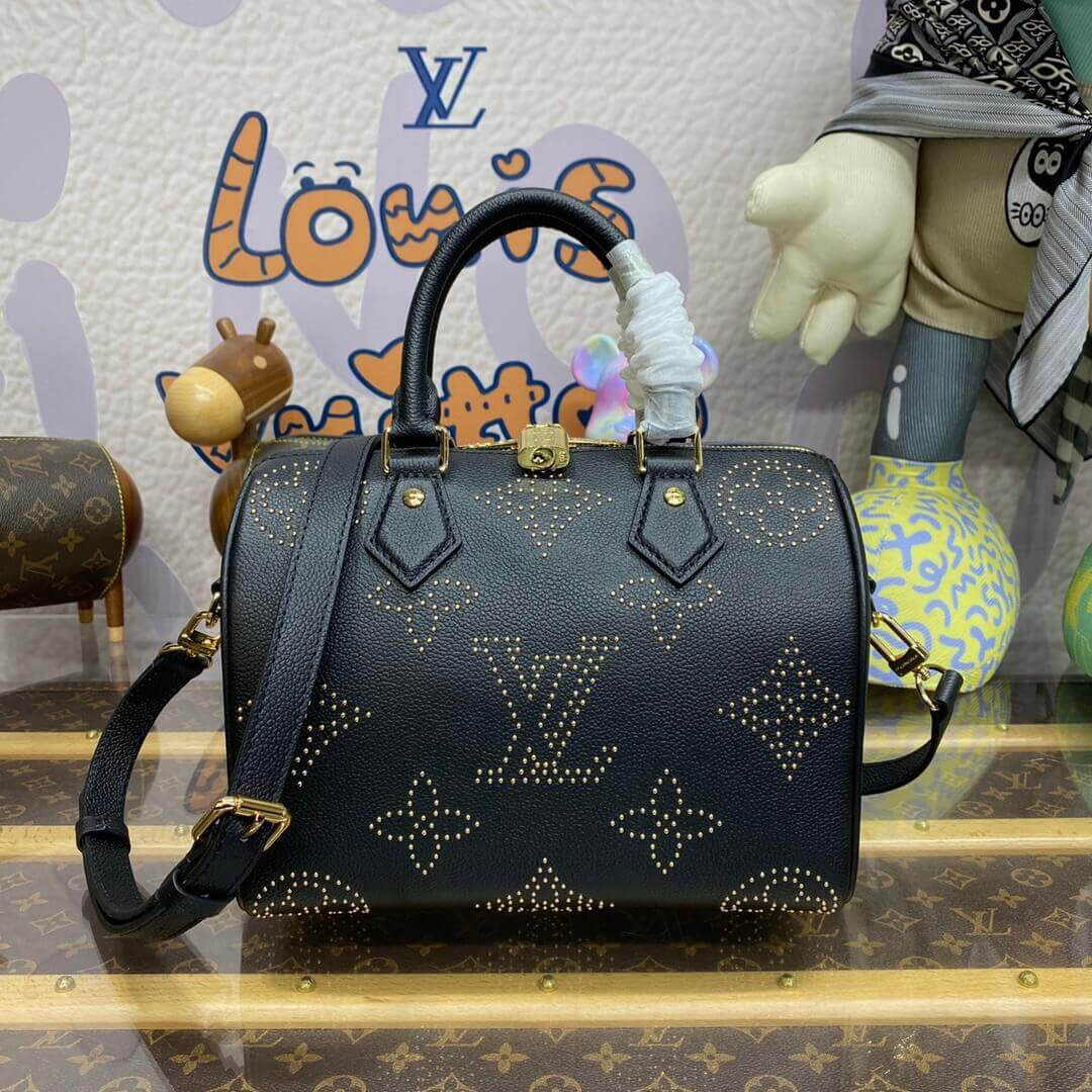 Louis Vuitton Speedy Bandouliere 25 M46736 Black Monogram Empreinte With Studs