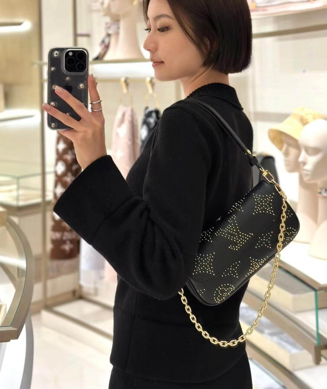Louis Vuitton Wallet on Chain Ivy Bag M82653 Black Monogram Empreinte With Studs
