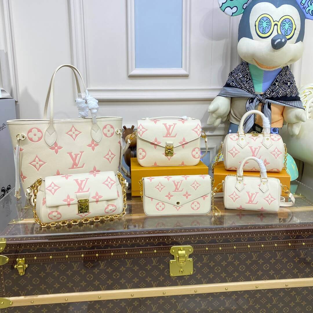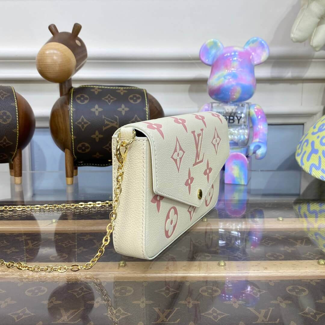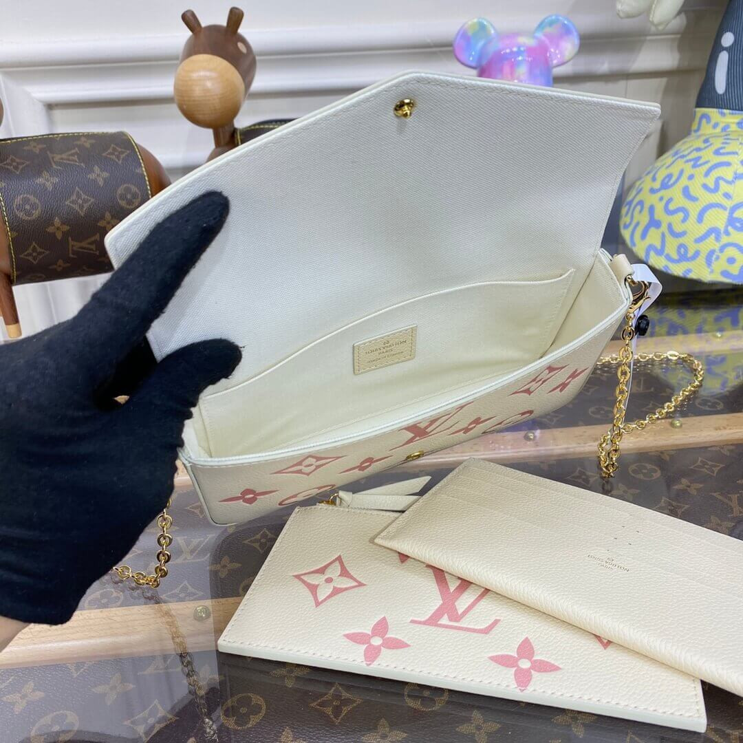 Louis Vuitton Monogram Empreinte Leather Pochette Felicie M82047 Creme/Pink
