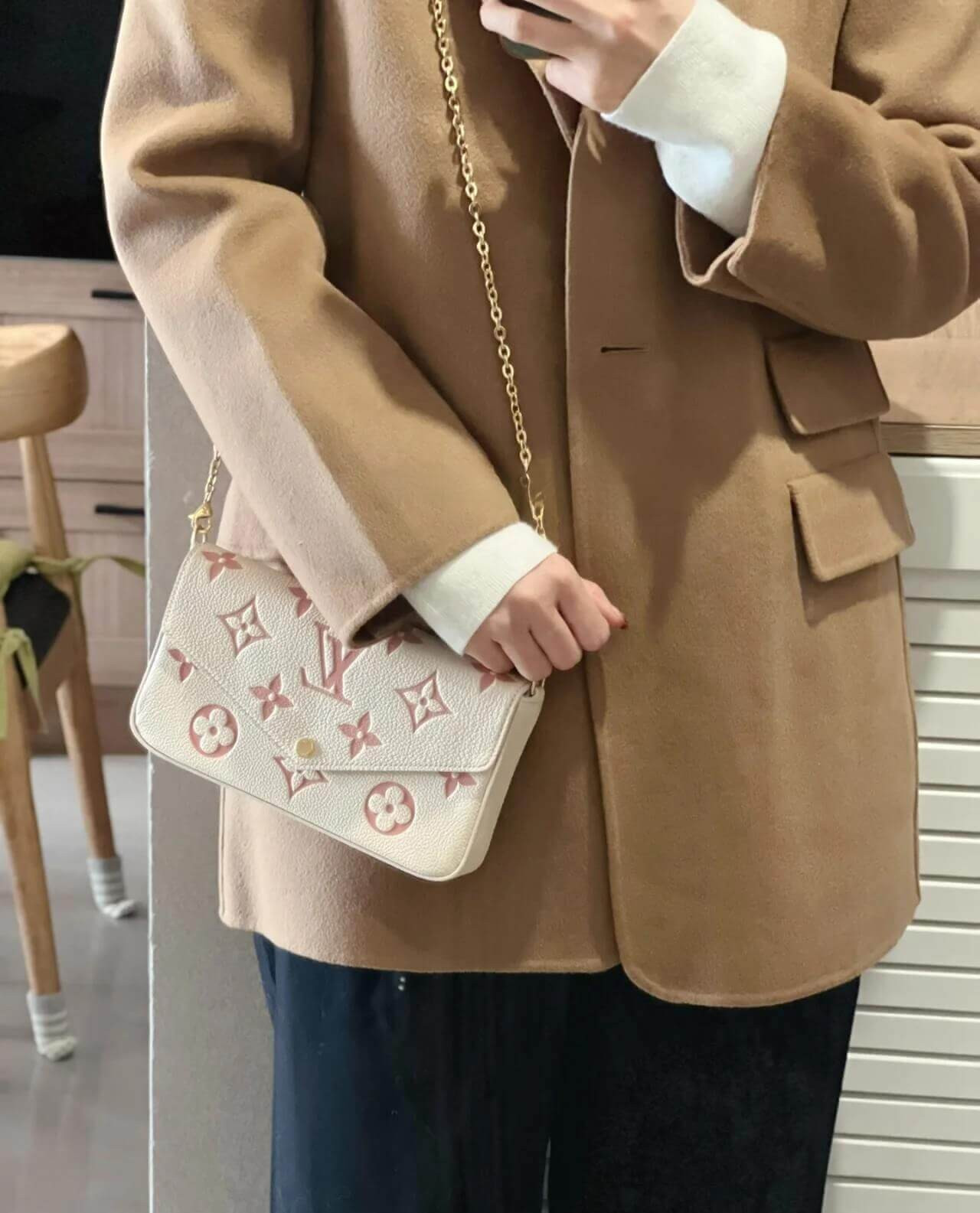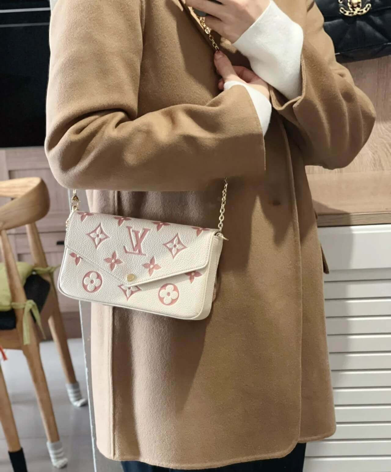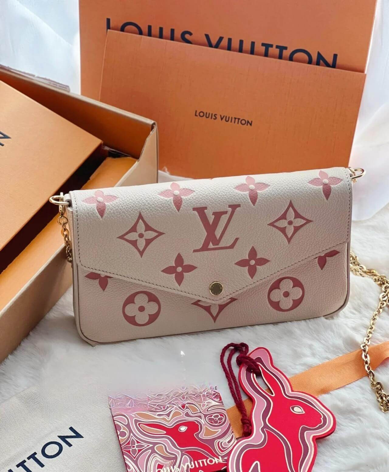 Louis Vuitton Monogram Empreinte Leather Pochette Felicie M82047 Creme/Pink