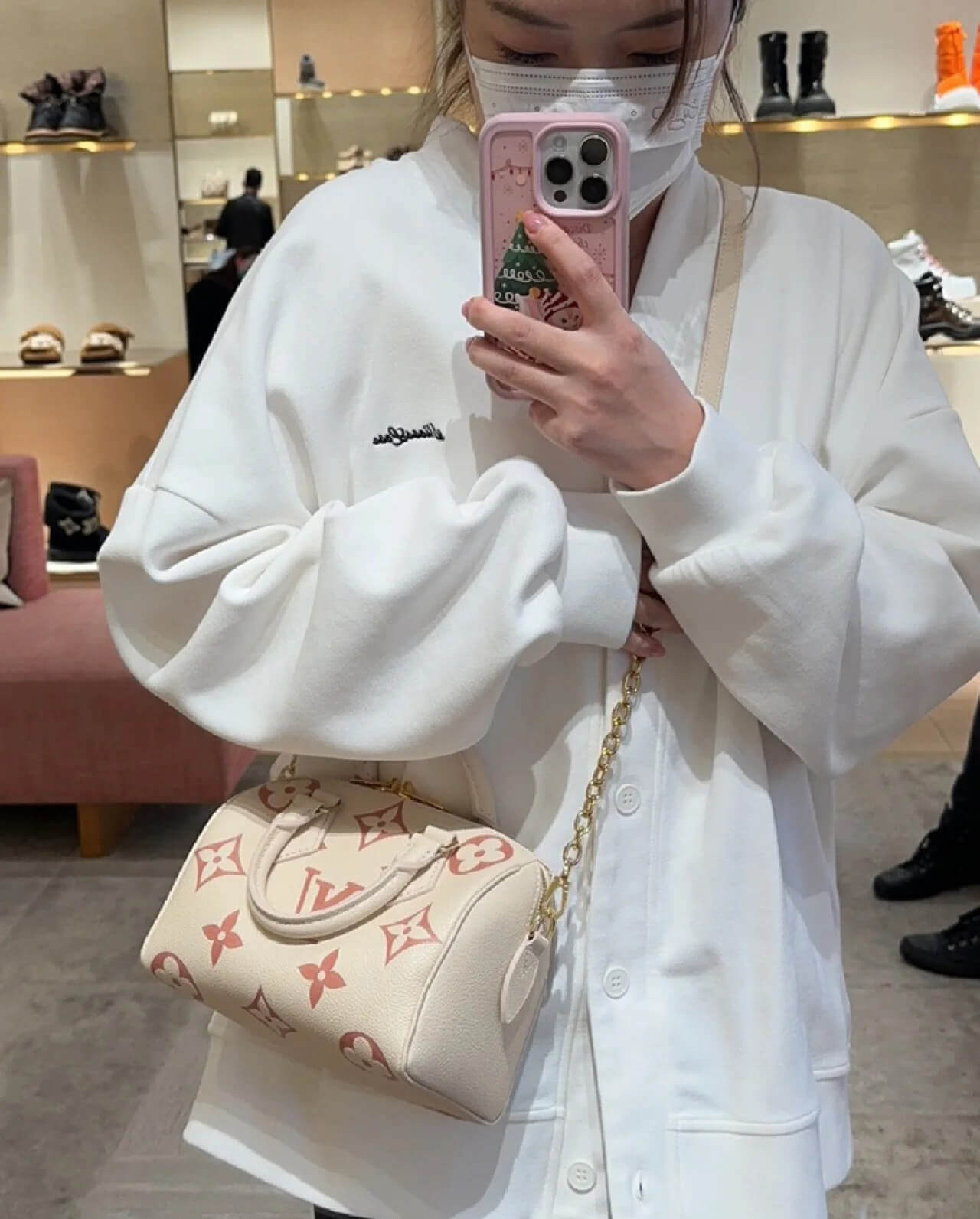 Louis Vuitton Monogram Empreinte Leather Speedy Bandouliere 20 Bag M46397 Creme/Pink