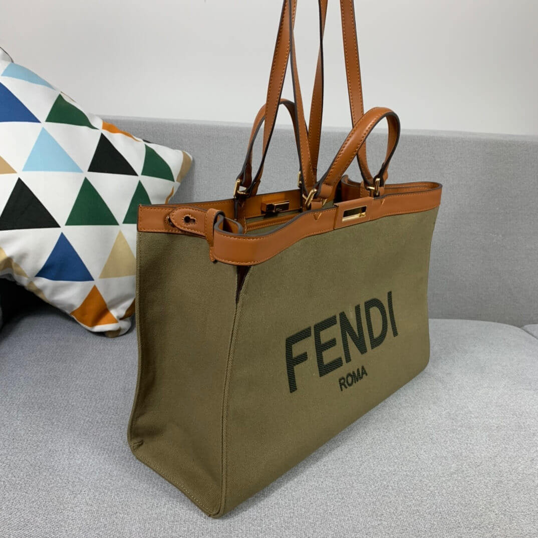 Fendi Peekaboo X Tote in Green Canvas 8BH374