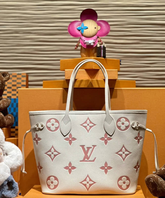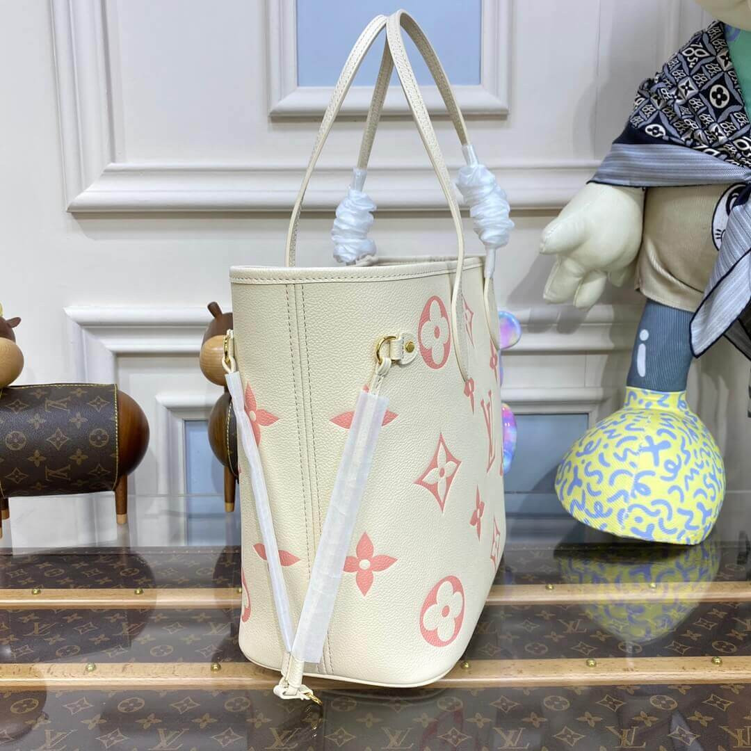 Louis Vuitton Monogram Empreinte Leather Neverfull MM M21579 Creme/Pink