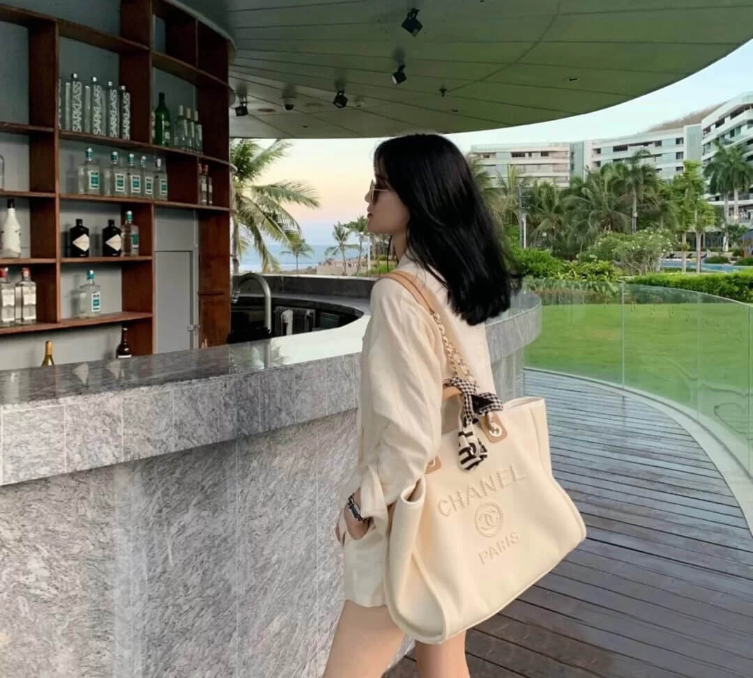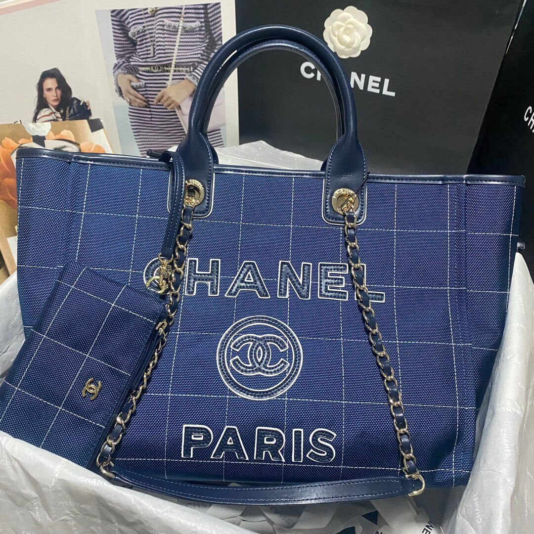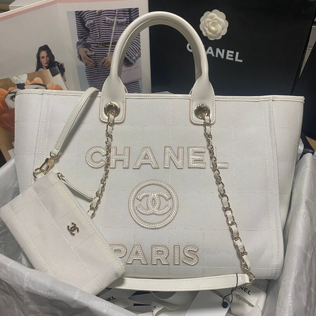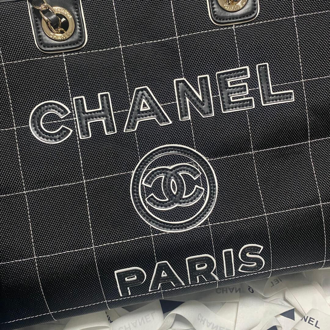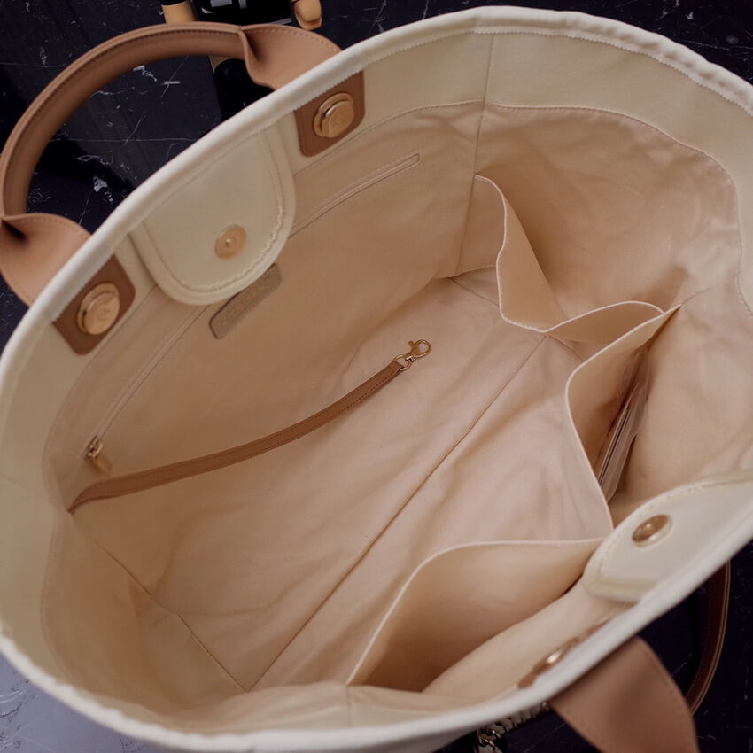 Chanel Deauville Cotton & Calfskin Large Shopping Bag AS93786