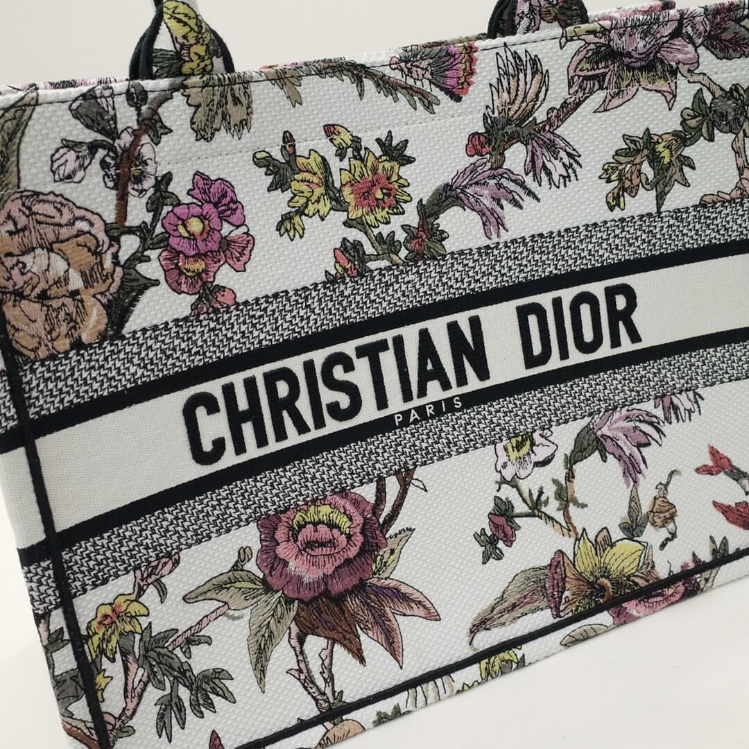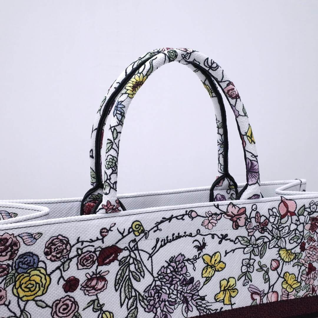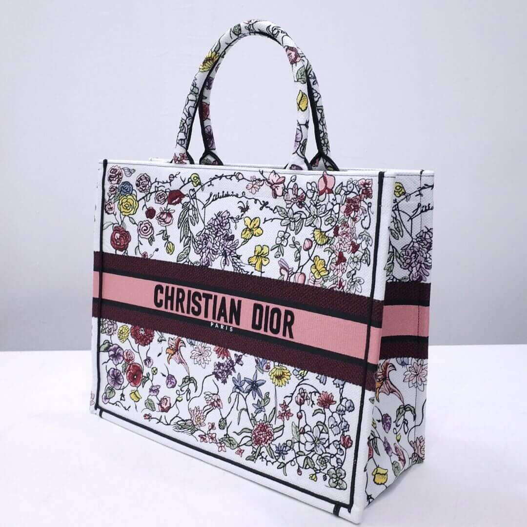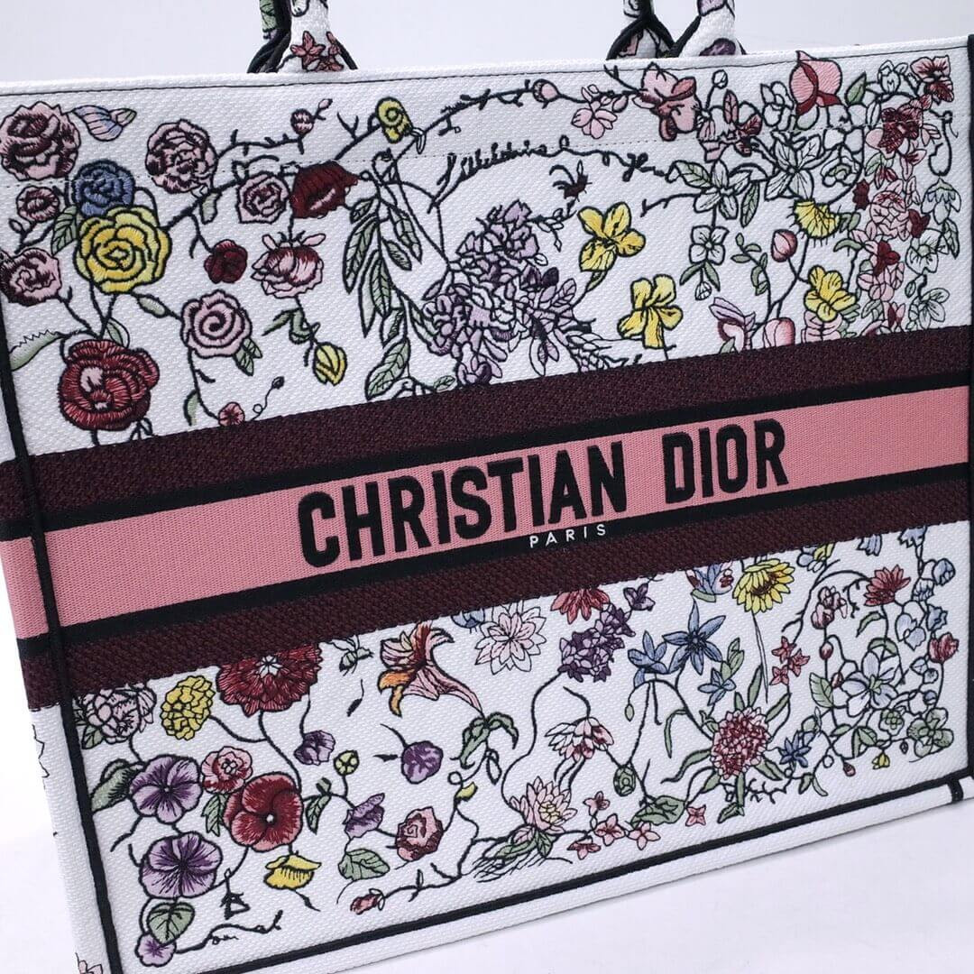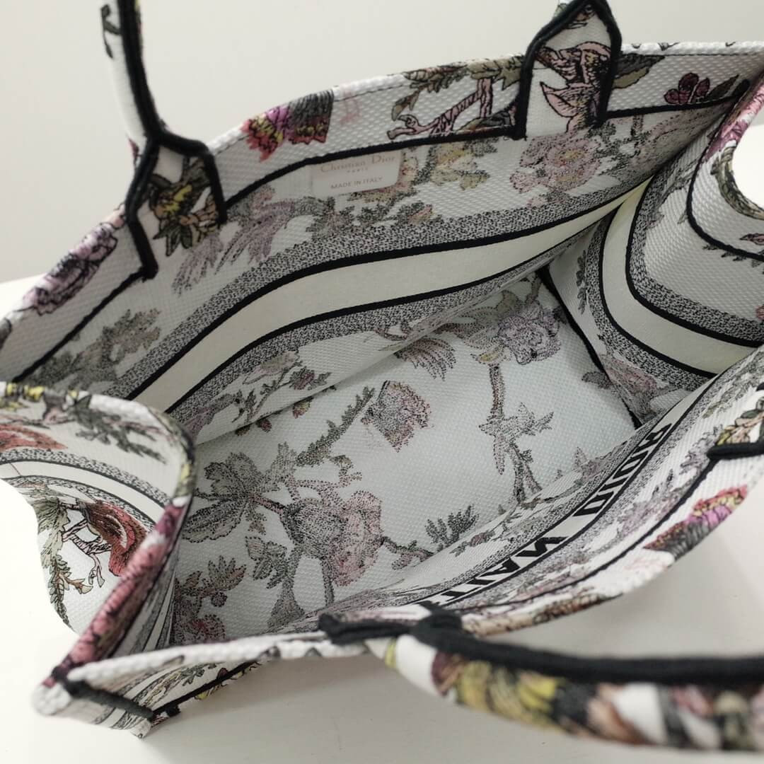 Christian Dior Book Tote White Multicolor Florilegio Embroidery