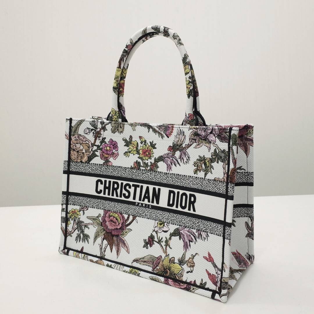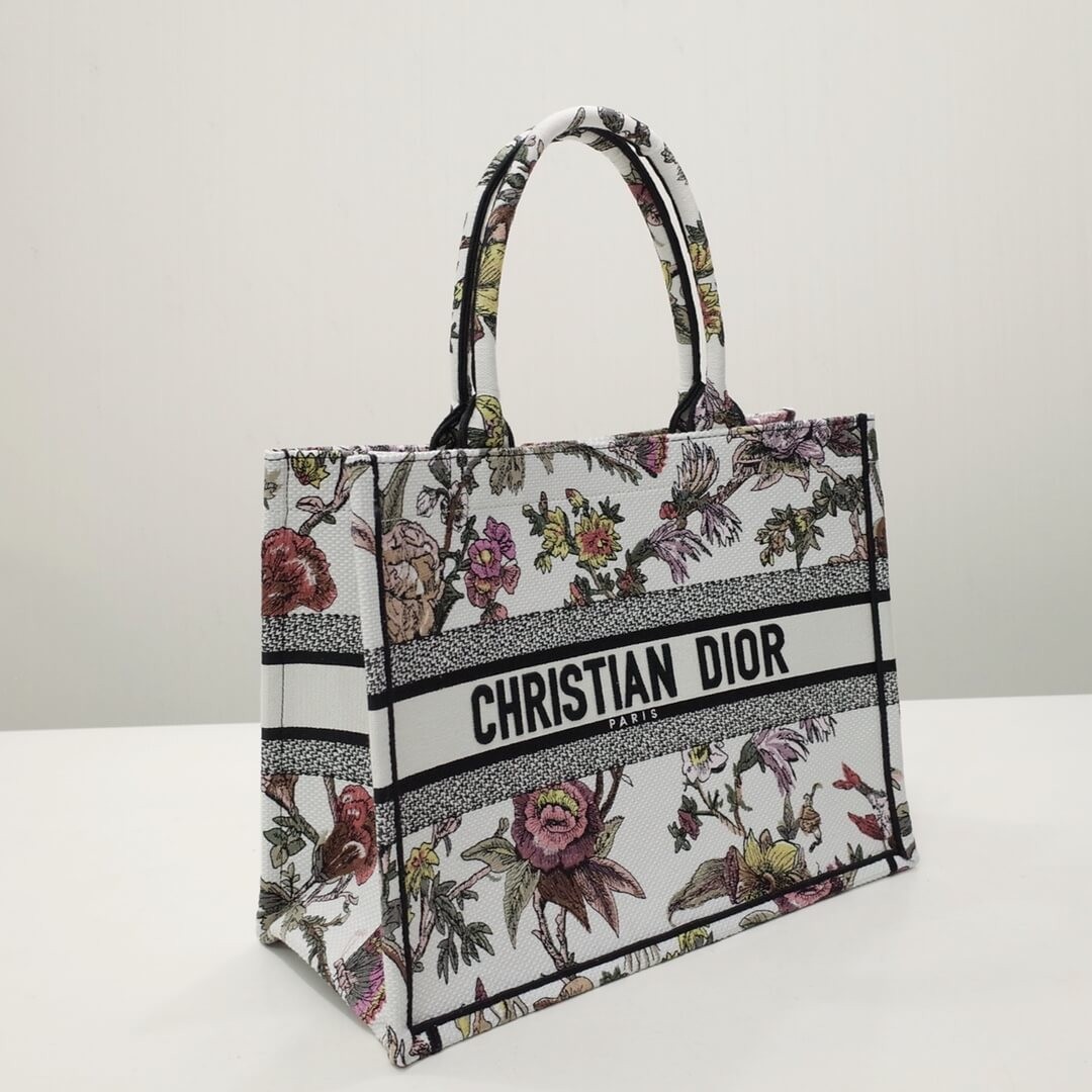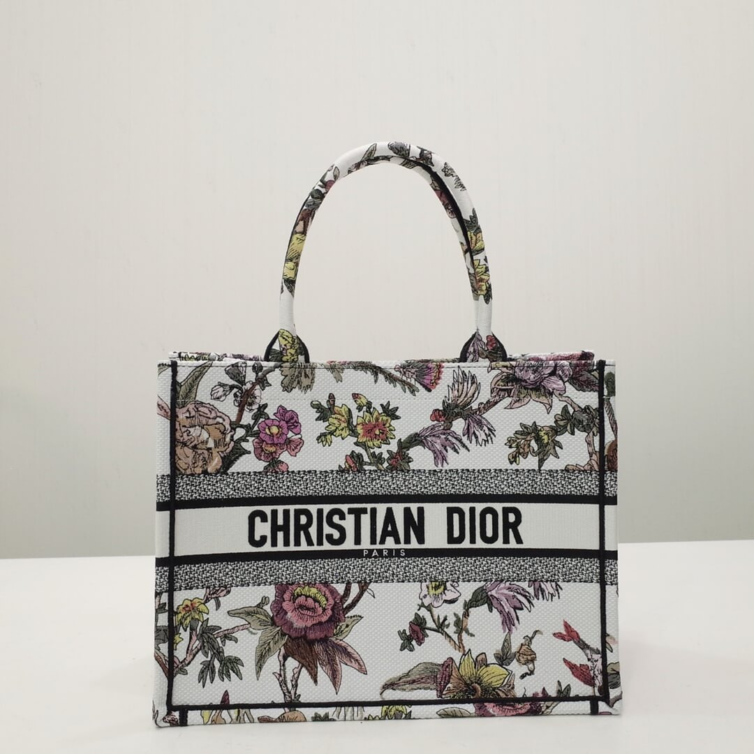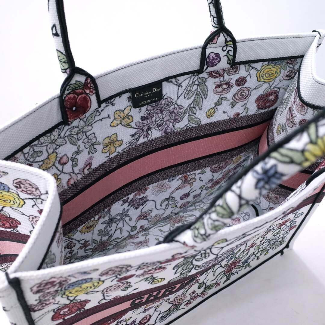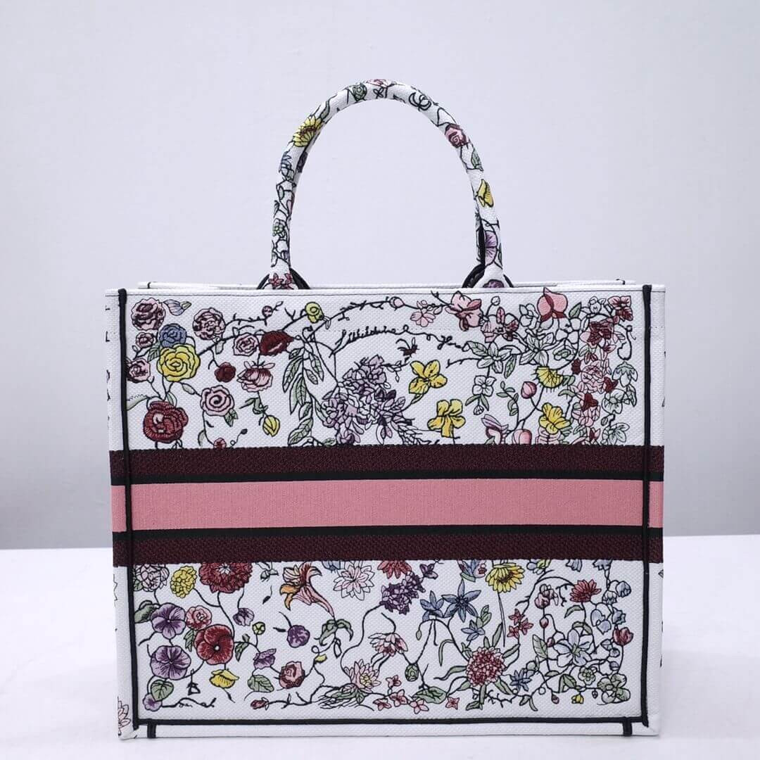 Christian Dior Book Tote White Multicolor Florilegio Embroidery