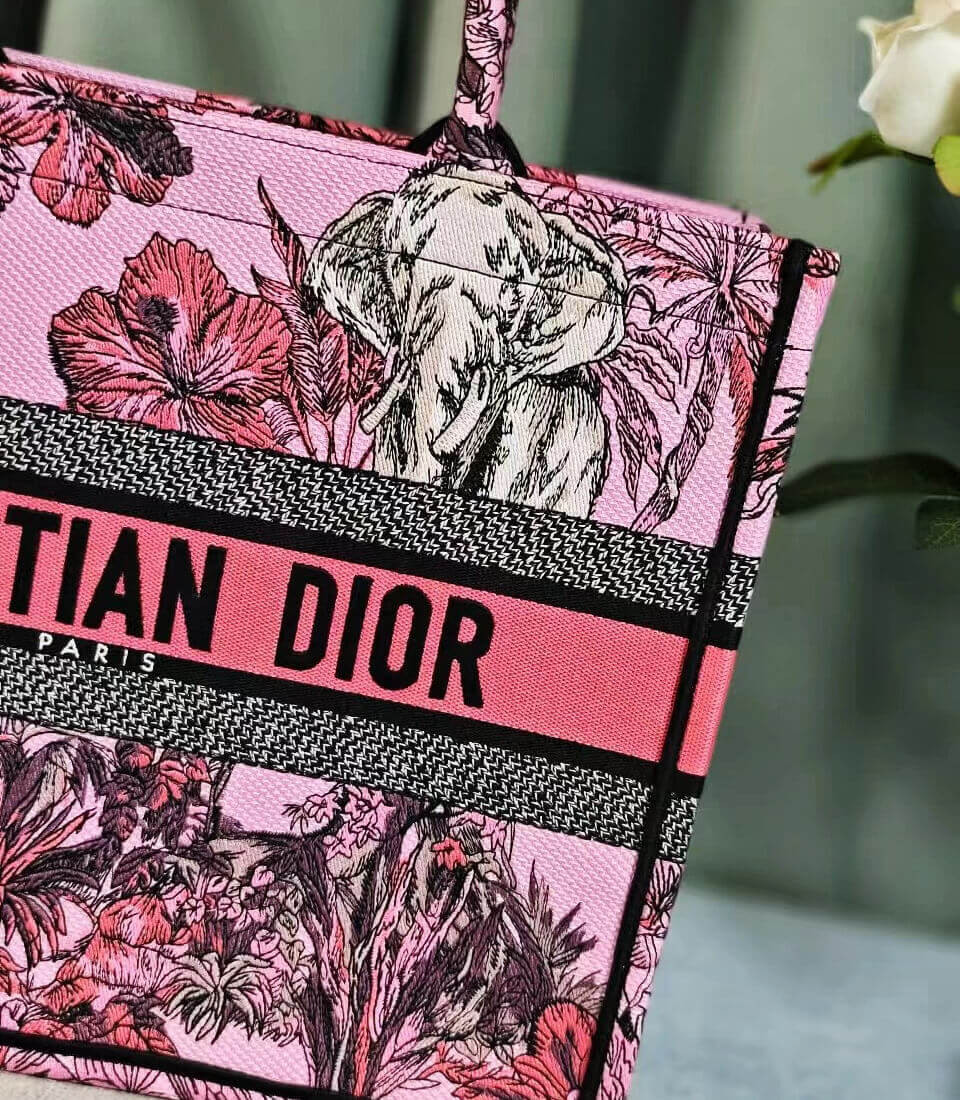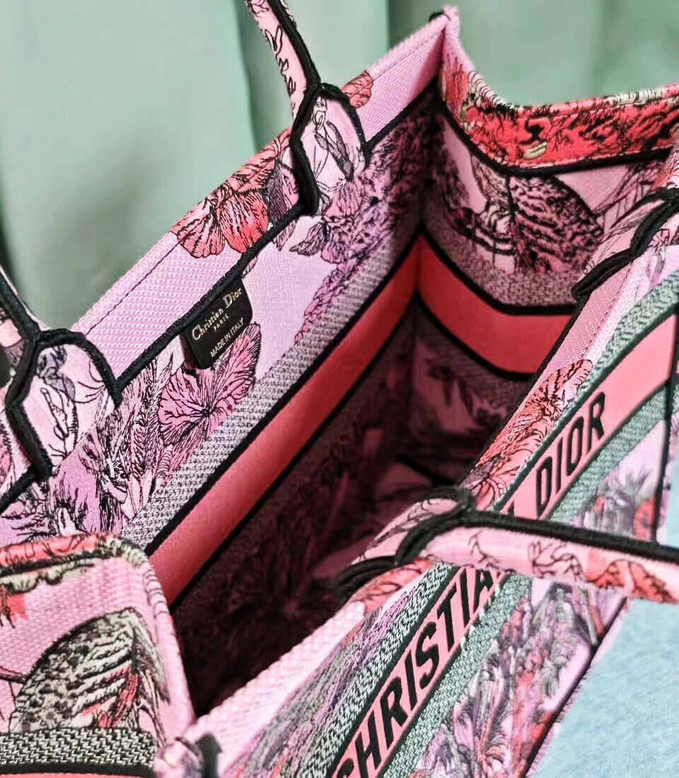 Christian Dior Book Tote Powder Pink Jardin Botanique Embroidery