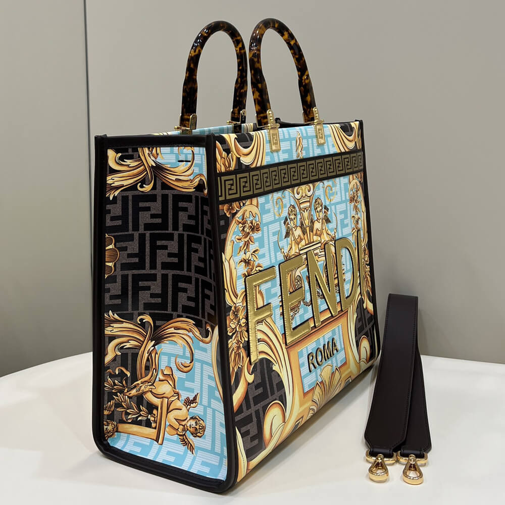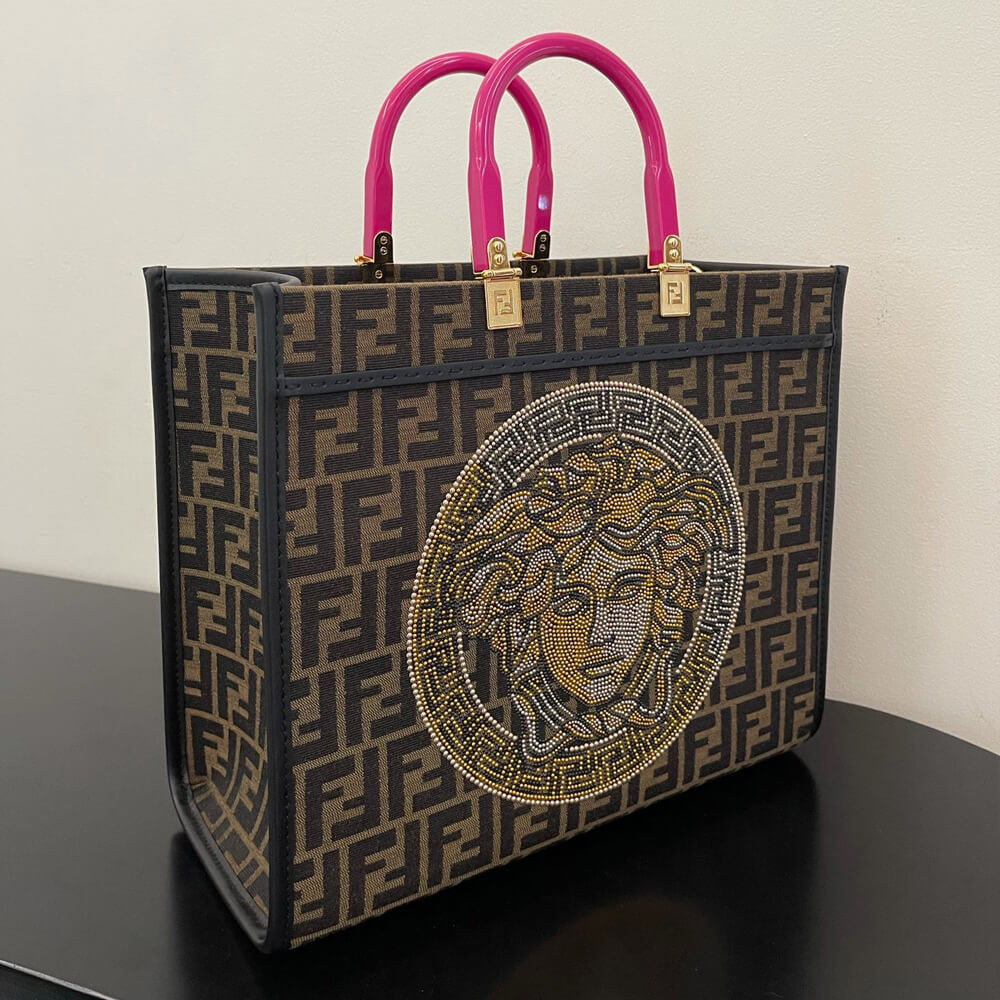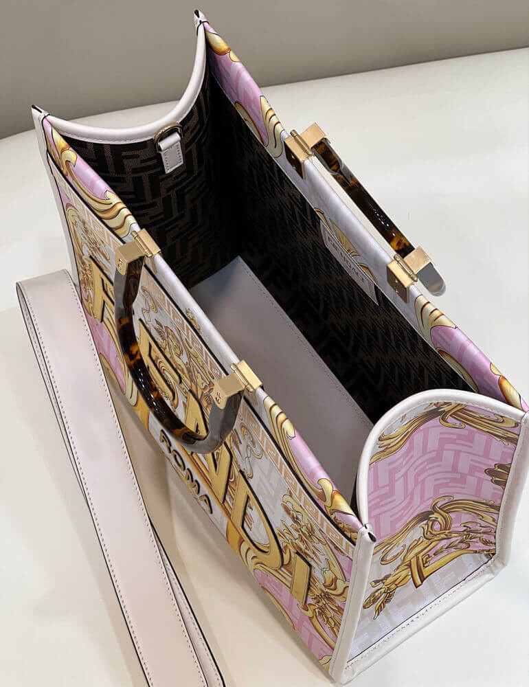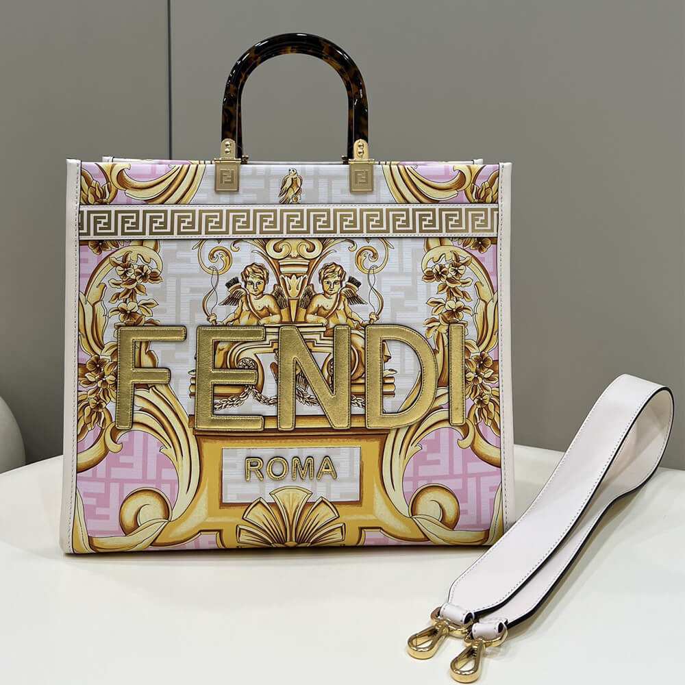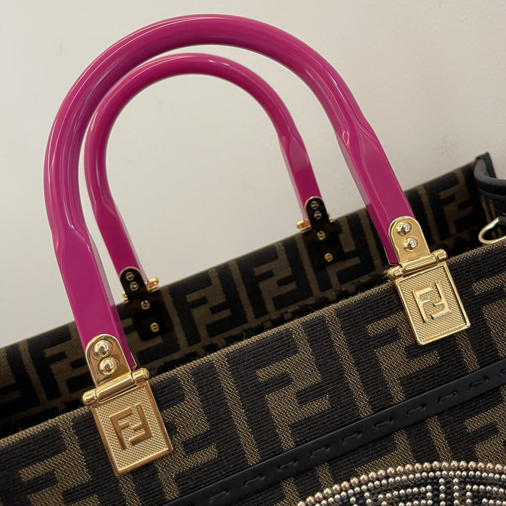 Fendi Medium Sunshine Shopper 8BH386 FF Glazed Fabric