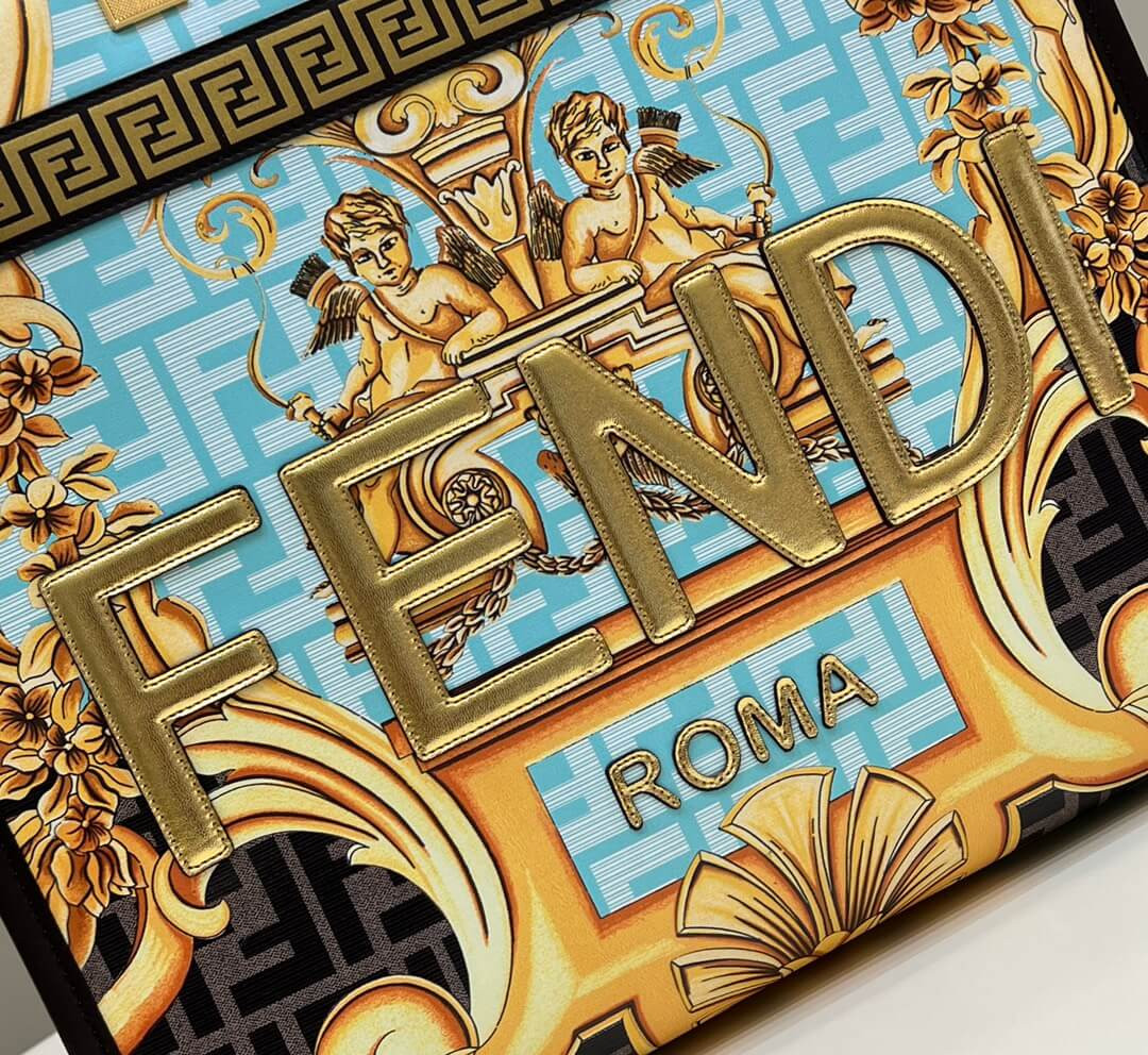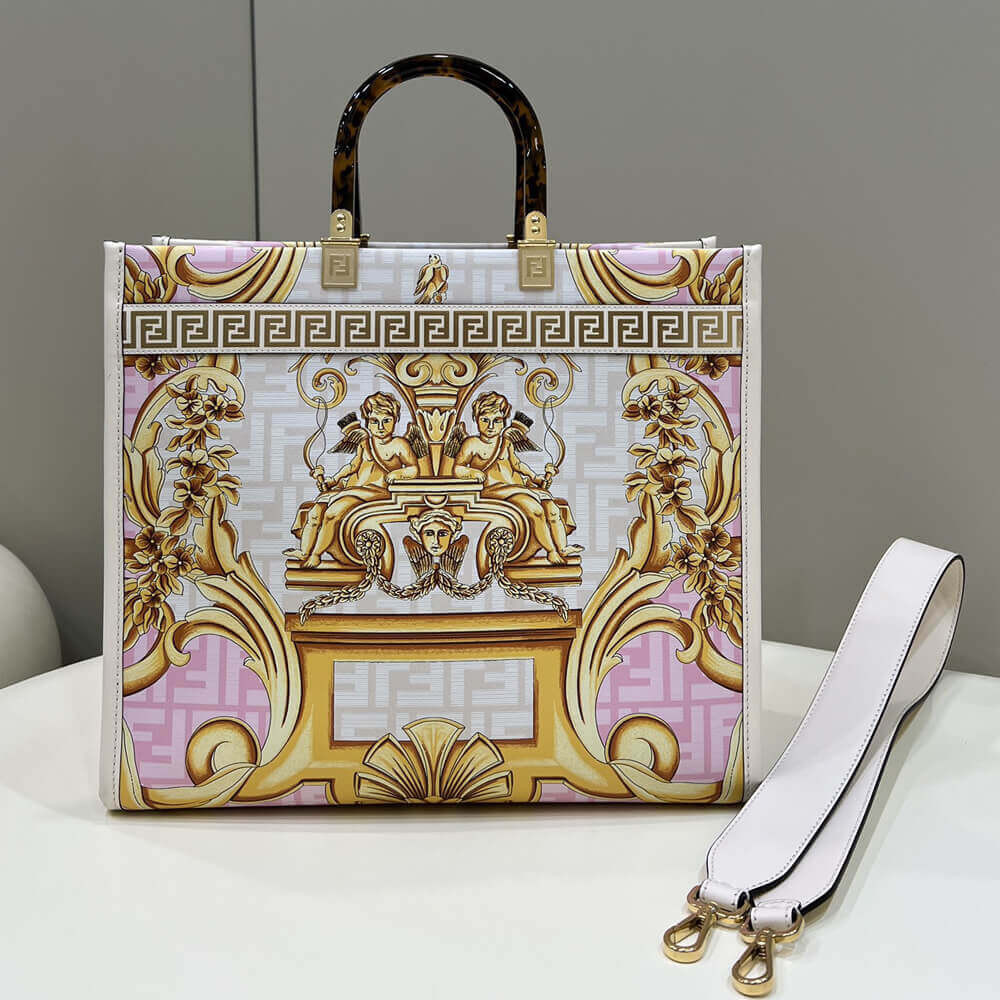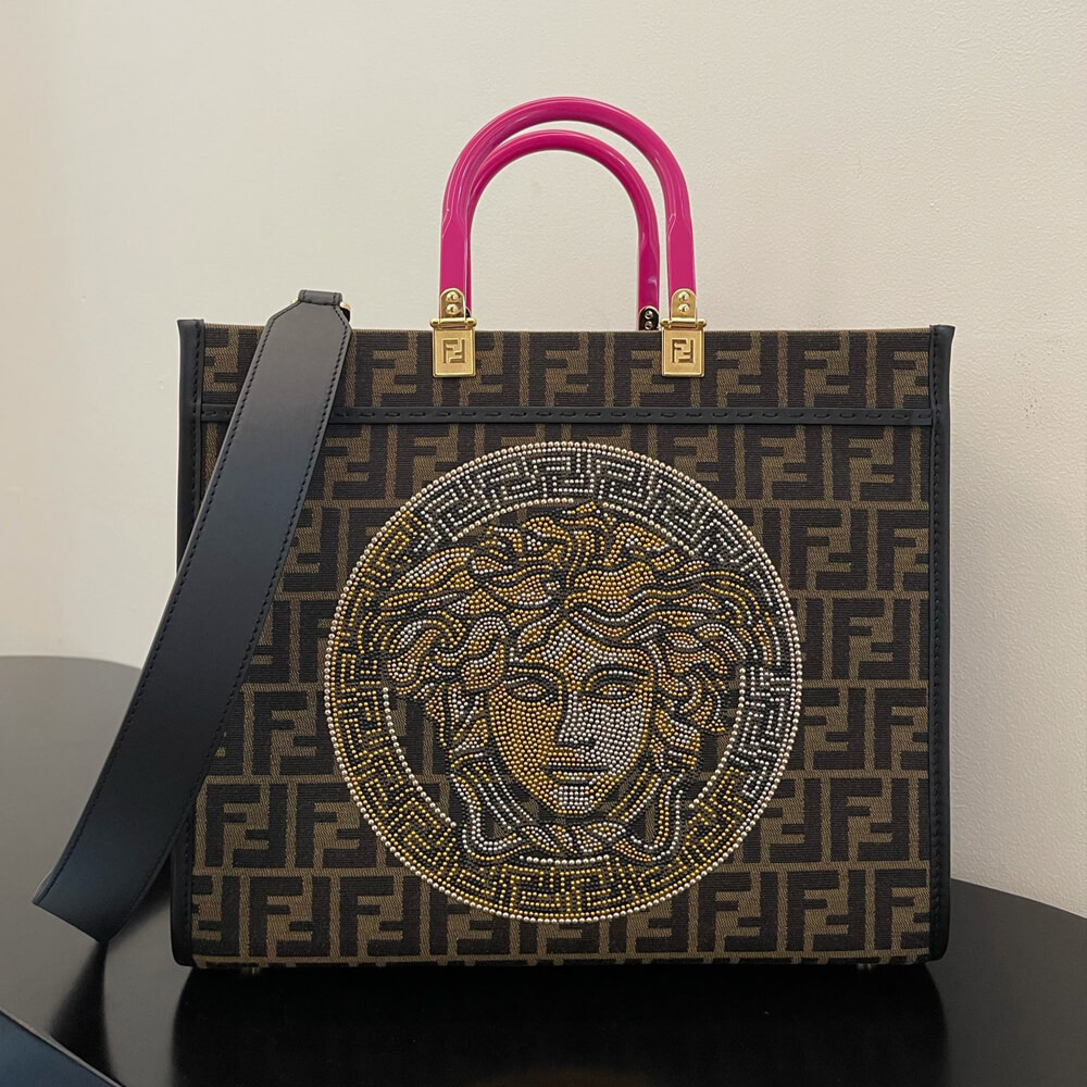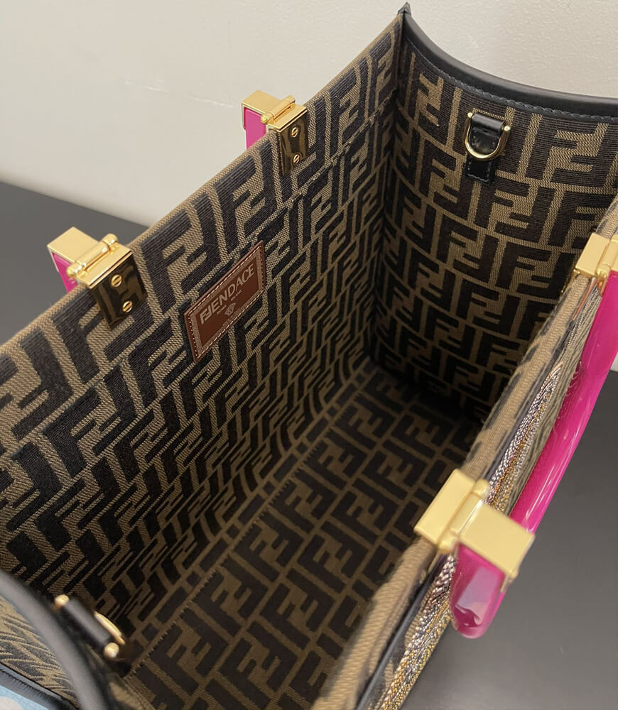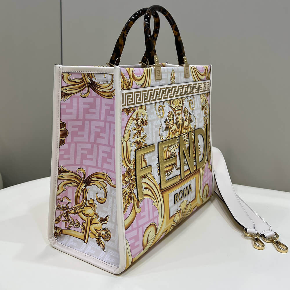 Fendi Medium Sunshine Shopper 8BH386 FF Glazed Fabric