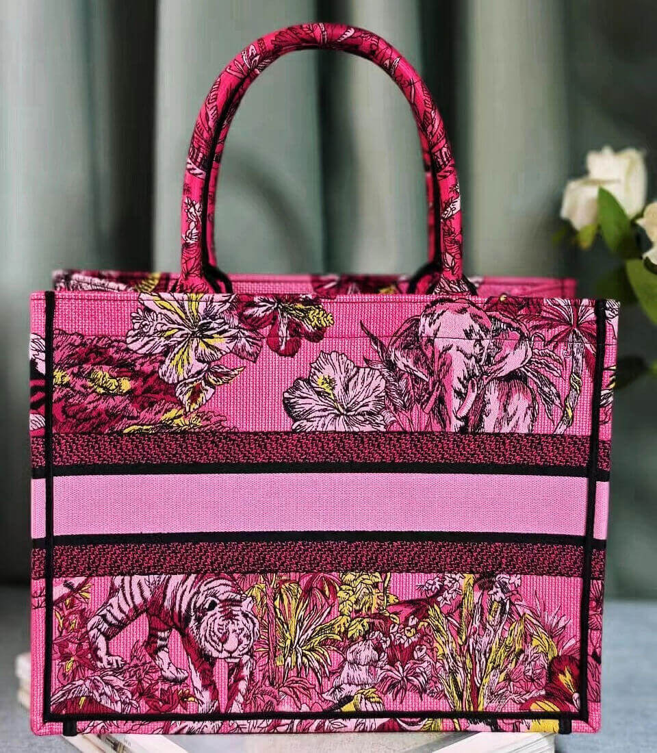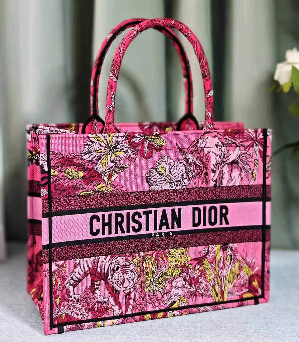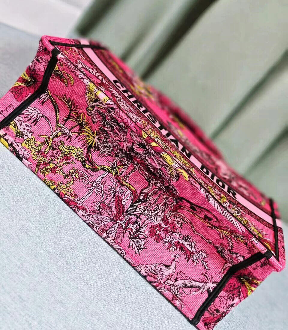 Christian Dior Book Tote Fuchsia Multicolor Toile De Jouy Voyage Embroidery