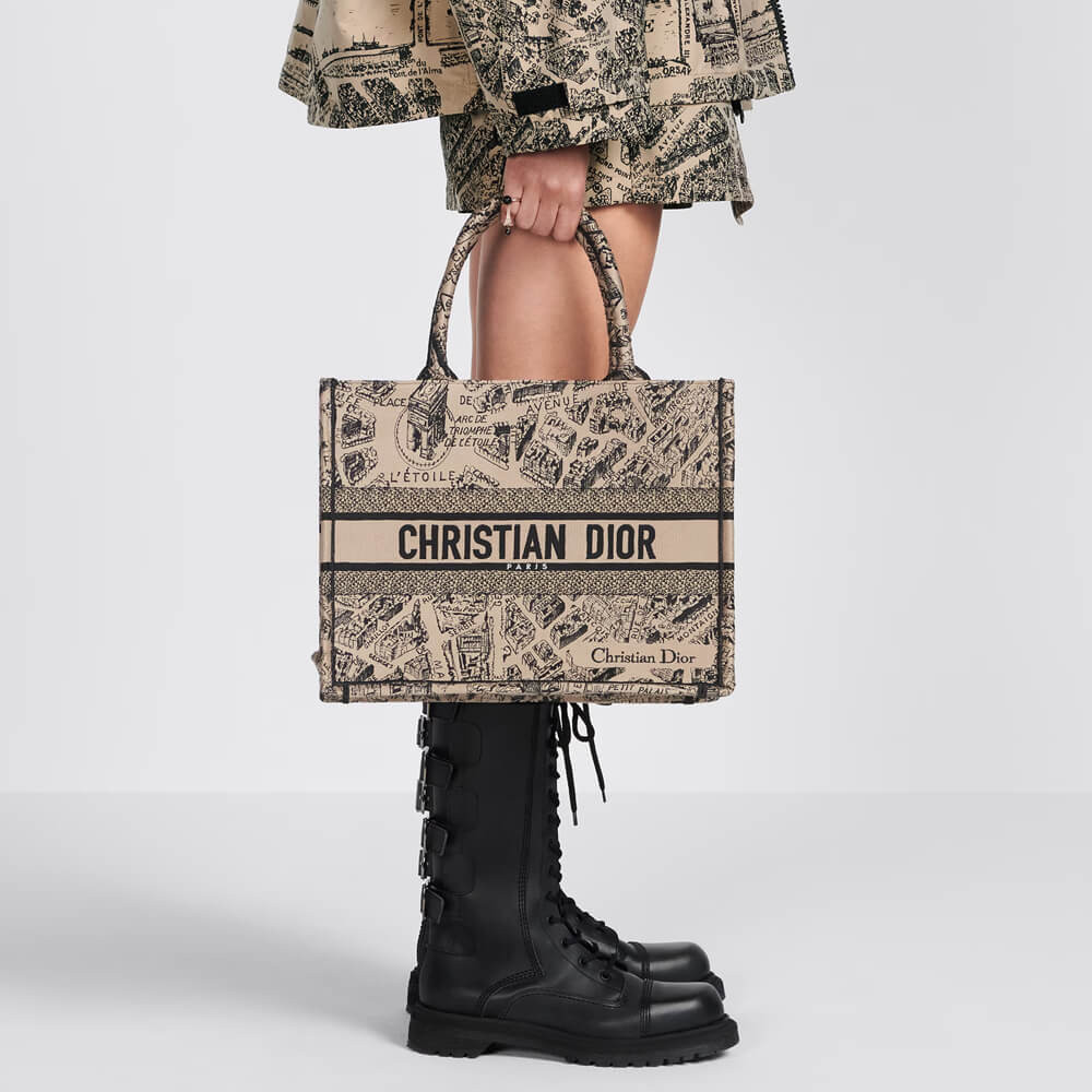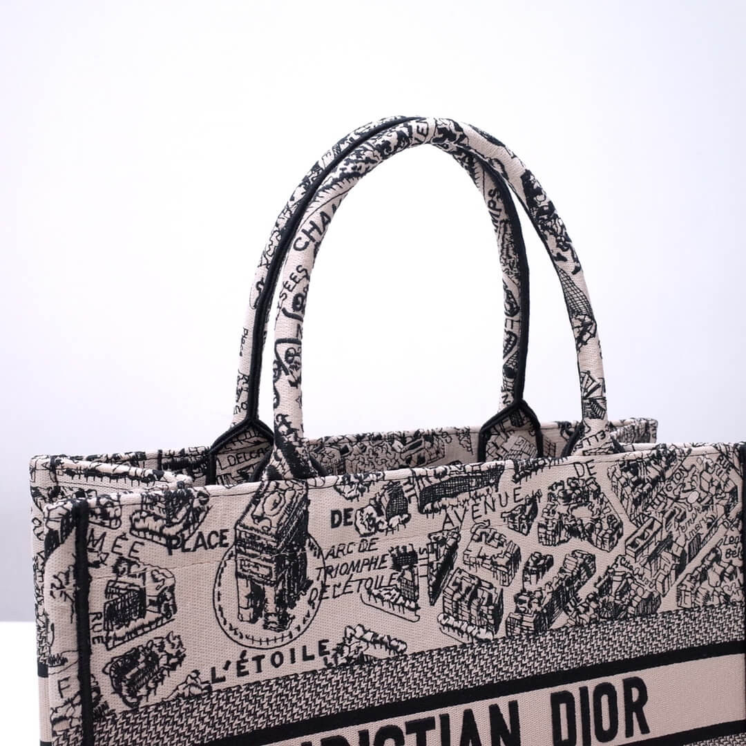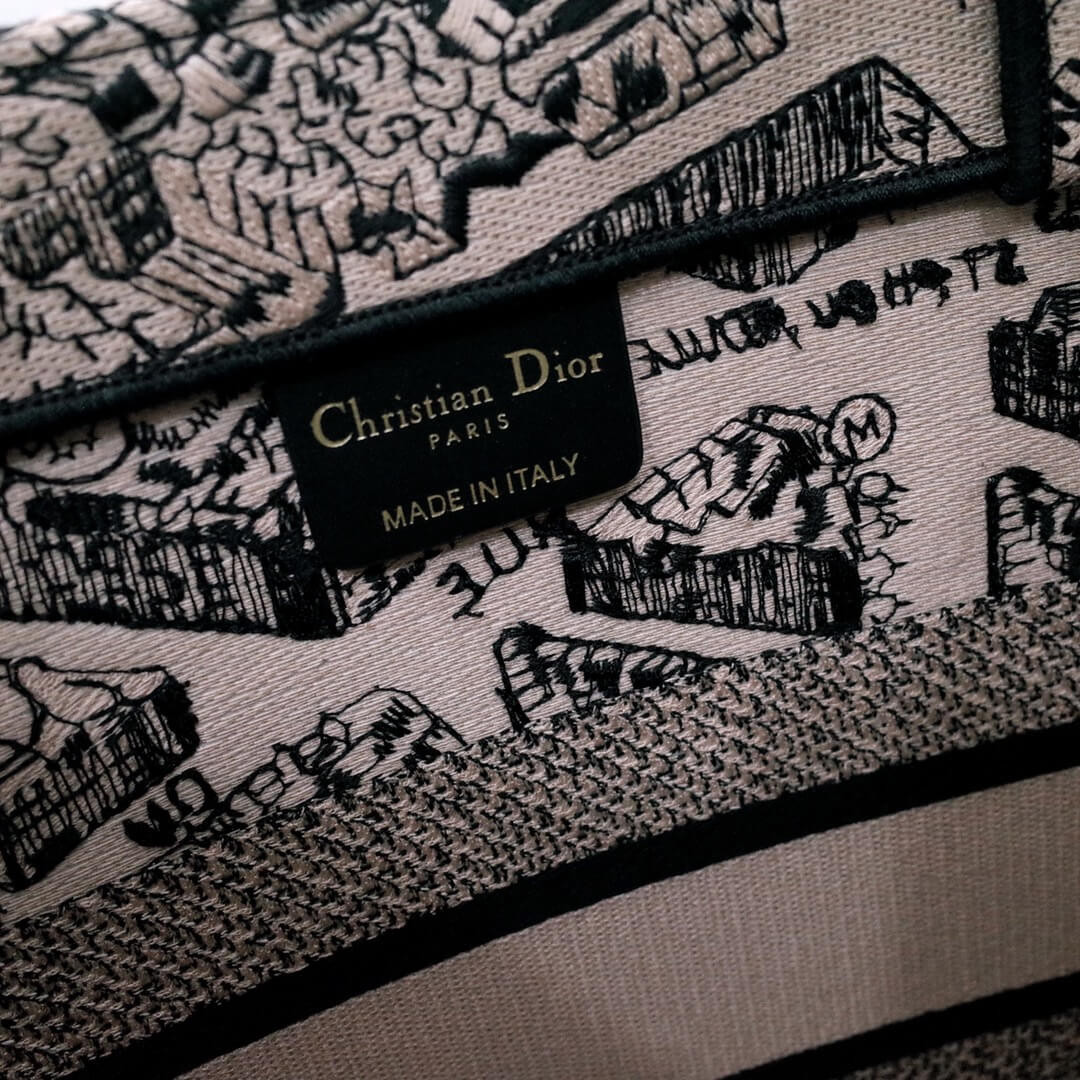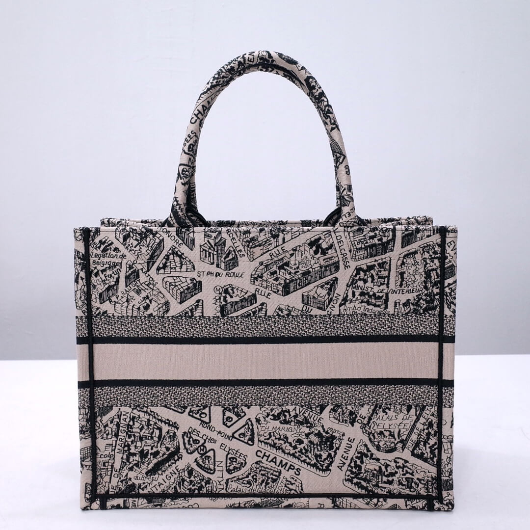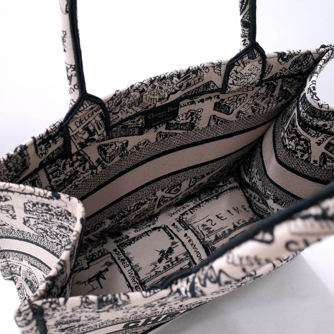 Christian Dior Book Tote Beige and Black Plan de Paris Embroidery