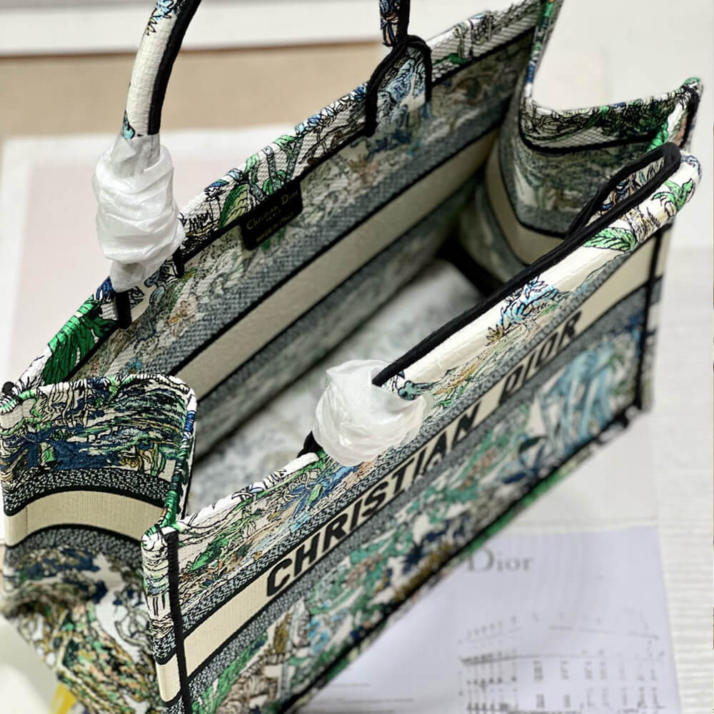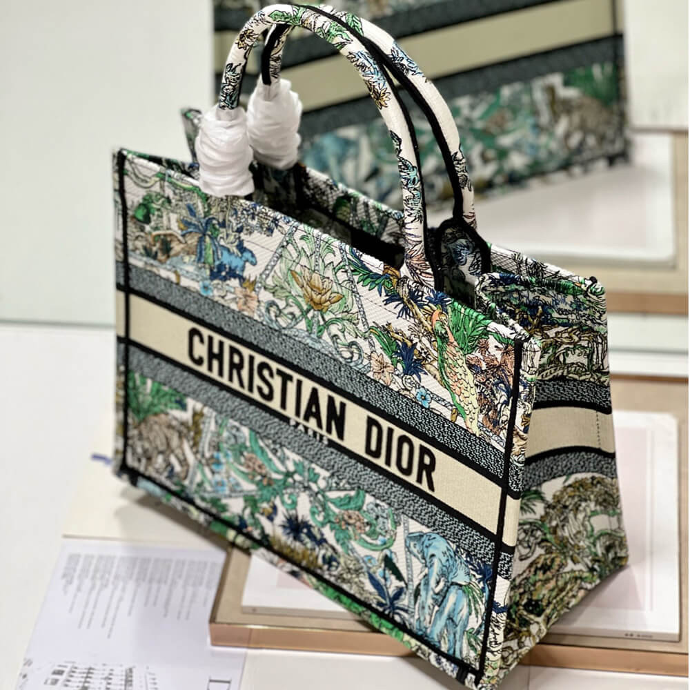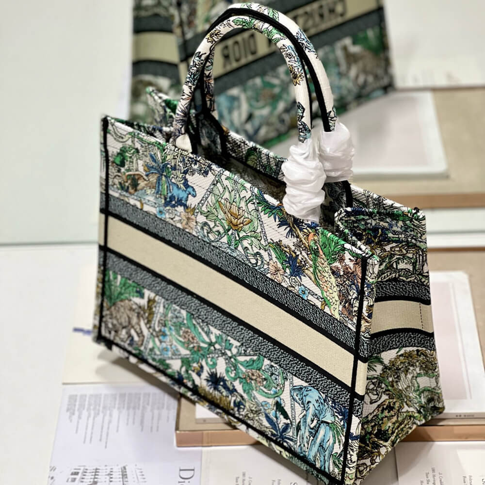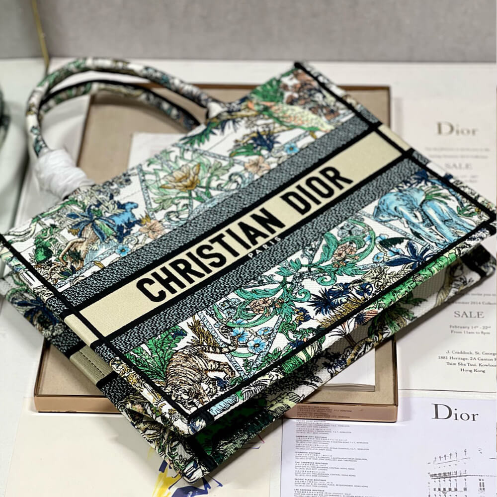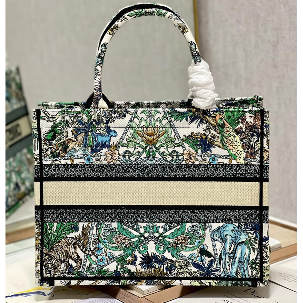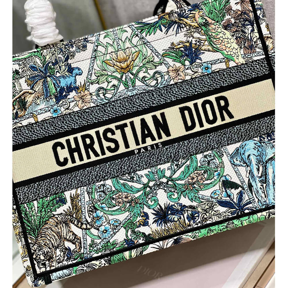 Christian Dior Book Tote White Multicolor Jardin Botanique Embroidery