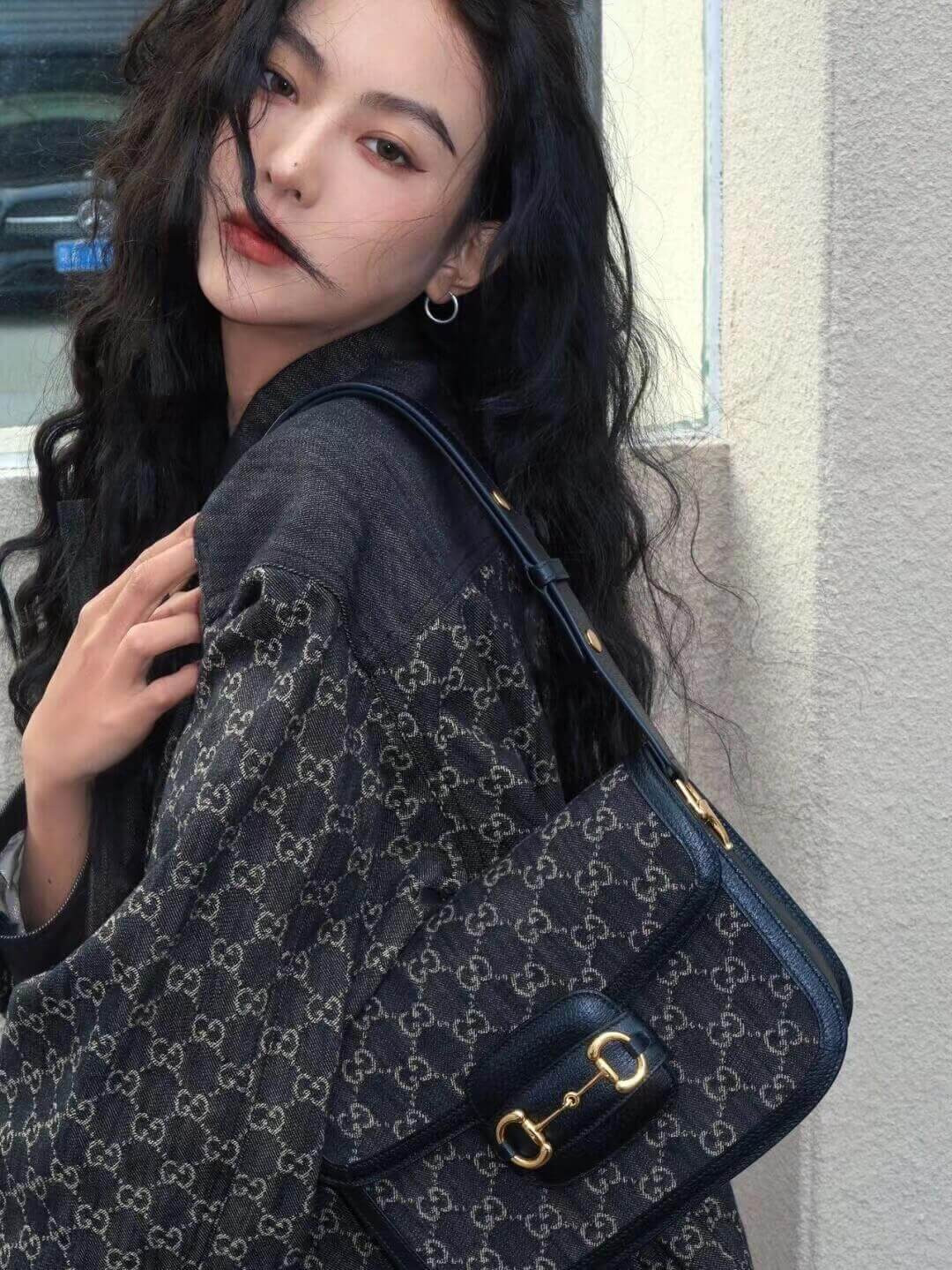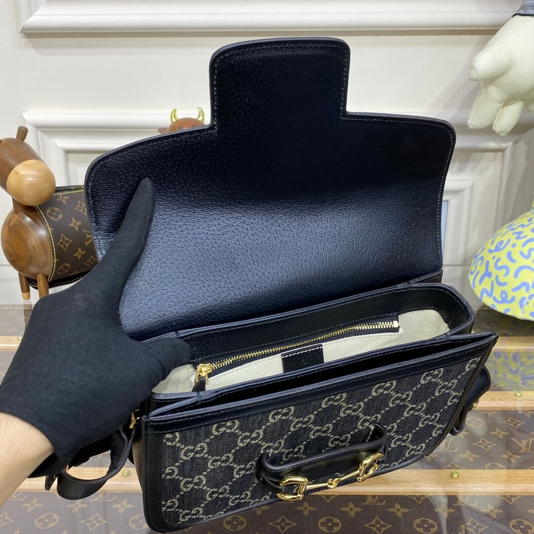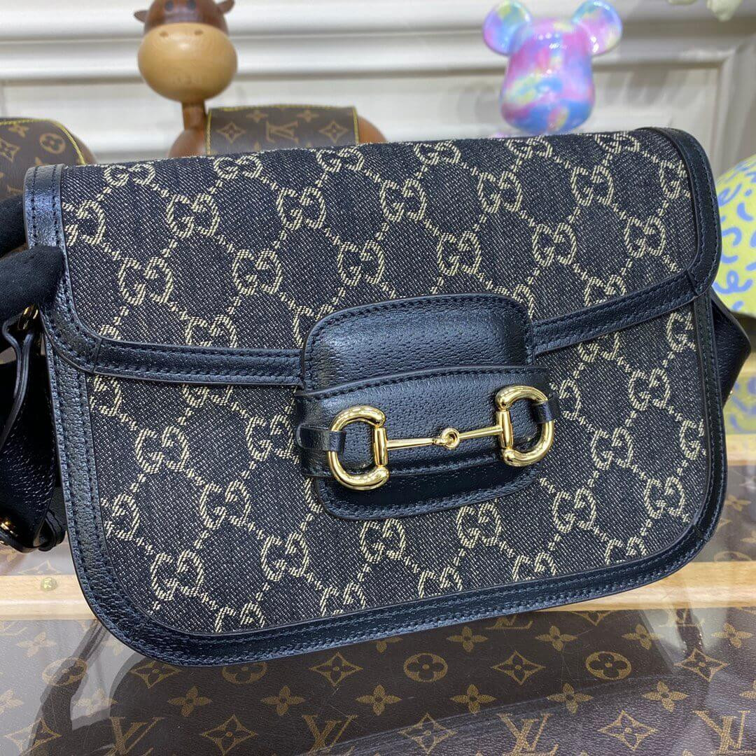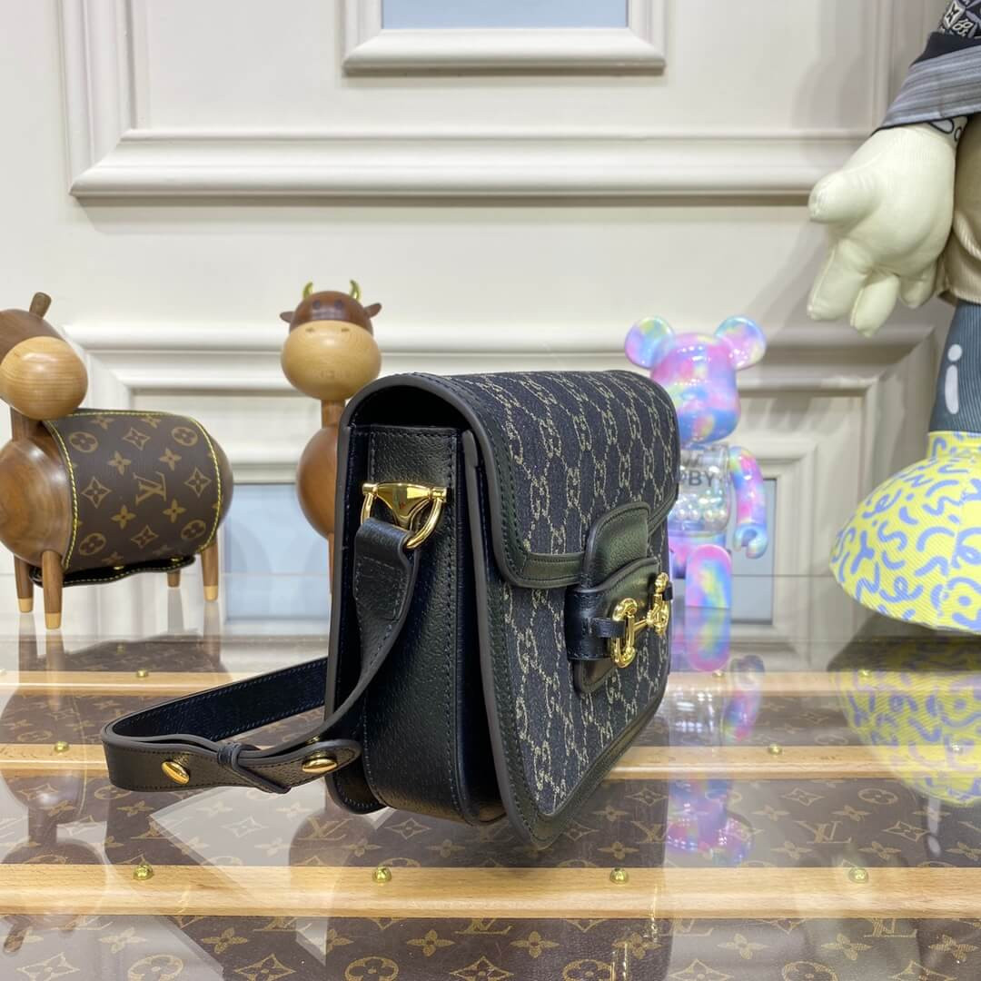 Gucci Horsebit 1955 Denim Shoulder Bag 602204 Black